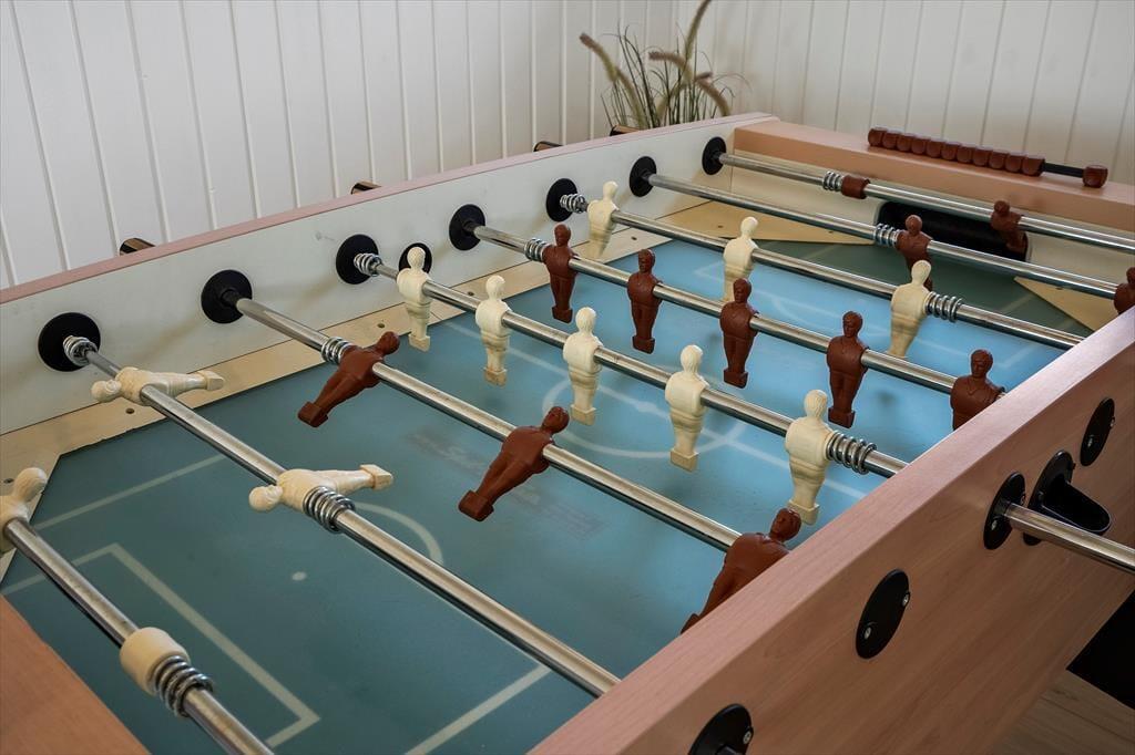 Schon beim Betreten dieses hellen Ferienhauses wirst du spüren, wie der Alltag in den Hintergrund rückt. Große Fensterfronten lassen viel Licht herein und bieten einen herrlichen Blick auf die umliegende Natur. Die Einrichtung ist modern und durchdacht – hier ist Raum für Gemeinschaft, aber auch Platz, um sich zurückzuziehen. In der offenen Wohnküche können alle bei der Essenszubereitung dabei sein, die Kinder am Esstisch spielen, während das Knistern des Kaminofens im Hintergrund zu einer besonders gemütlichen Atmosphäre beiträgt. Der separate Annex ist ideal für Teenager, Großeltern oder befreundete Paare, die etwas Privatsphäre schätzen – mit eigenem Schlafzimmer, Badezimmer und einer Sauna als schöne Annehmlichkeit. Zudem gibt es einen Aktivitätsraum mit Tischfußball, Darts und Fernseher – perfekt für kleine Turniere oder entspannte Abende mit der Familie.