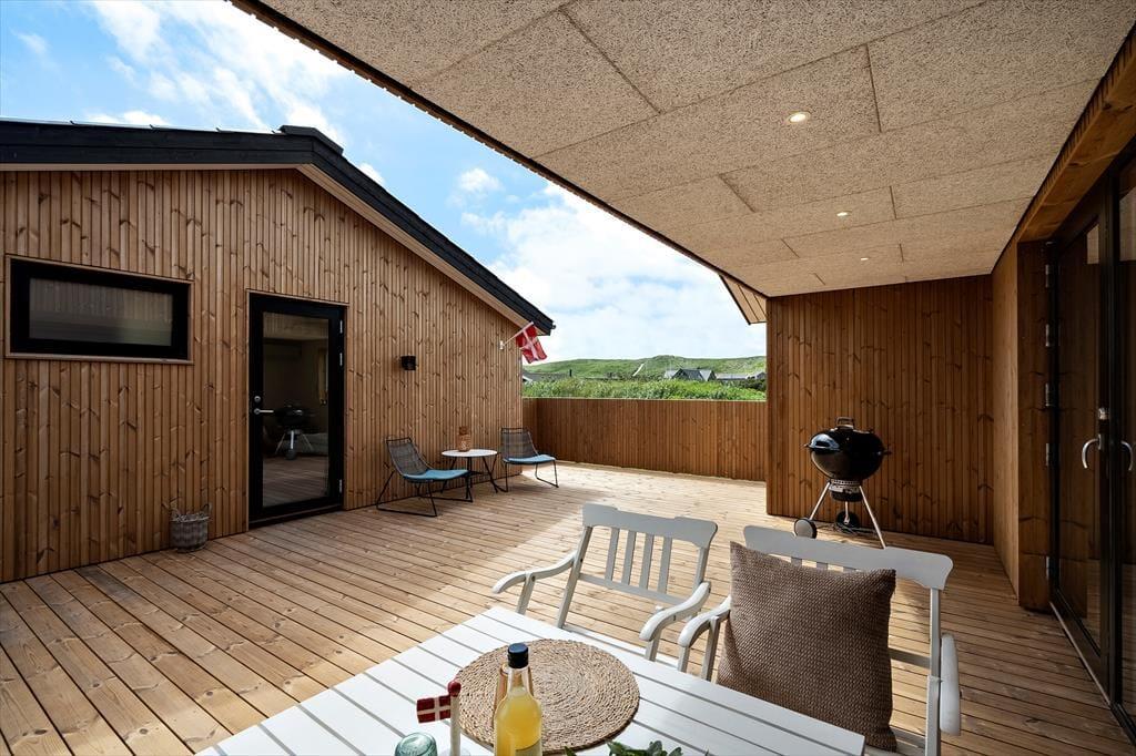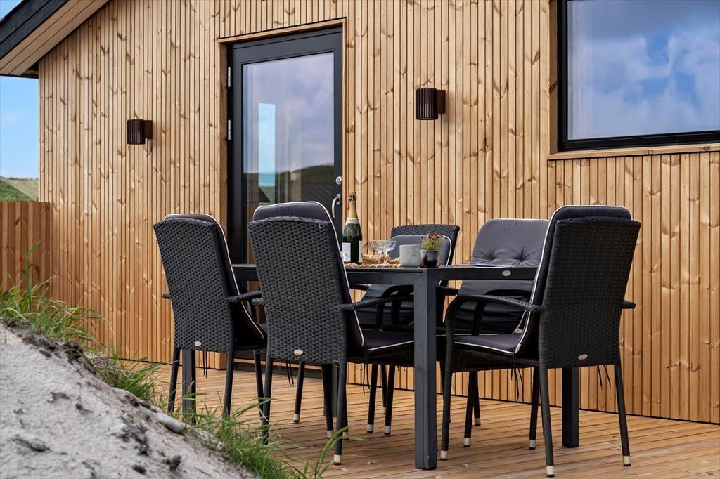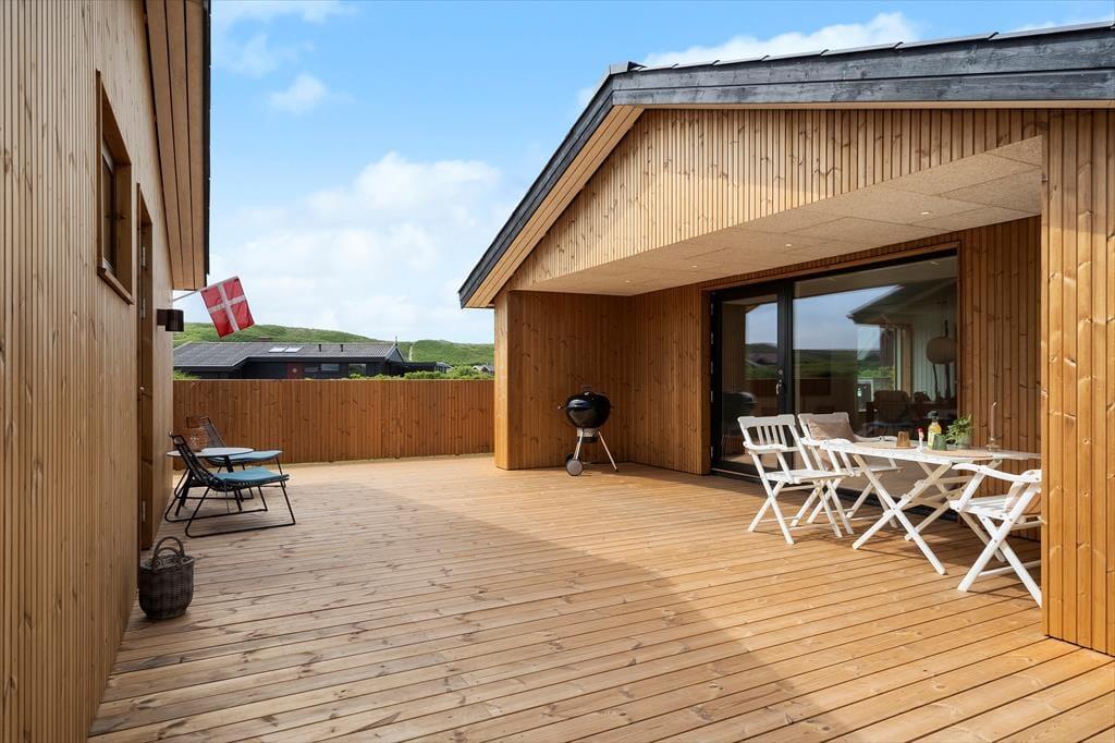 Zwischen dem Haupthaus und dem Annex erwartet dich eine herrliche Terrasse, die gleichzeitig privat und offen zur Natur hin wirkt. Sie ist teilweise überdacht und windgeschützt, sodass du deinen Morgenkaffee unter freiem Himmel genießen und den Tag bei Grill und Kerzenschein ausklingen lassen kannst – auch wenn der Wind auffrischt. Das große Naturgrundstück bietet viel Platz zum Spielen, Toben und Entspannen auf der Sonnenliege, während du dem Vogelgesang lauschst und den Duft von Meer und Strandhafer in der Nase hast. Die Terrasse und Teile des Gartens sind eingezäunt, sodass auch der vierbeinige Freund der Familie die Ferien unbeschwert genießen kann.