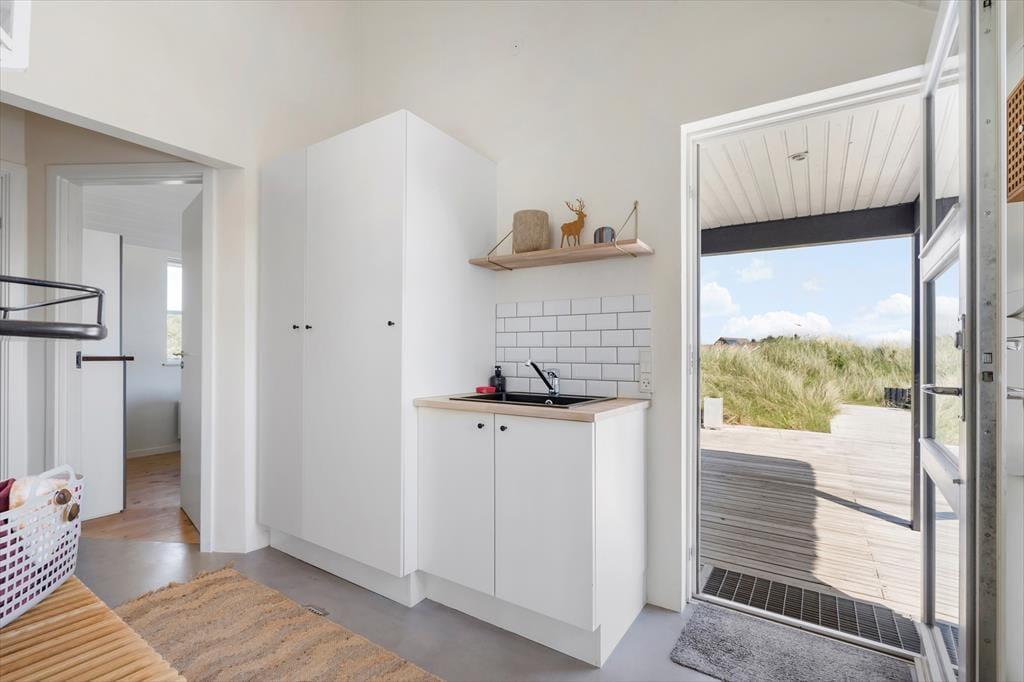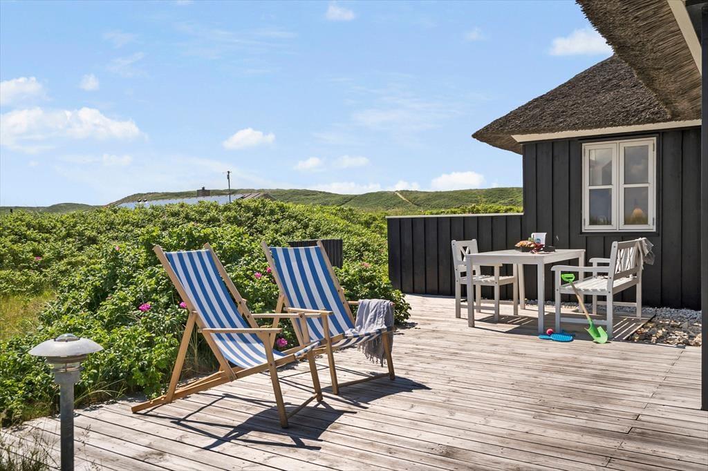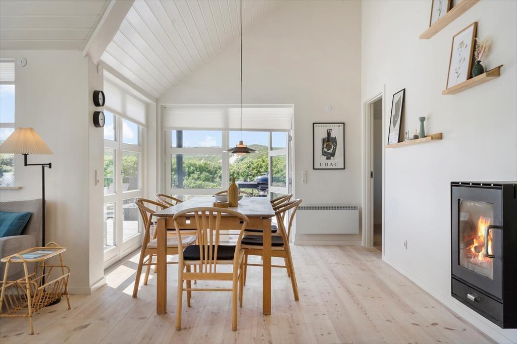 Strandkrogvejen 34 ist ein wunderbarer Ort zum Übernachten, da das Ferienhausgebiet ruhig und landschaftlich reizvoll ist und der Spaziergang zum Aargab Strand nur wenige Minuten dauert. Von der Spitze der äußersten Dünenkette ist der Panoramablick über den weißen Sandstrand und die Nordsee geradezu atemberaubend – und Holmsland Klit ist hier so schmal, dass man gleichzeitig über den Ringkøbing Fjord blicken kann. Das flache Wasser im Fjord bietet ideale Verhältnisse, um das Windsurfen zu erproben, und möchten Sie einen Surfkurs belegen, können Sie einen Einführungskurs bei „Westwind Syd“ absolvieren, nur 10 Gehminuten vom Haus entfernt. Zu den weiteren Aktivitäten in der Natur der beeindruckenden Landschaft von Holmslands Klit gehören Wandern, Joggen und Radfahren. Auch ein Angelausflug an die Schleuse von Hvide Sande oder die spannende Hafenumgebung sind zu empfehlen.
