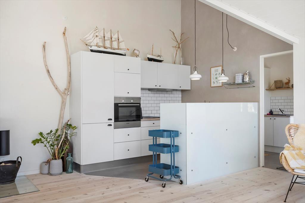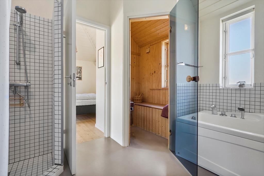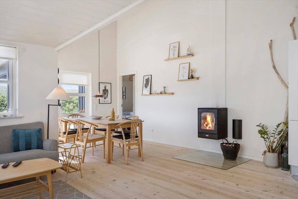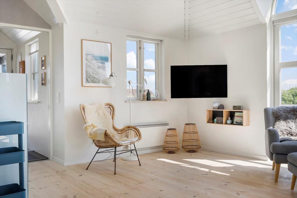 Im Inneren des Reetdachhauses herrscht eine wunderbare Atmosphäre. Die Zimmer verfügen über Holzböden, schräge Decken und eine schlichte, stilvolle Einrichtung und durch die großen Fenster fällt das Licht auf schönste Weise ein. Besonders im Wohnraum können die Stunden friedlich dahingleiten, während Sie und Ihre Lieben morgens den Brunch, ruhige Lesestunden und lustige Brettspiele oder was auch immer Sie am meisten entspannt, genießen. Der Holzofen ist eine schöne Ergänzung an kühlen Tagen und Abenden – und: Würden Sie nicht auch den Whirlpool und die Sauna zu schätzen wissen, wenn Sie zusätzliche Wärmen und Wellness möchten? Es gibt zwei Badezimmer und drei Schlafzimmer. Es ist also kein Problem, fünf Personen drinnen unterzubringen.
