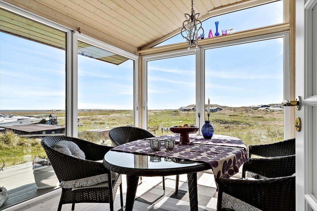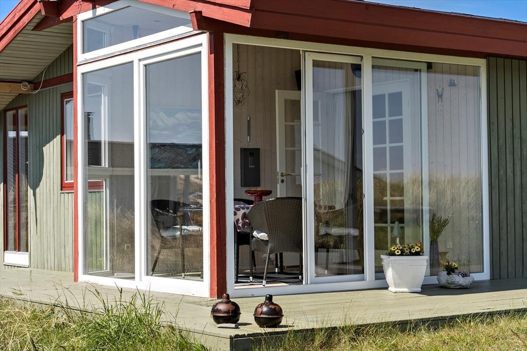 Dieses gemütliche Holzferienhaus ist eine perfekte Wahl für Urlauber, die von ruhigen Urlaubstagen inmitten schöner, friedvoller Natur träumen. Das Haus liegt hoch in den Dünen Aargabs, wodurch Sie unter anderem im Wintergarten und auf der Aussichtsbank des Naturgrundstücks in den Genuss eines reizvollen Ausblicks auf die hügelige Küstenlandschaft und den Ringkøbing Fjord kommen.
