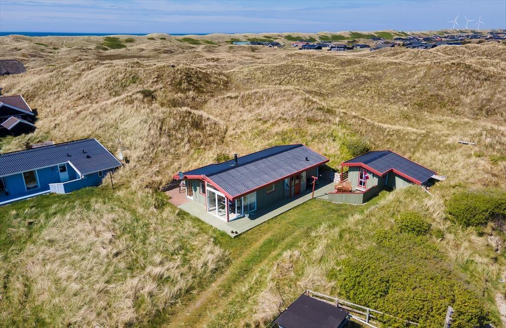 Das Ferienhaus befindet sich am Ende einer Sackgasse auf Holmsland Klit - mittig zwischen Nordsee und Ringkøbing Fjord. Letztgenannten sehen Sie sogar von Ihrem Ferienhaus aus. Ein rund 400 Meter langer Spaziergang trennt Sie von der äußeren Dünenreihe, hinter der sich der Aargab Strand und die mächtige Nordsee erstrecken. Baden, Angeln und Surfen zählen in dieser Gegend zu den beliebtesten Urlaubsaktivitäten. Bei Radfahrern und Hobbyornithologen erfreut sich Holmsland Klit ebenfalls großer Beliebtheit. Innerhalb von fünf Minuten erreichen Sie per Pkw den Hafenort Hvide Sande, der mit seinem interessanten Fischereihafenbereich und dem Ortskern mit Geschäften und guten Lokalitäten Tag für Tag viele Besucher anzieht.