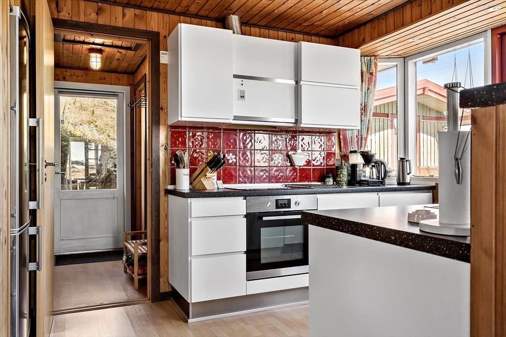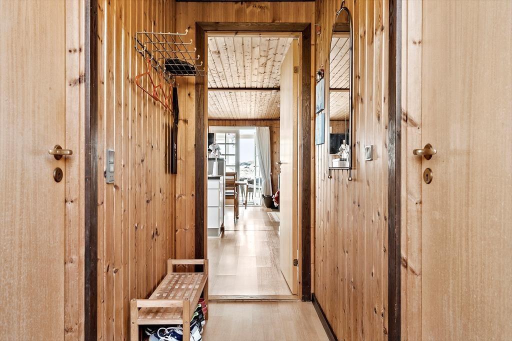 Seit dem Jahr 1983 genießen die Hauseigentümer in diesem Urlaubsdomizil erholsame Auszeiten weit ab des Alltags. Erst seit kurzem wird das Haus zur Vermietung angeboten. Das Haus besticht mit authentischem Ferienhauscharme, der unter anderem auf die holzvertäfelten Wände zurückzuführen ist. Die Einrichtung ist persönlich und gemütlich. Ihnen steht unter anderem eine gute Polstersitzecke nah am Kaminofen zur Verfügung. Die gute Küche ist offen in den Wohnraum integriert. Französische Flügeltüren gewähren Zugang zum Wintergarten mit großen Fensterpartien, die einen schönen Tageslichteinfall und Fjordblick ermöglichen. Der Rest der Wohnfläche ist einem Badezimmer mit Dusche und drei Schlafräumen mit insgesamt vier Schlafplätzen für Erwachsene und zwei Schlafplätzen für Kinder gewidmet.
