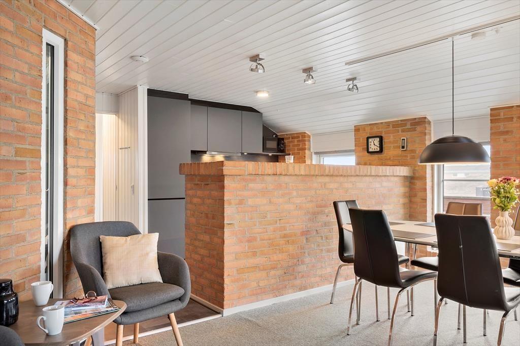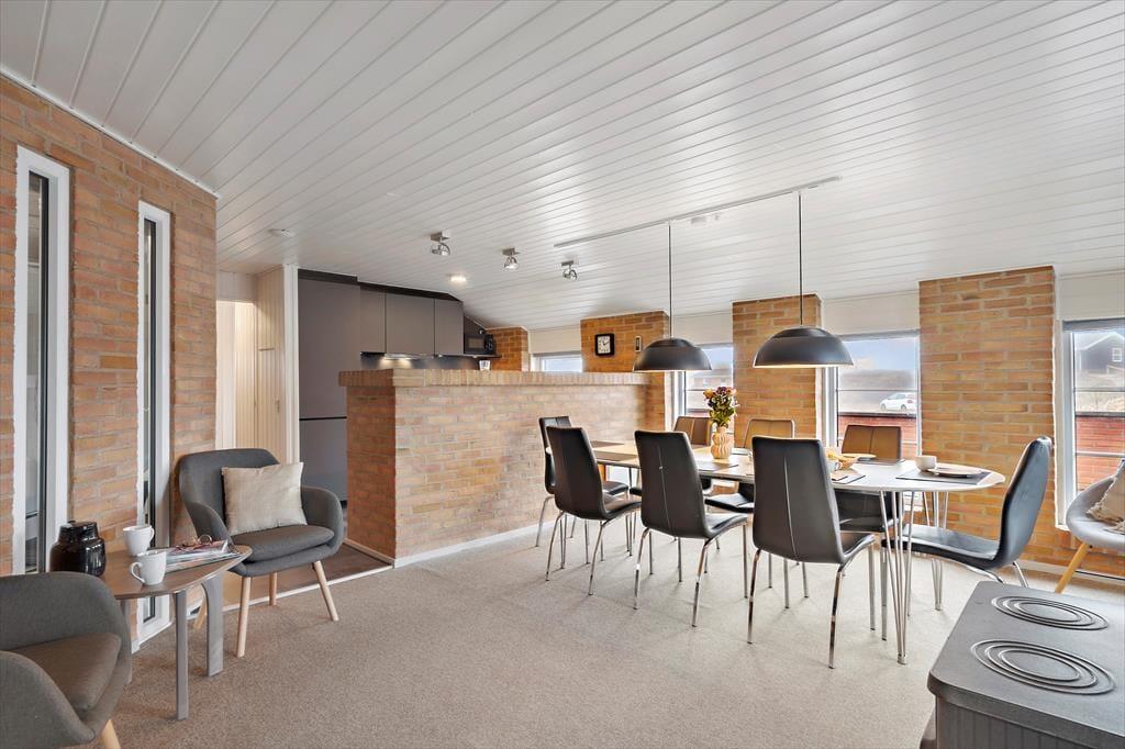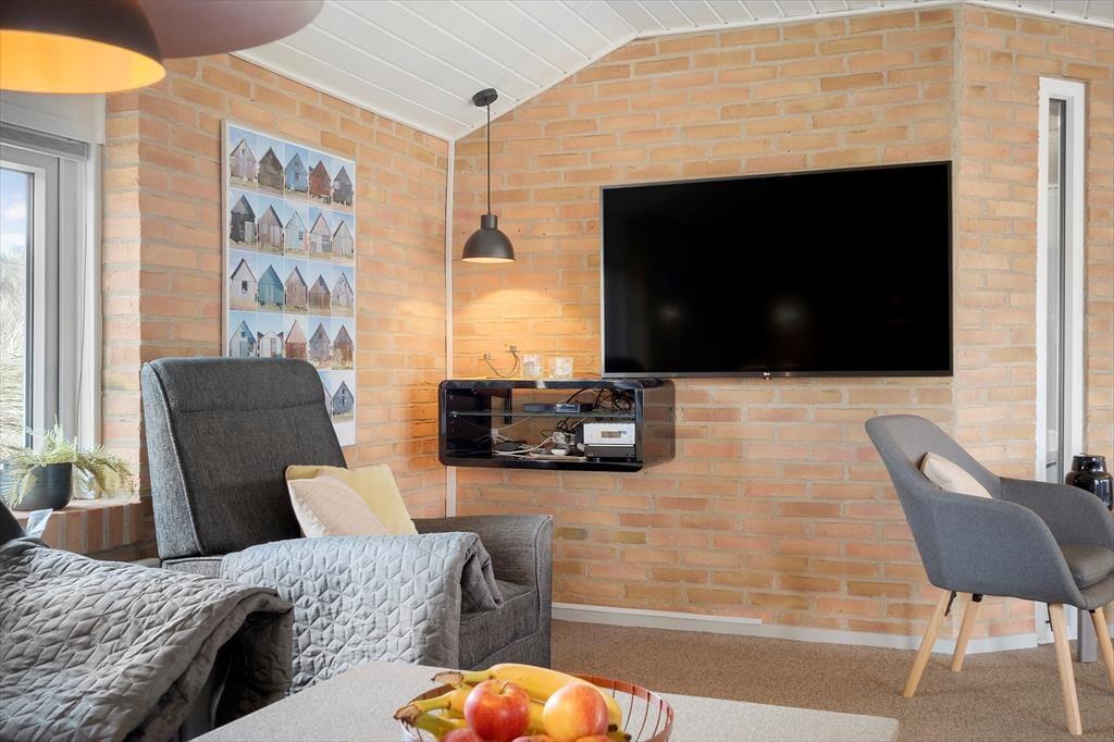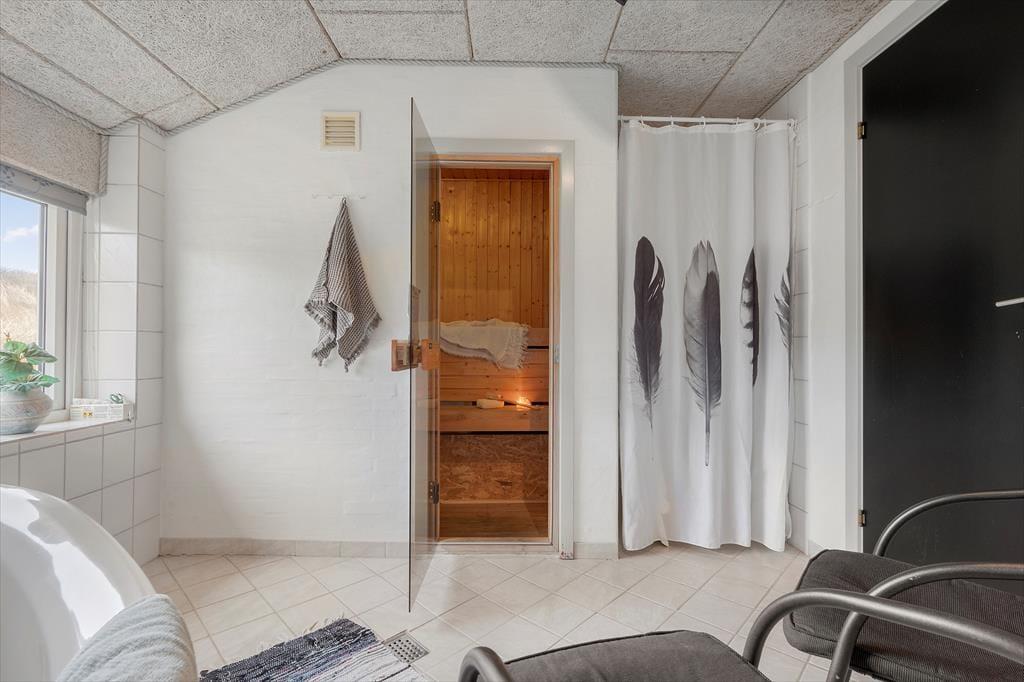 Schon beim Betreten des Ferienhaus an Mettes Bjerg 30 , werdet ihr sofort von hellen und offenen Räumen begrüßt. Die Natur kann durch große Fenster eindringen und dieses schafft eine helle und einladende Atmosphäre. Die Einrichtung mit rohen Ziegelwänden und gemütlich komfortablen Möbeln vermittelt nordischen Charme. Im Wohnzimmer könnt ihr es euch vorm Kaminofen bequem machen, die Ruhe genießen oder euch ein Päuschen auf dem bequemen Sofa gönnen - mit Ausblick auf die einvernehmende Natur. Die Küche ist funktional und einladend - ob ihr schnell mal ein Ferienessen bereiten oder ein leckeres Abendmahl kochen wollt, was die ganze Familie gemeinsam genießen kann. Die drei Schlafzimmer sind geräumig und geben Raum zum Ruhen und Relaxen, während der Baderaum mit Whirlpool und Sauna die perfekte Gelegenheit bietet, sich nach einem Tag in der Natur zu verwöhnen.