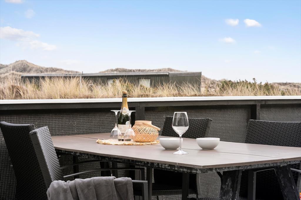Mit drei herrlichen Terrassen hast du reichlich Gelegenheit, das Leben unter freiem Himmel von morgens bis abends zu genießen. Finde eine windgeschützte Ecke auf der geschlossenen Terrasse, wo du in aller Ruhe deinen Morgenkaffee trinken kannst, oder mache es dir auf der überdachten Terrasse bequem, wenn du an einem warmen Sommertag etwas Schatten bevorzugst. Egal, wo du dich niederlässt, du wirst stets das Rauschen der Nordsee im Hintergrund hören und die frische Westseebrise spüren. Die Abende lassen sich perfekt mit einem guten Essen unter freiem Himmel verbringen, während die Sonne hinter den Dünen untergeht und den Himmel in wunderschöne Farben taucht.