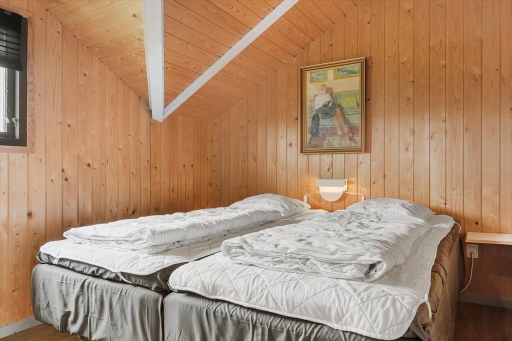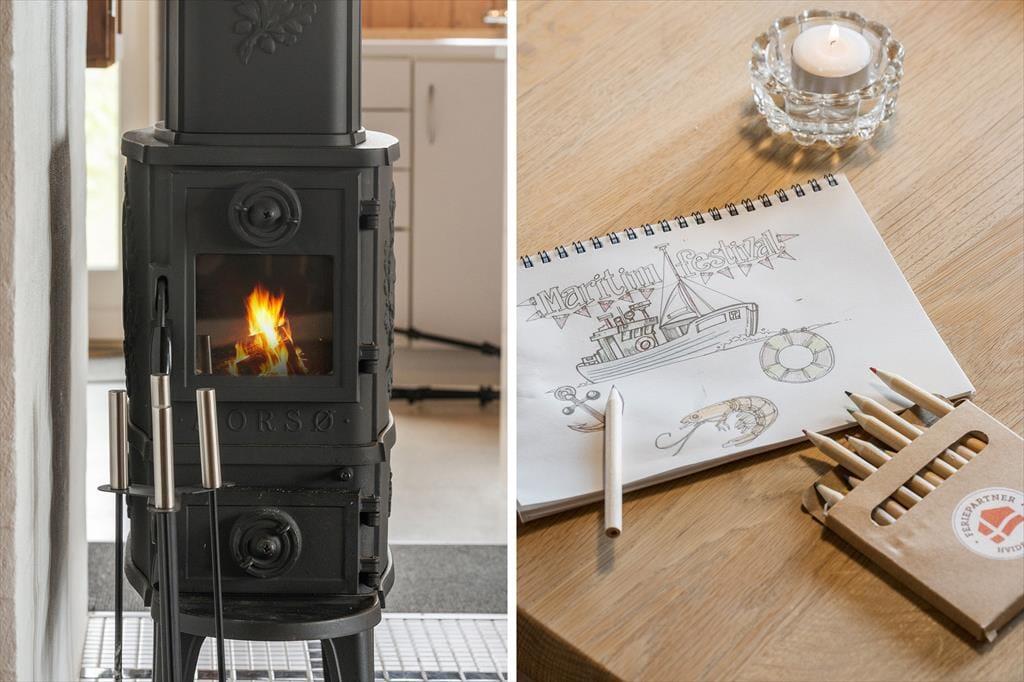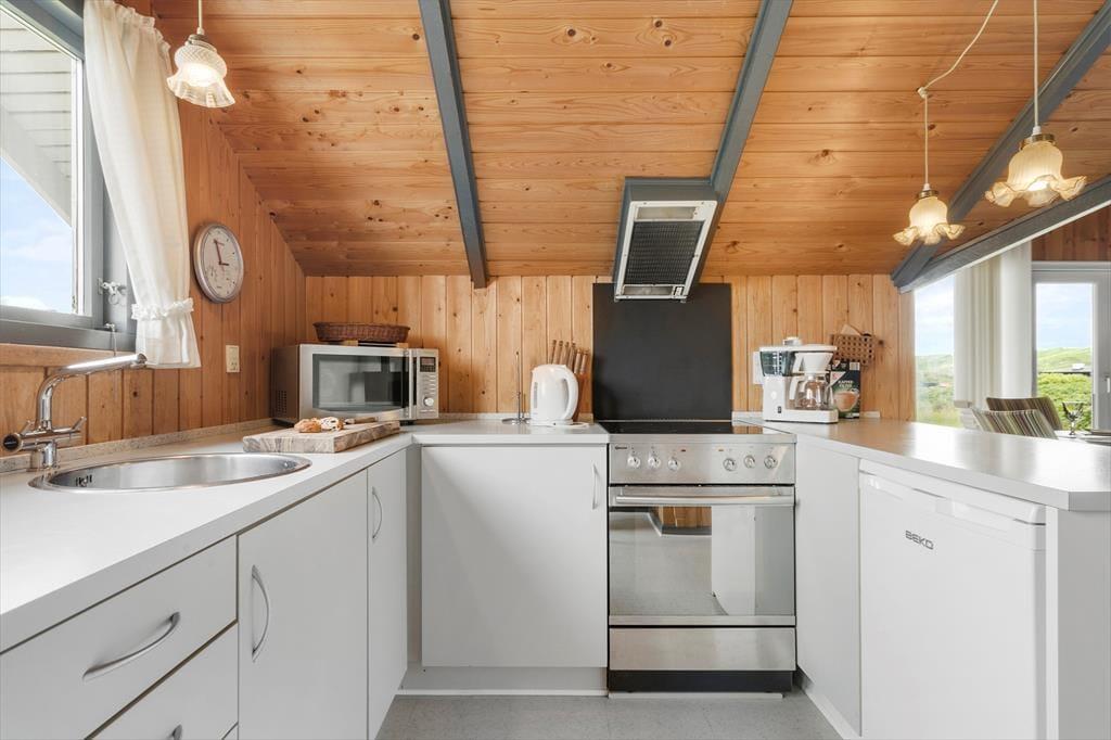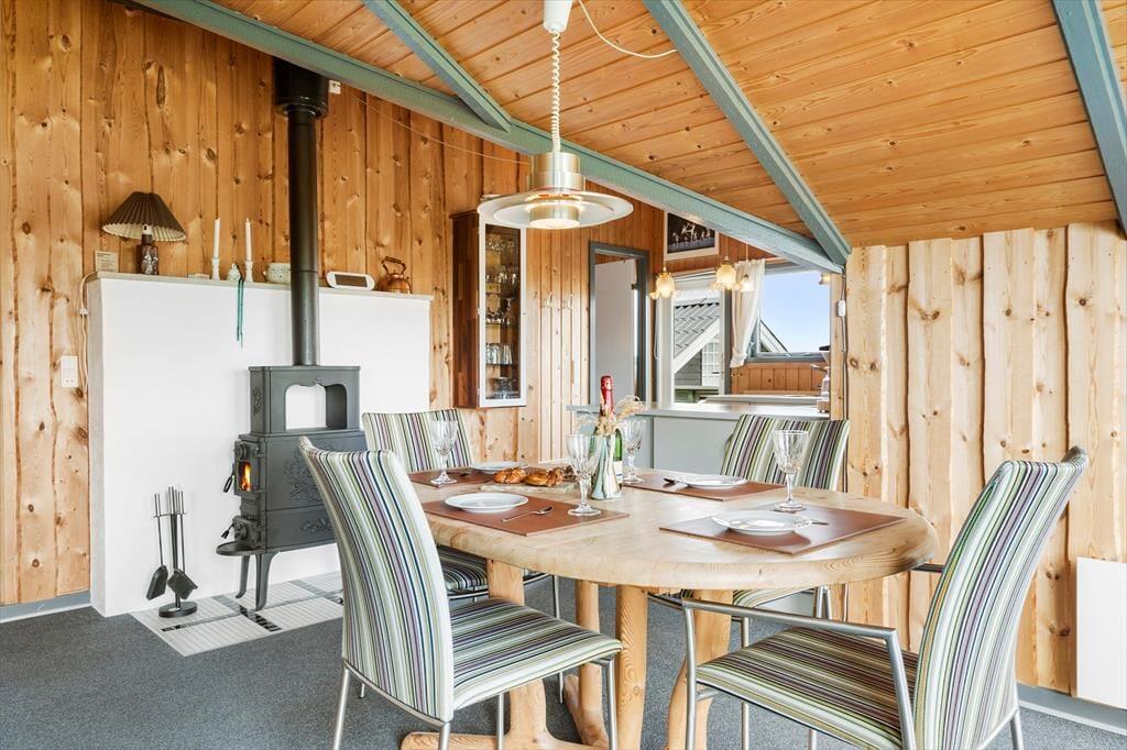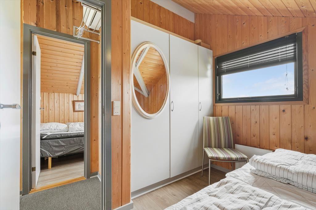 Das gemütliche, 54 m² große Ferienhaus beherbergt mit seinen beiden Schlafzimmern und dem Duschbadezimmer mit Fußbodenheizung und Waschmaschine bis zu vier übernachtende Urlauber. Der Rest der Wohnfläche ist dem stimmungsvollen Aufenthaltsraum mit einem Kaminofen, einer komfortablen Möblierung und einer guten, offen integrierten Küche überlassen. Wie der Rest des Hauses verfügt auch der Wohnraum über hohe Decken und rustikale Holzvertäfelungen. Die Giebelfenster gewähren einen Ausblick über die Dünenlandschaft und tragen somit maßgeblich zur schönen, klassischen Ferienhausatmosphäre bei.