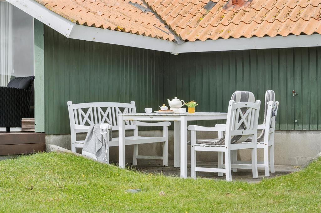 An dieses Ferienhaus schließen drei Terrassen, von denen zwei ein klein wenig erhöht liegen. Die dritte Terrasse liegt niedriger in einer nach Südosten gerichteten Senke. Alle Terrassen bieten schöne Aufenthaltsplätze. Gartenmöbel und Liegestühle sind ebenso vorhanden wie ein Grill und ein Sonnenschirm. Die große Grasfläche animiert zu Ballspielen und zum Umhertollen. Im abschließbaren Nebengebäude in der Grundstückseinfahrt können Sie Ihre Fahrräder oder Ihre Surfausrüstung sicher lagern. Im Nebengebäude steht zudem ein großer Gefrierschrank zur Verfügung, über den sich sicher erfolgsverwöhnte Angler ganz besonders freuen.