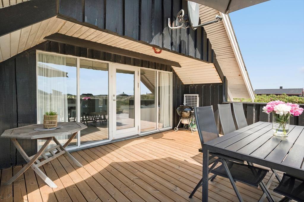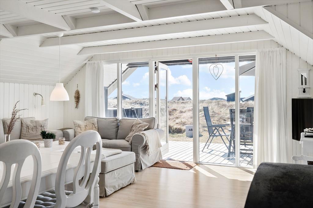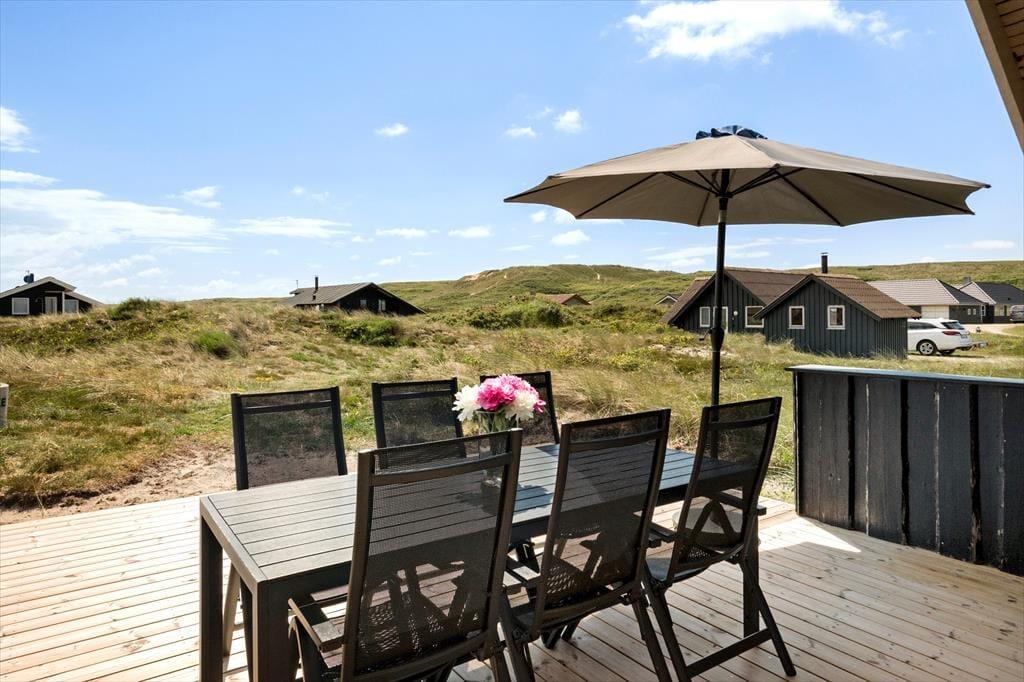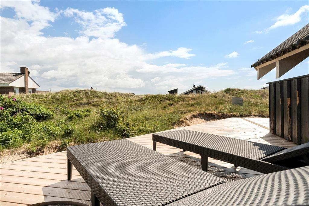 Vor allem das nach Süden ausgerichtete Fenster des Wohnzimmers bietet einen Blick auf die hohen Dünen der Gegend, und die Aussicht wird nicht schlechter, wenn man sich ganz ins Freie begibt. Eine teilweise überdachte Terrasse erstreckt sich nach Süden, und auch auf der Ostseite des Hauses gibt es einen Terrassenbereich, so dass Sie die meiste Zeit des Tages die Sonne genießen können.