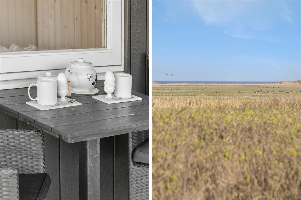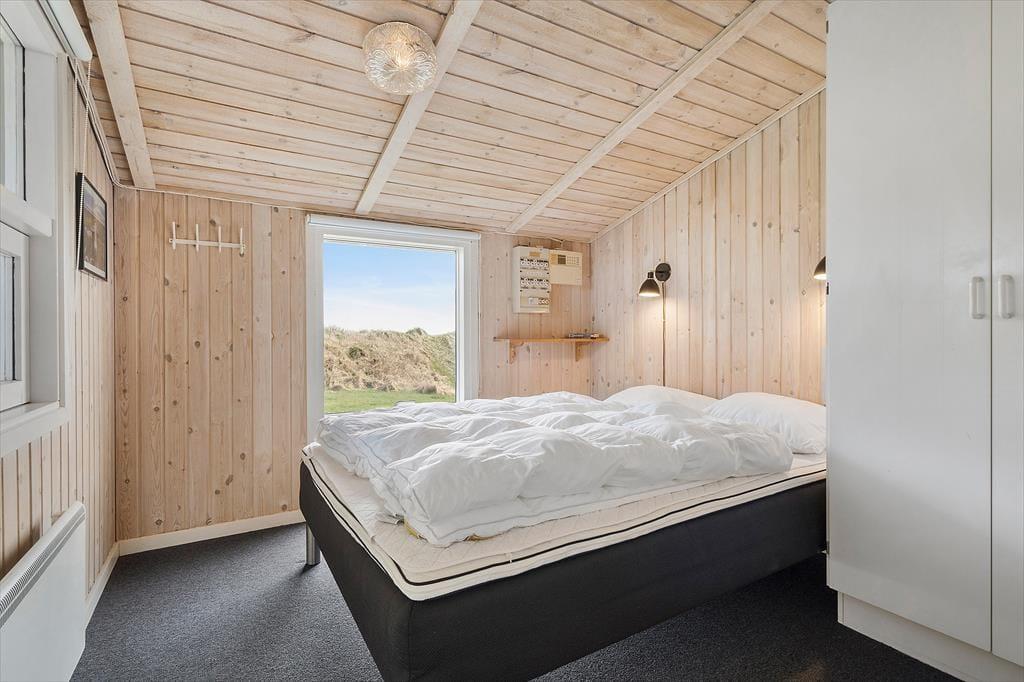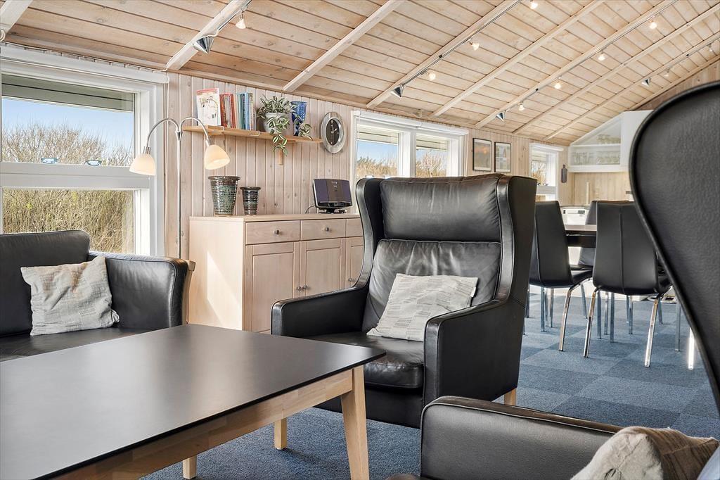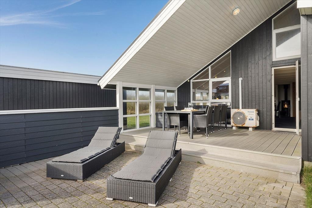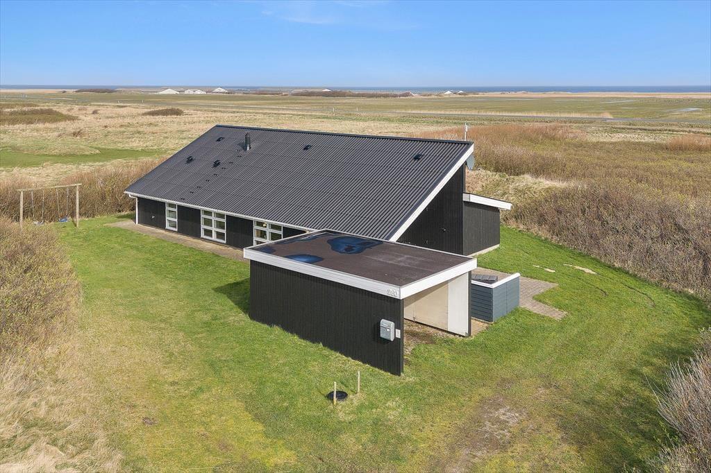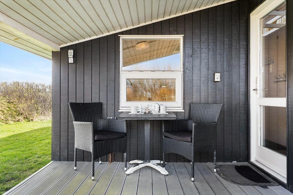 Wenn Sie von nichts anderem träumen, als sich zu entspannen und die frische Seeluft und die entspannte Atmosphäre von Holmsland Klit zu genießen, ist ein ruhiger Nachmittag auf der Terrasse genau das Richtige. Im Nordosten befindet sich eine überdachte Terrasse, und im Süden des Hauses breitet sich ein großer, teilweise überdachter Terrassenbereich aus. In der Nähe des Hauses gibt es eine Schaukel und einen Sandkasten, und im Carport kann das Auto abgestellt werden. Ein Erdwall schirmt das Grundstück nach Osten hin ab, so dass Sie völlig ungestört auf dem Naturgrundstück verweilen können - und wenn Sie auf die Spitze des Walls steigen, können Sie die schöne Aussicht auf Holmsland Klit und den Ringkøbing Fjord genießen.