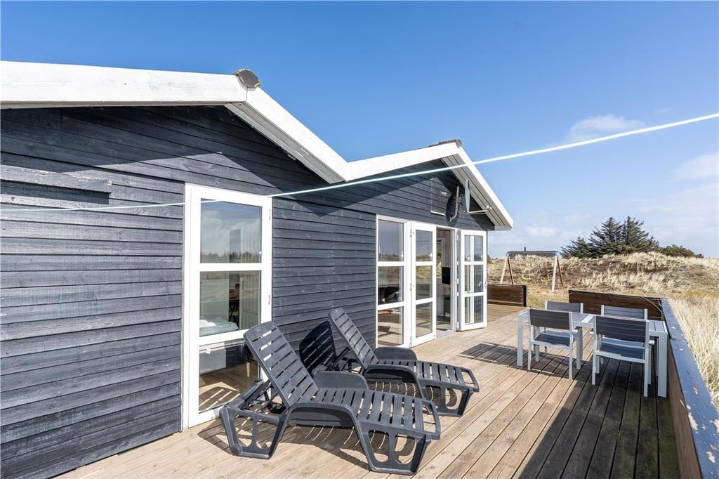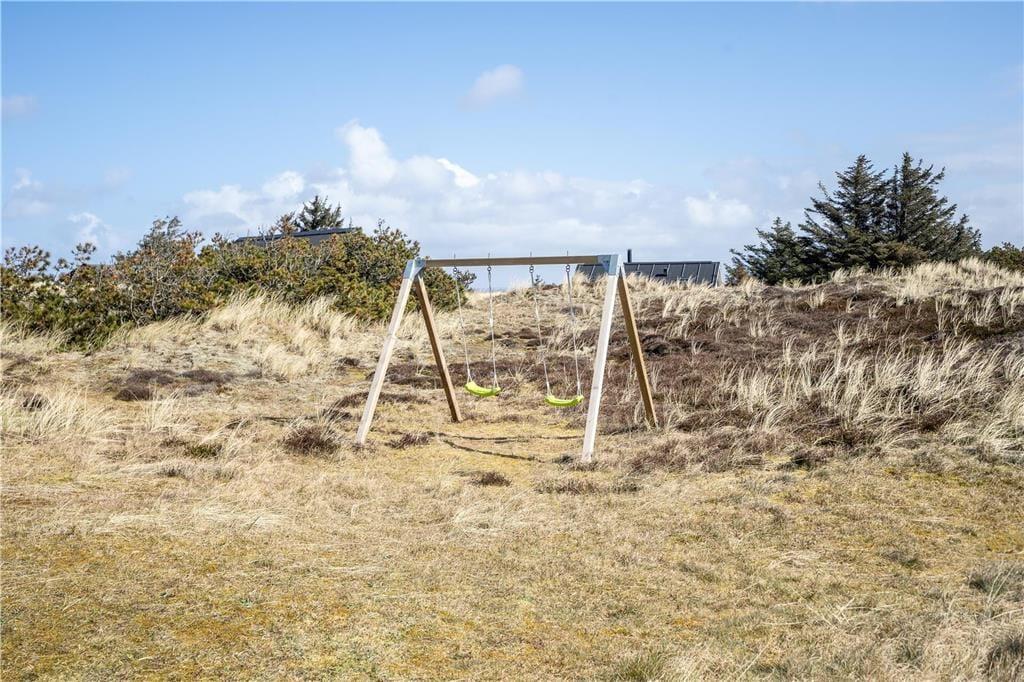 Eine schöne Holzterrasse umgibt das gesamte Mietobjekt, sodass Sie zu jedem Zeitpunkt ein passendes Plätzchen unter freiem Himmel finden. Gen Süden verfügt die Terrasse über eine Abschirmung, wodurch Sie sich in aller Ruhe sonnen können, selbst wenn eine frische Brise weht. Es ist einfach wunderschön, sich inmitten der attraktiven Umgebung zu entspannen - insbesondere gegen Abend, wenn die untergehende Sonne die Dünenlandschaft in orangefarbene Töne taucht. Im Laufe des Tages werden Ihre Kinder gern schaukeln und in der Sandkiste spielen.