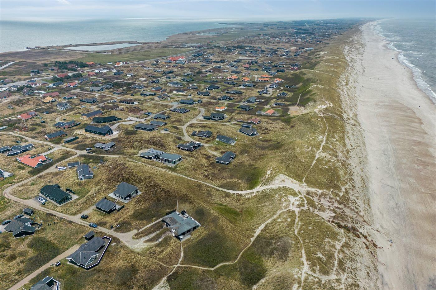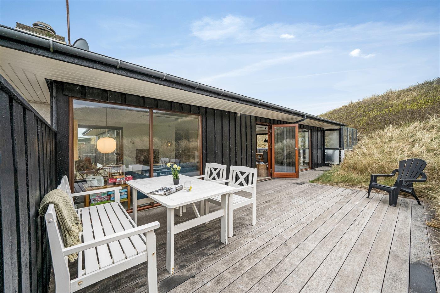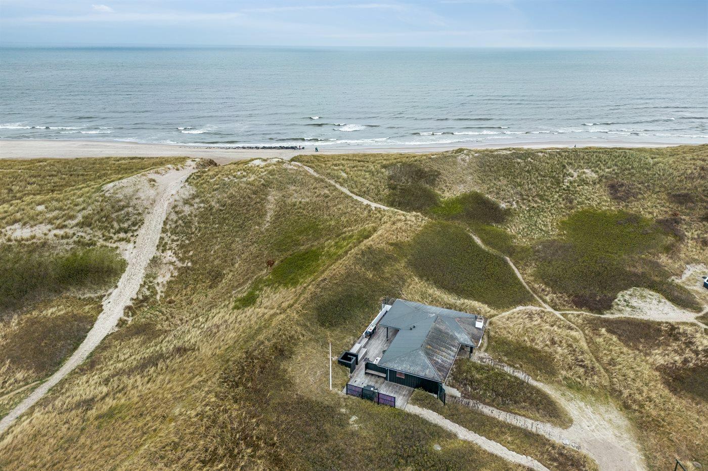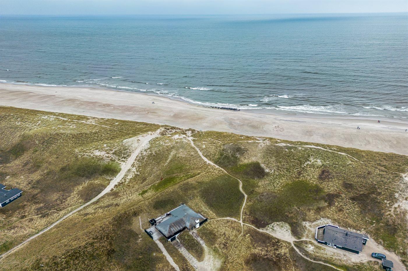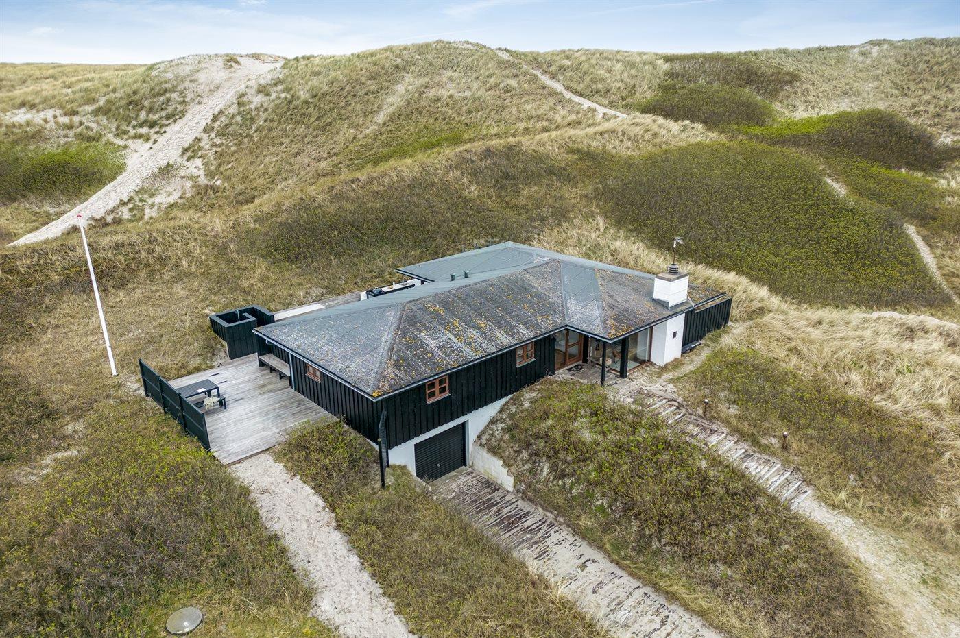 Das Haus wurde 1977 erbaut und verfügt über eine Fläche von 106 Quadratmeter. Seit dem Bau wurde das Haus umfangreich renoviert. Das Haus liegt schön und etwas abgeschieden auf einem 8000 m² großen Dünengrundstück, nur 50 m von der Nordsee und 100 m vom Ringkøbing Fjord entfernt. Das nächste Geschäft für den täglichen Bedarf liegt 2.000 m entfernt im idyllischen Hvide Sande. Hier kann man bummeln, gut essen, frischen Fisch kaufen und das pulsierende Leben am Hafen erleben.