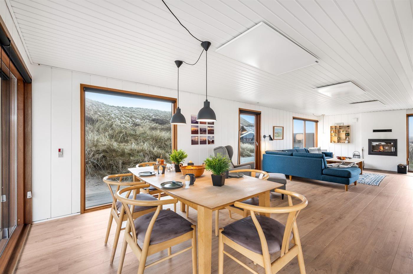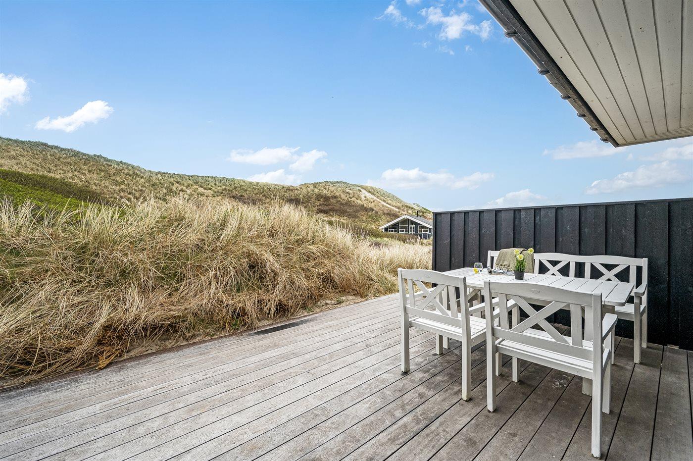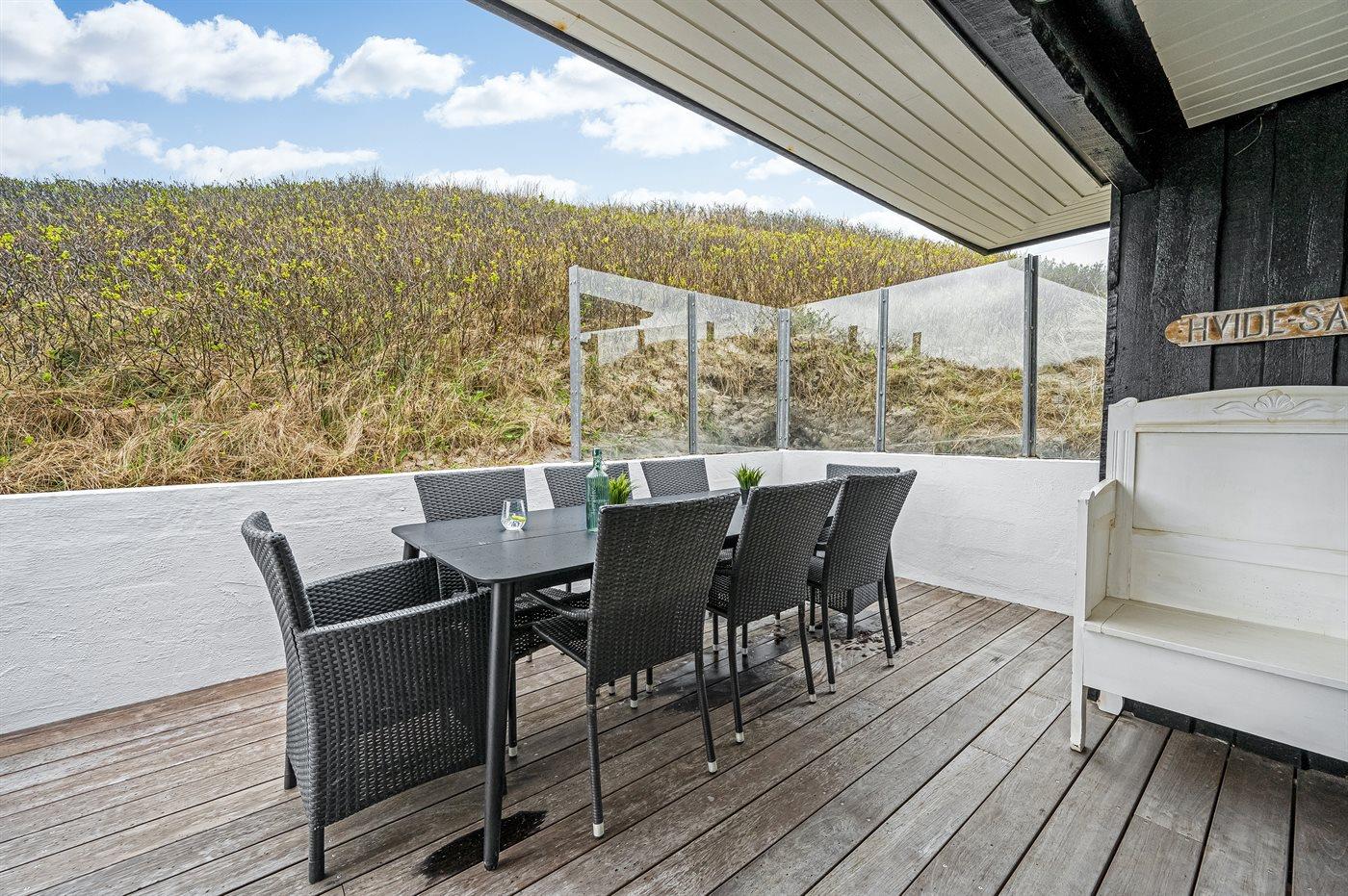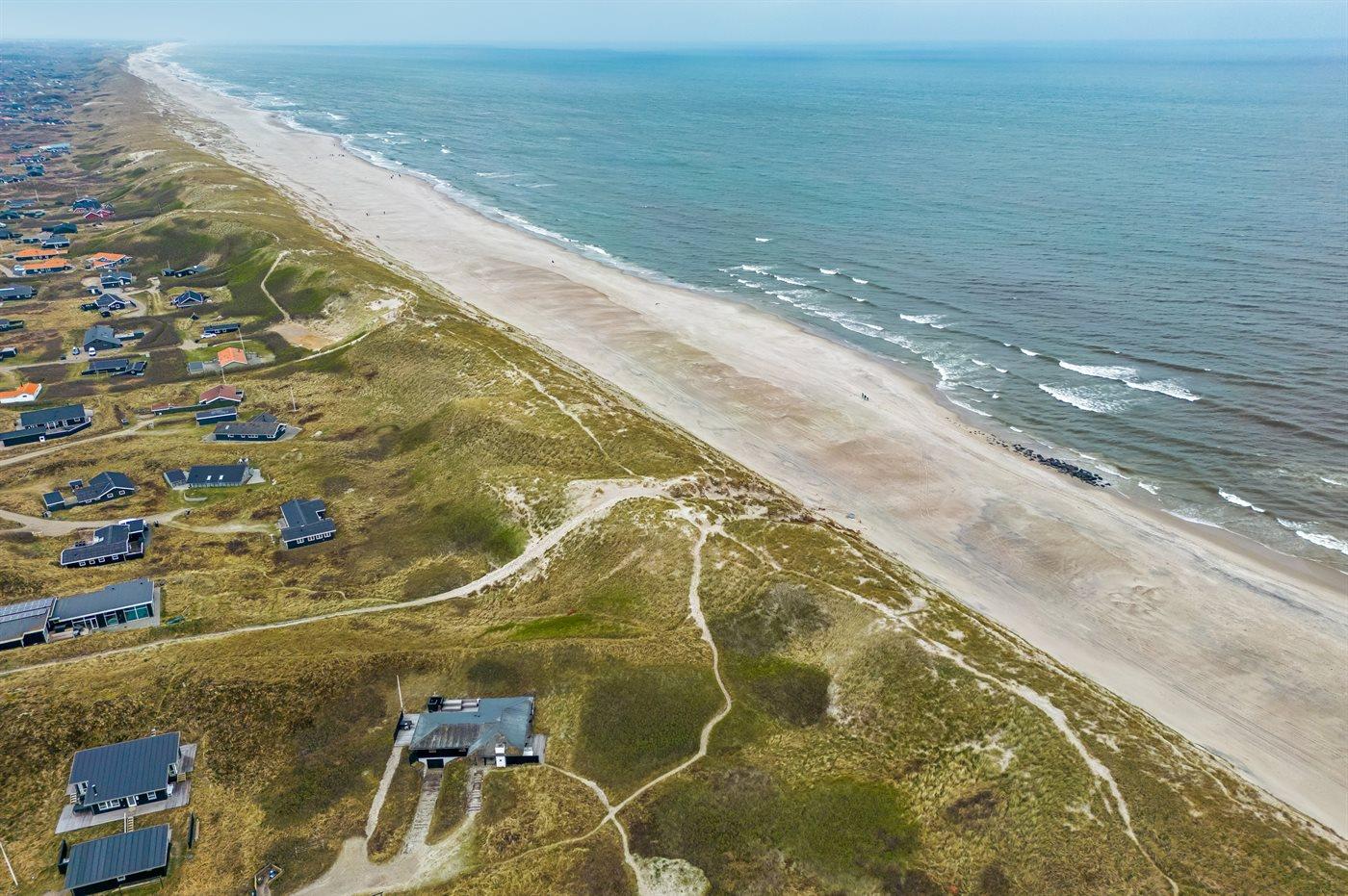 Das Haus wurde 1977 erbaut und verfügt über eine Fläche von 106 Quadratmeter. Seit dem Bau wurde das Haus umfangreich renoviert. Das Haus liegt schön und etwas abgeschieden auf einem 8000 m² großen Dünengrundstück, nur 50 m von der Nordsee und 100 m vom Ringkøbing Fjord entfernt. Das nächste Geschäft für den täglichen Bedarf liegt 2.000 m entfernt im idyllischen Hvide Sande. Hier kann man bummeln, gut essen, frischen Fisch kaufen und das pulsierende Leben am Hafen erleben.