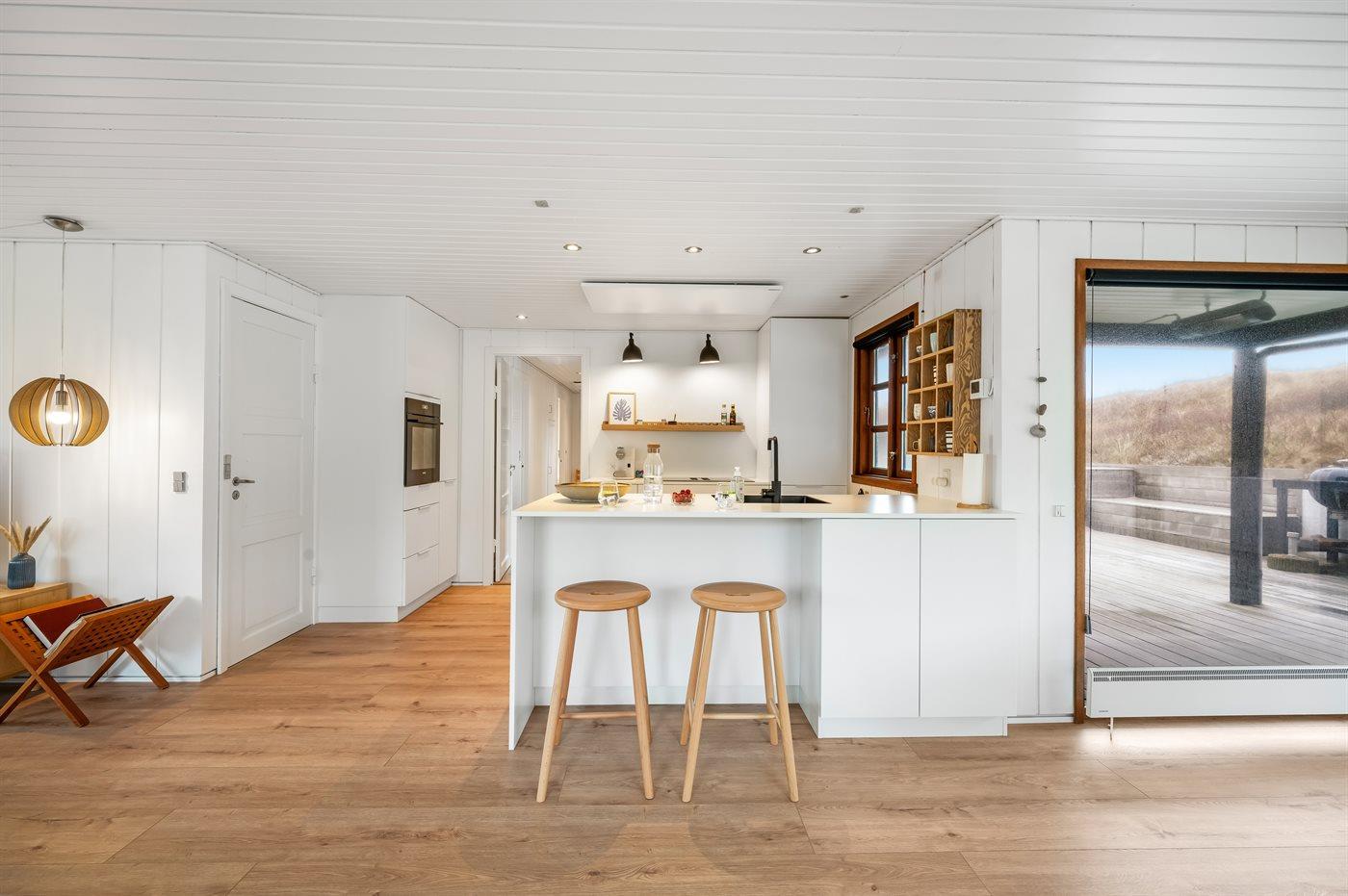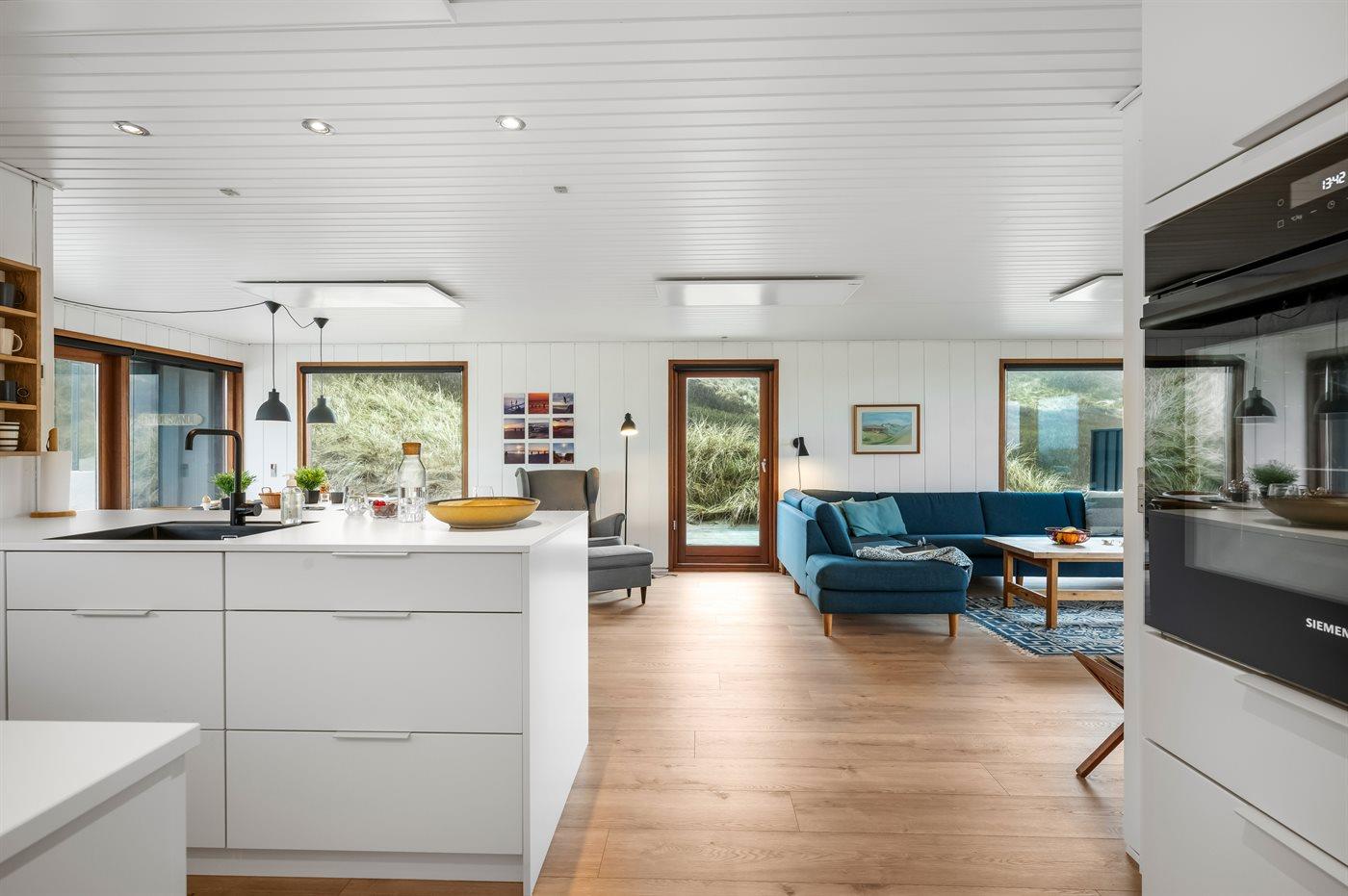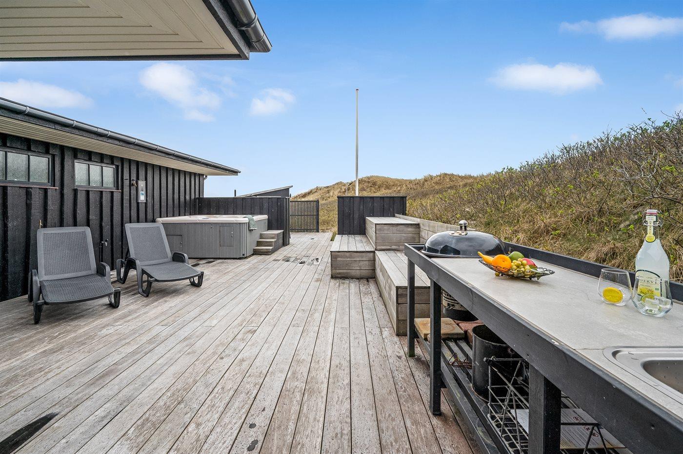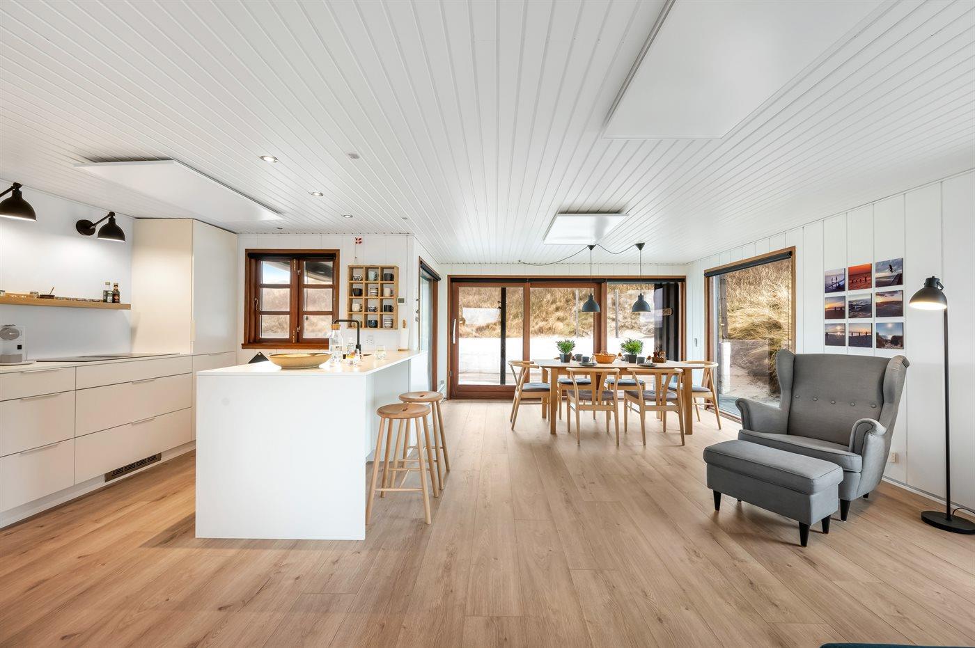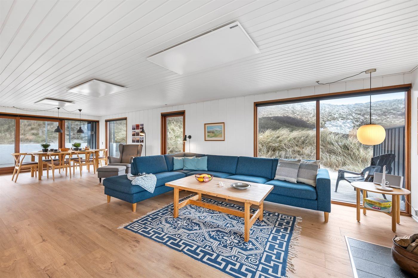 Das Haus wurde 1977 erbaut und verfügt über eine Fläche von 106 Quadratmeter. Seit dem Bau wurde das Haus umfangreich renoviert. Das Haus liegt schön und etwas abgeschieden auf einem 8000 m² großen Dünengrundstück, nur 50 m von der Nordsee und 100 m vom Ringkøbing Fjord entfernt. Das nächste Geschäft für den täglichen Bedarf liegt 2.000 m entfernt im idyllischen Hvide Sande. Hier kann man bummeln, gut essen, frischen Fisch kaufen und das pulsierende Leben am Hafen erleben.