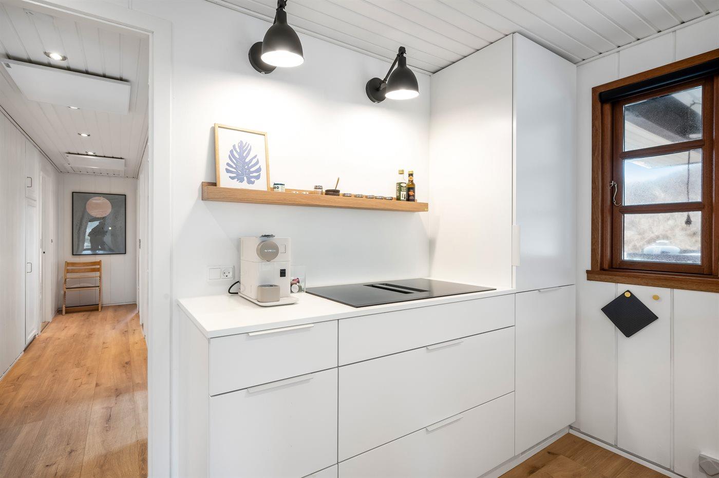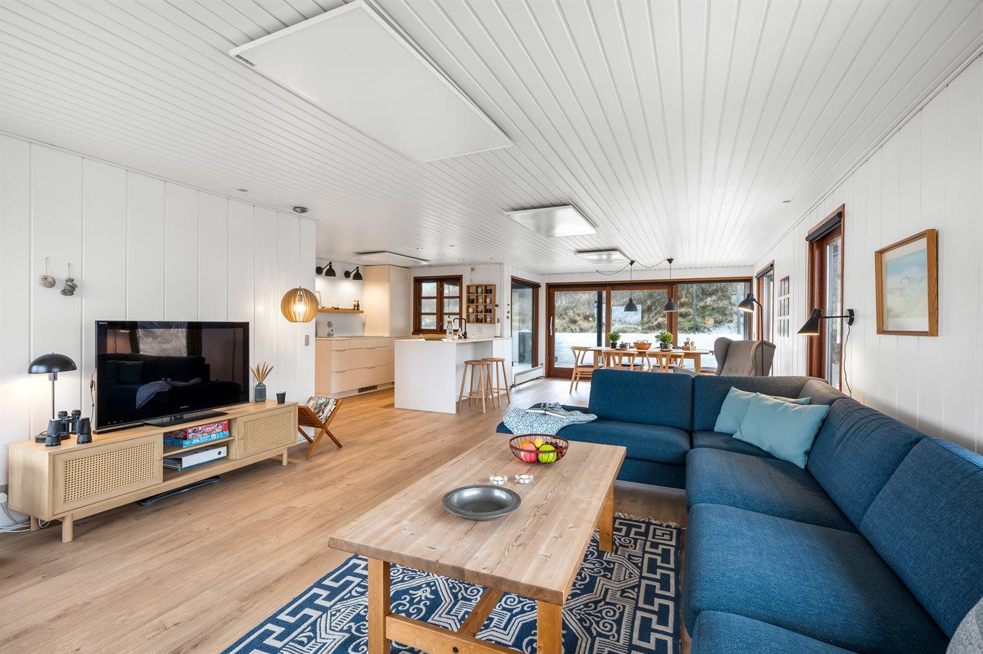 Das Ferienhaus besticht außen und innen mit dem typischen Ferienhauscharme. Es ist geschmackvoll eingerichtet und hat alle Annehmlichkeiten, die man erwartet. Im gemütlichen Wohnzimmer kann man es sich im weichen Sofa vorm Kamin bequem machen, der an kühlen Abenden eine warme, gemütliche Atmosphäre schafft. Oder man genießt den Blick auf die außerordentlich schöne Natur durch die Fenster. Es steht eine voll ausgestattete, neue Küche (2024) mit Kühlschrank (Gefrierkapazität 50 l), 4 Induktionskochfelder, Ofen, Mikrowelle und Spülmaschine zur Verfügung.