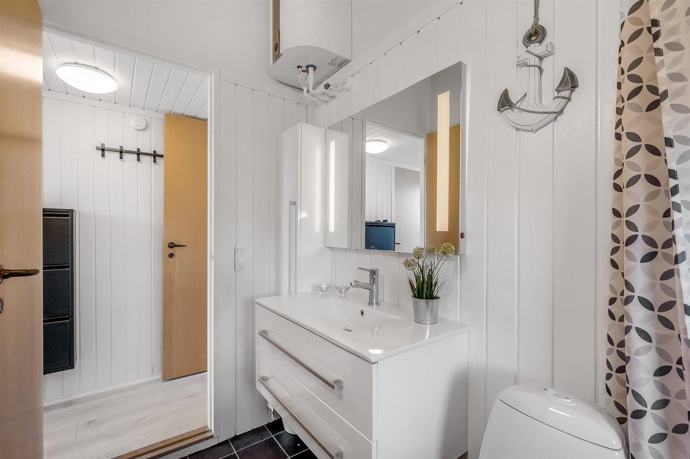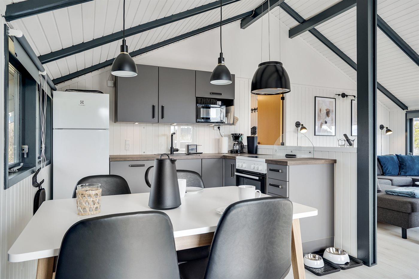 Zwischen Meer und Fjord liegt dieses, kleine und gemütliche Ferienhaus älteren Jahrgangs - mit Fjordblick sowohl vom Haus als auch vom Grundstück aus. Das Haus liegt in einer Sackgasse auf einem 2013 m2 großen Naturgrundstück, nur 250 m vom Meer entfernt. Parkplatz am Haus.