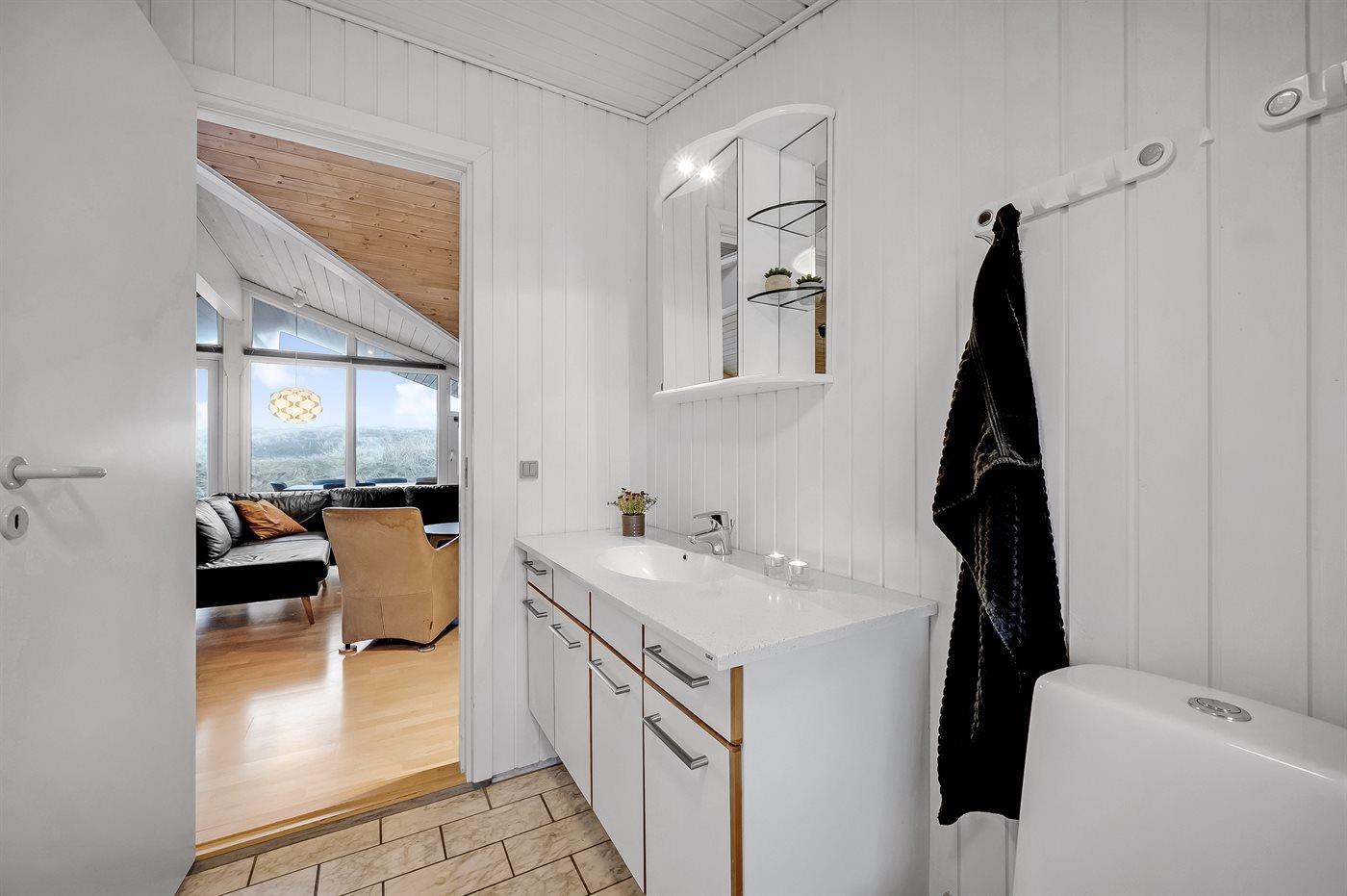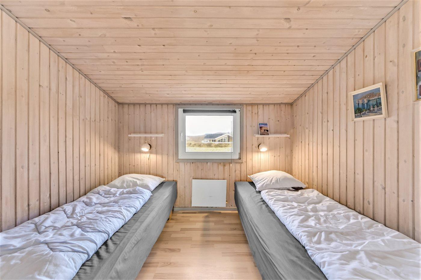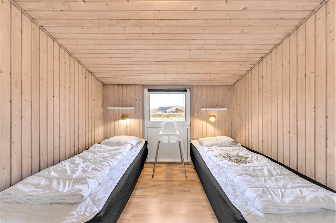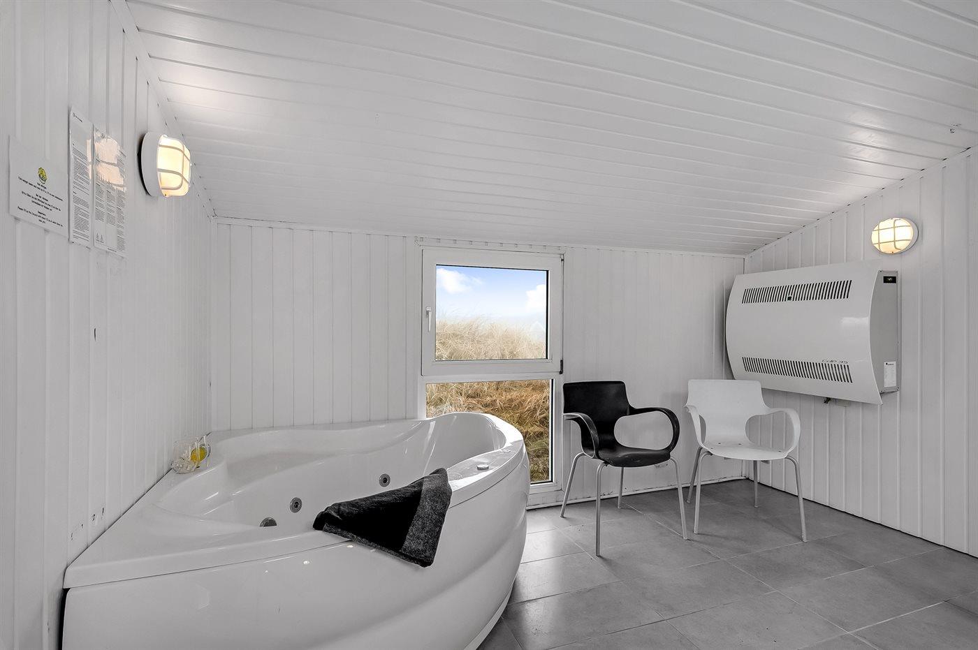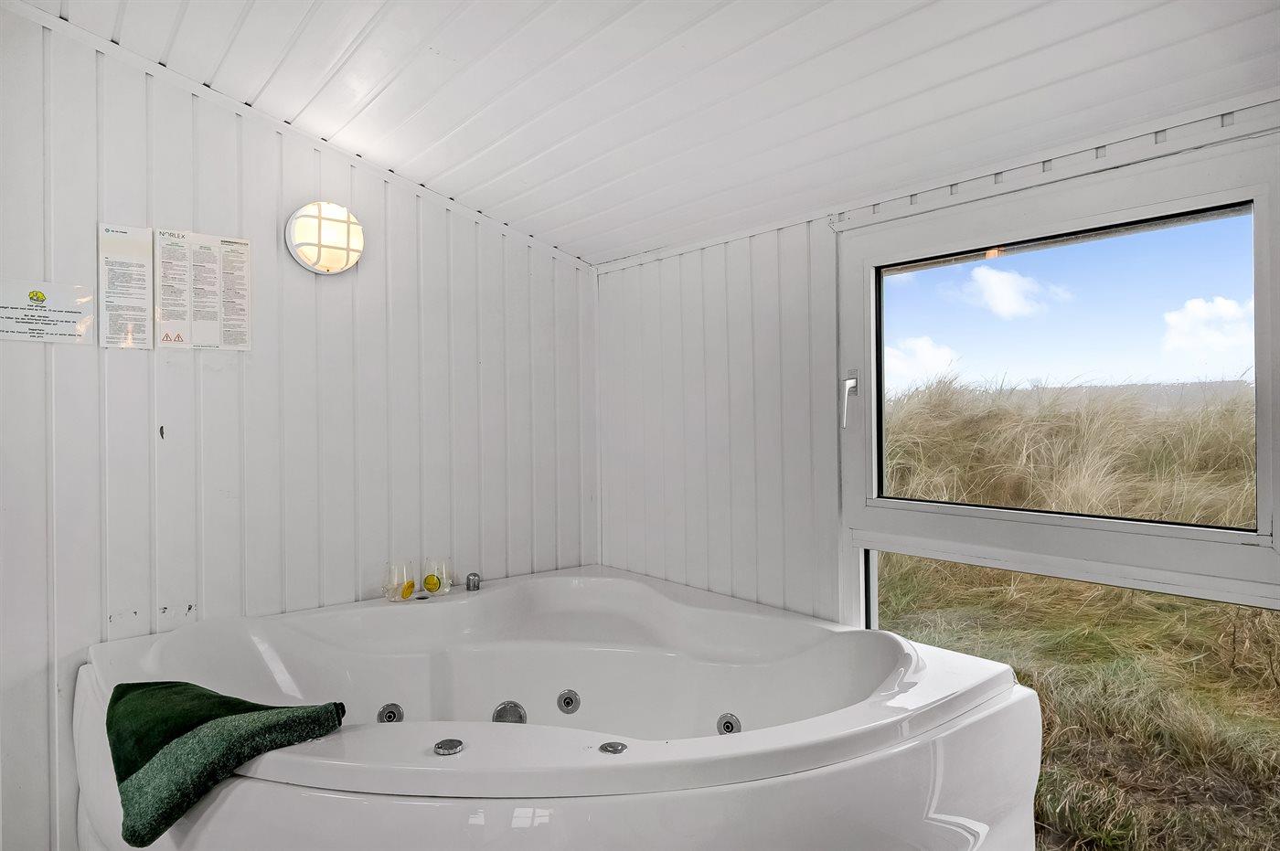 Auf der schmalsten Stelle der attraktiven Landzunge, Holmsland Klit, liegt dieses schöne Ferienhaus aus Holz mit u. a. Swimmingpool (4 x 3,3 x 1,4), Whirlpool und Outdoor-Sauna. Das Haus liegt auf einem Dünengrundstück, das an ein unter Naturschutz stehendes Dünengebiet grenzt - nur 100 m vom Wasser entfernt. Es gibt ein großes, teilweise überdachtes Terrassenareal mit Gartenmöbeln. Holzboden im Wohnzimmer, in der Küche, im Flur und den Zimmern. Das Haus enthält eine Pool-Abteilung mit Swimmingpool und Whirlpool. Von der Pool-Abteilung direkter Zutritt zu Duschnische und Gästetoilette. Darüber hinaus gibt es ein nettes Badezimmer mit Fußbodenheizung, Duschnische sowie Waschmaschine und Wäschetrockner. In der Küchenabteilung, die mit dem Wohnzimmer kombiniert ist, gibt es u. a. Kochinsel, Geschirrspüler, Mikrowelle und Tiefkühlgerät. Das gemütliche Wohnzimmer ist mit Kaminofen und TV mit digitalem Satellitenanschluss ausgestattet. Das Haus enthält auch 4 gute Schlafzimmer; hiervon 2 mit Doppelbetten und 2 mit je 2 Einzelbetten. An weiterer Ausstattung können kostenlose kabellose Internetverbindung (eigener Computer ist mitzubringen), Kinderbett sowie Kinderhochstuhl erwähnt werden und es ist eine energiegerechte Wärmepumpe installiert. Draußen Sandkasten für die Kinder. Ein herrliches Ferienhaus, das das ganze Jahr hindurch für sowohl 1 als auch 2 Familien geeignet ist. Nur wenige Min. Autofahrt zur Fischereistadt Hvide Sande.