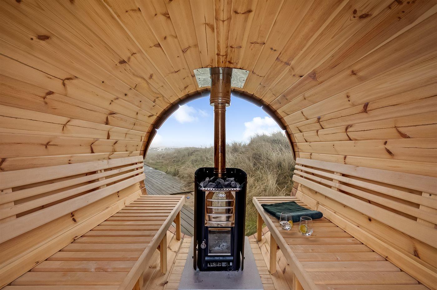 Holzferienhaus mit Pool und Sauna am Meer