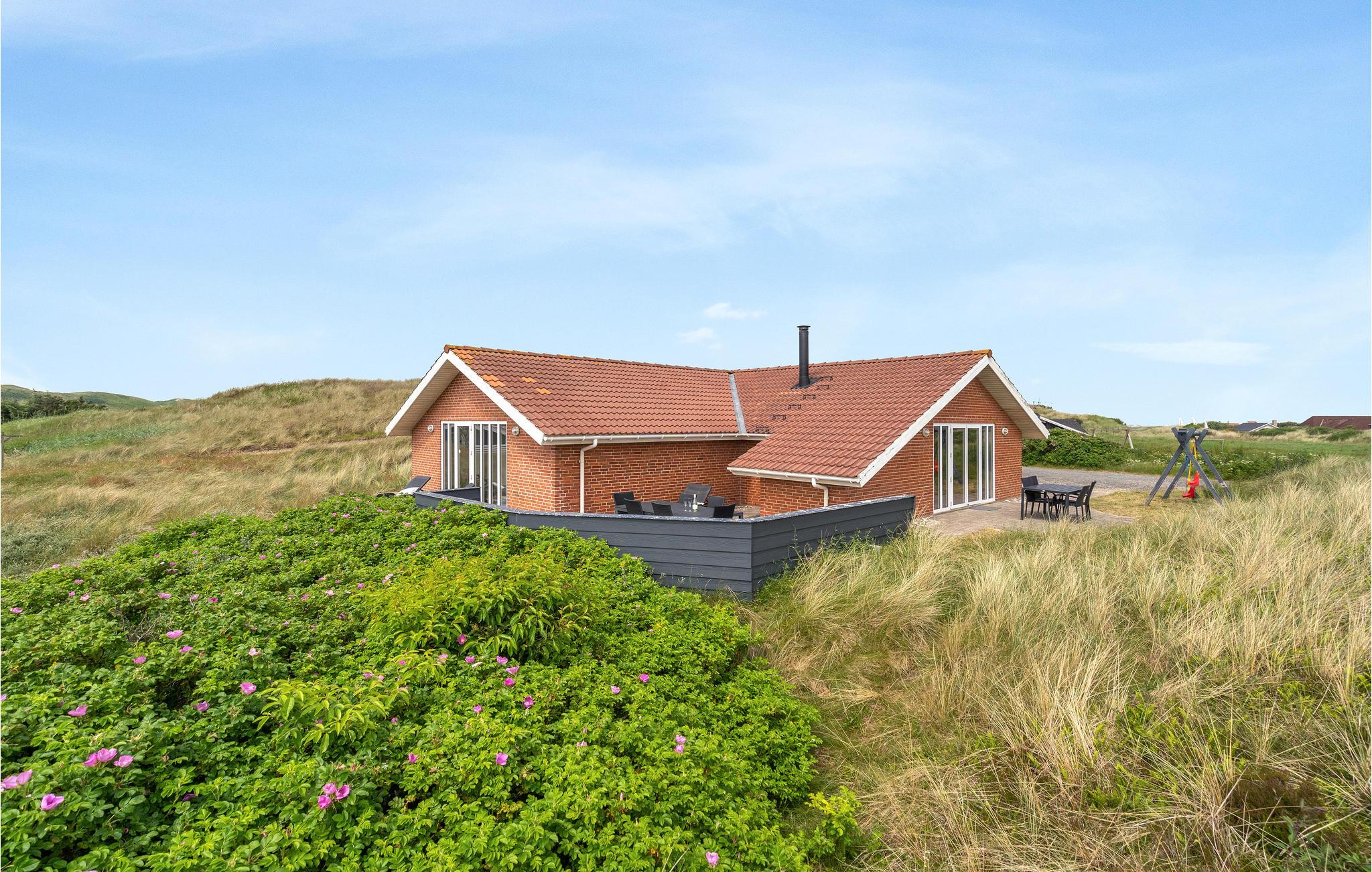 Dieses große gepflegte Ferienhaus aus Stein liegt auf einem etwas hügeligen Dünengrundstück.