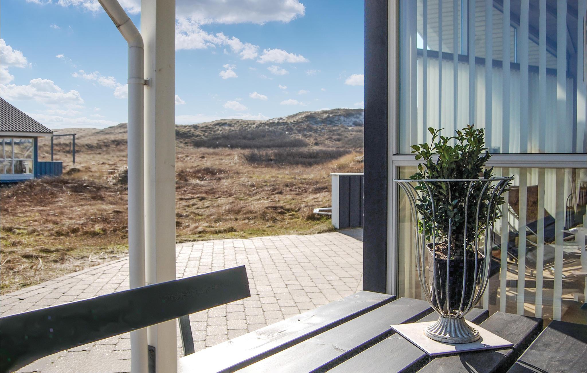 Blick auf die Dünen bietet sich Ihnen vom Wohnraum und von der Terrasse dieses äußerst schönen, auf einem Dünengrundstück gelegenen Ferienhauses, das mit Liebe zum Detail eingerichtet wurde. Vom größten der Schlafräume haben Sie z.B. direkten Zugang zur sehr großen Terrasse, wo Sie stundenlang die Sonne und den Blick auf die Natur genießen können. Durch das große Südpanoramafenster haben Sie Aussicht auf die Dünen. Das Haus hat - als eines der letzten vor der Nordsee - eine einmalige Lage. Es ist auch nicht weit zur Stadt Hvide Sande und zum Surfereldorado Fjord Ringkøbing.