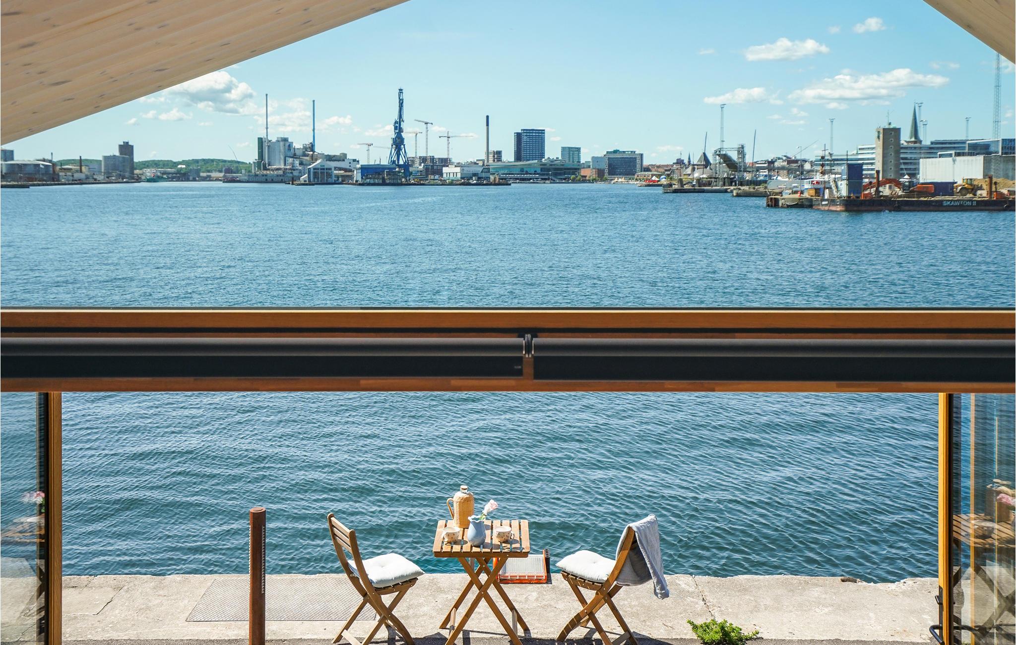 Modernes Studioapartment in Aarhus Ø mit herrlichem Panoramablick aufs Wasser und komfortabler Ausstattung.