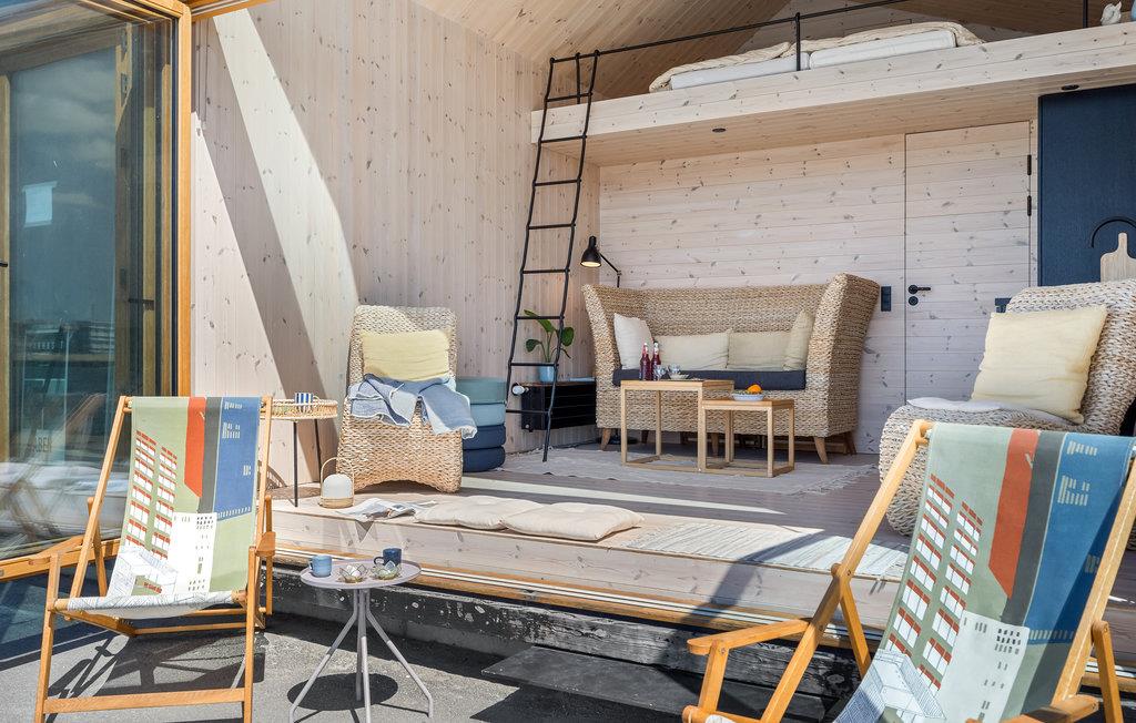 Verbringen Sie Ihre Urlaubstage in bester Lage zum Wasser in diesem kompakten und komfortablen Apartment. Das moderne Apartment ist mit allem ausgestattet, was Sie zum Wohlfühlen und Wohnen brauchen. Genießen Sie vom Wohnraum und dem Schlafboden den Blick durch das Panoramafenster nach draußen. Wenn die Sonne lacht, können Sie die Fensterwand öffnen und sich mit Ihrem Morgenkaffee auf den Liegestuhl ins Freie setzen.