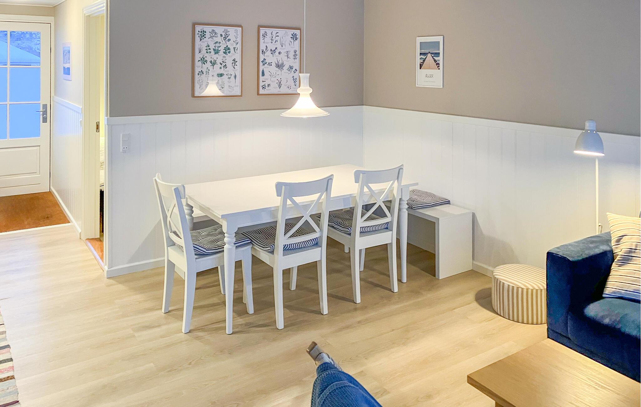 Dieses Haus liegt in erster Reihe zum Wasser und bietet Ihnen einen wunderschönen Panoramablick über den Limfjord. Ein lichtdurchfluteter Wohnraum mit bequemem Mobiliar lädt dazu ein, gemeinsam gemütliche Stunden zu verbringen. Egal ob Sie Ihren Lieblingspodcast hören oder gemeinsam frische Mahlzeiten kochen, hier kommen Sie schnell in den Urlaubsmodus.