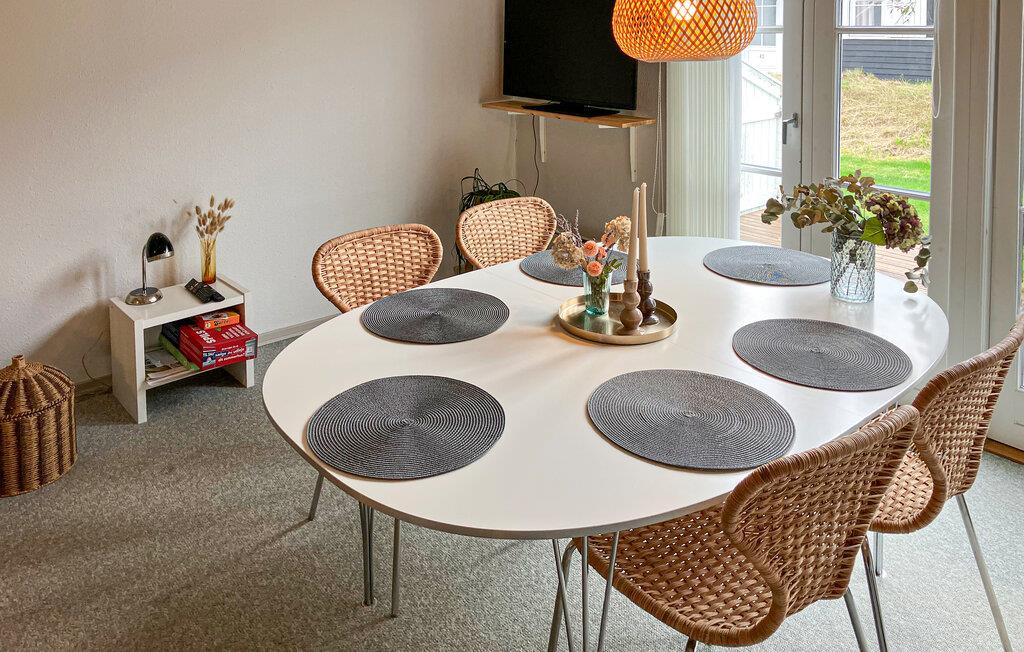 Treten Sie ein und fühlen Sie sich sofort willkommen in diesem freundlich gestalteten Ferienhaus. Die hellen Räume, das geschmackvolle Interieur und die ruhige Lage schaffen eine Atmosphäre, in der Sie und Ihre Familie sich rundum entspannen können. Nur wenige Minuten trennen Sie von der Nordsee, dem Fjord und mehreren idyllischen Seen. Die offene Gestaltung und der schöne Essbereich mit Blick nach draußen laden dazu ein, gemeinsame Mahlzeiten in angenehmer Umgebung zu genießen. Am Abend können Sie im gemütlichen Wohnzimmer zusammensitzen und die Seele baumeln lassen.