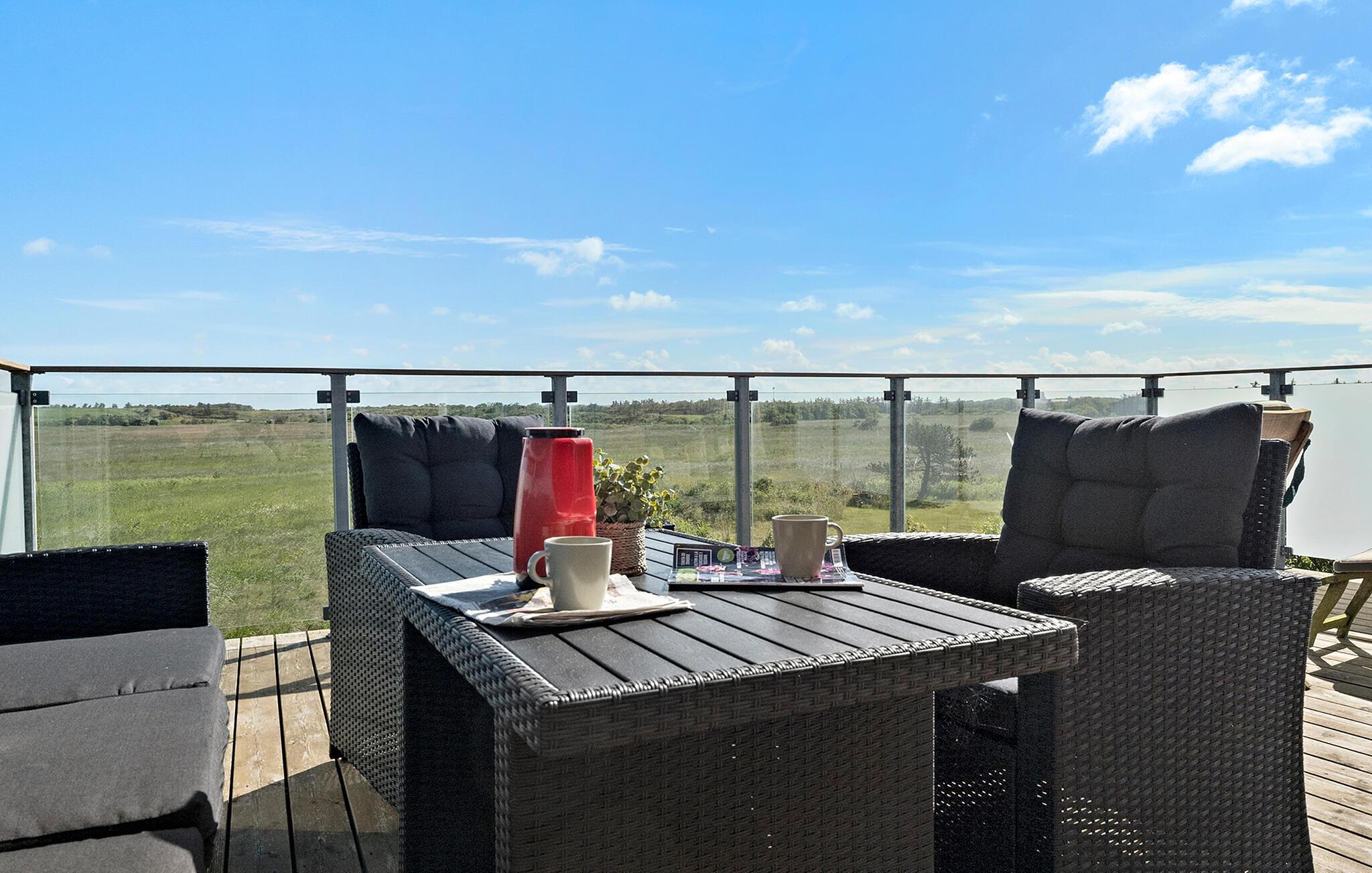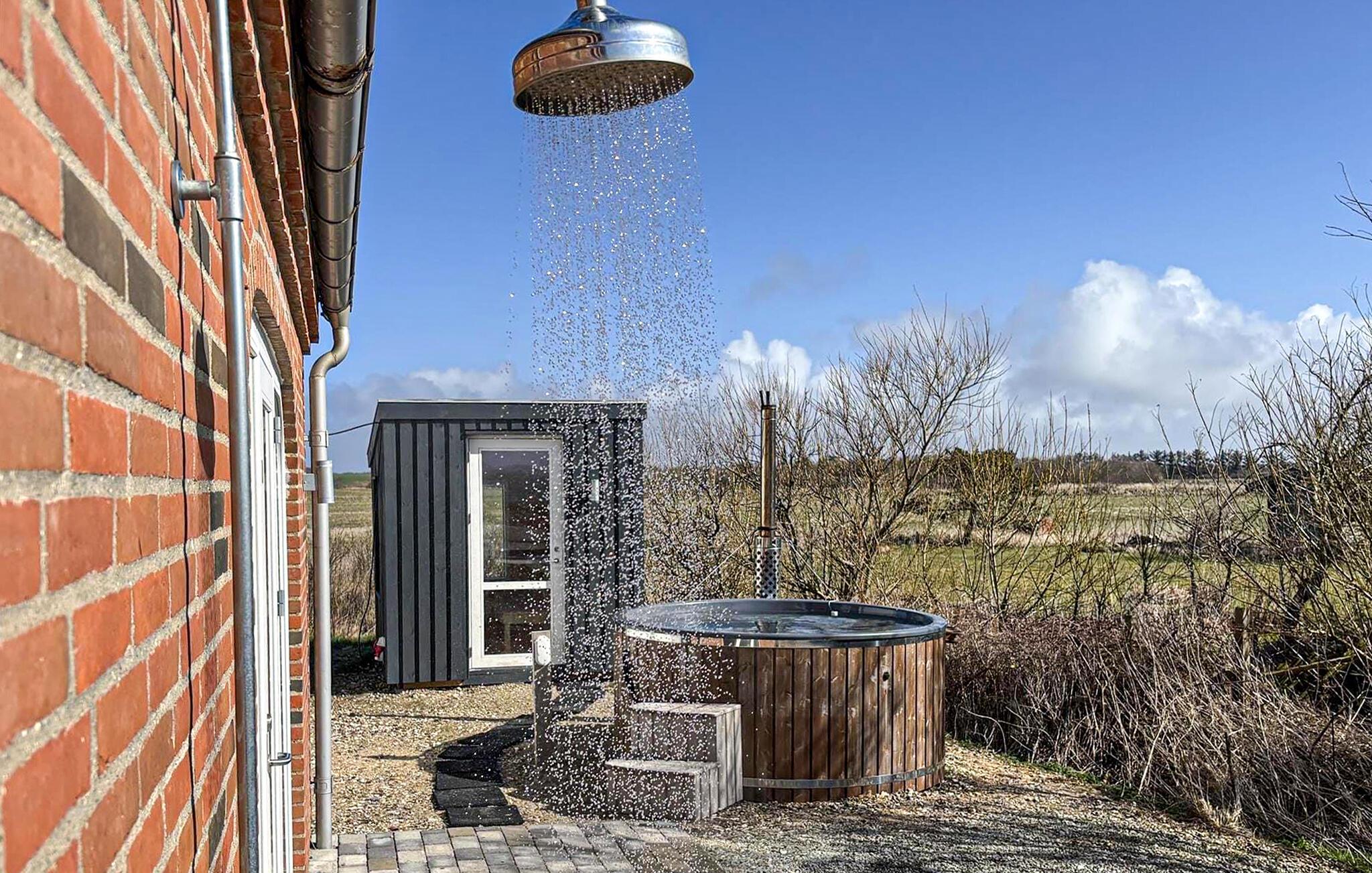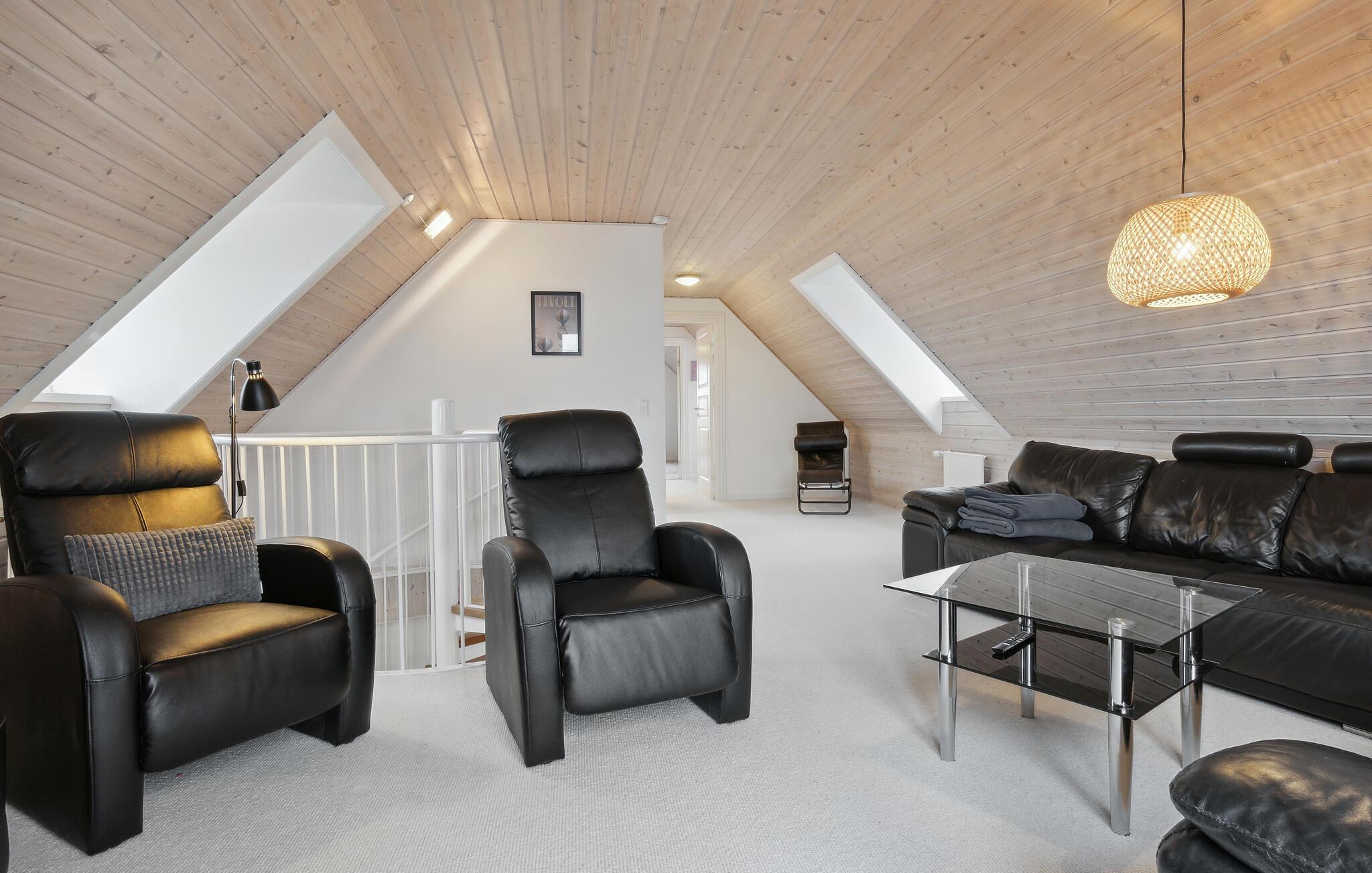 Erleben Sie ein großzügiges Ferienhaus mit Panoramablick, Aktivitätsraum und finnischem Holzbad in Agger Strand, Dänemark.