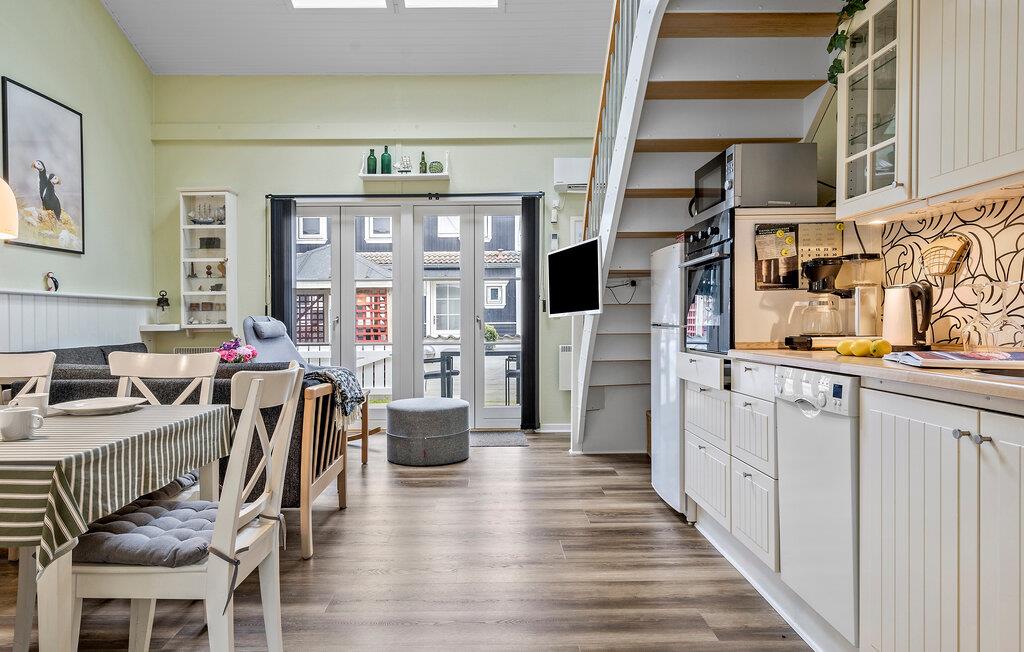 Treten Sie ein und lassen Sie sich vom gemütlichen Ambiente dieses charmanten Ferienhauses mit Blick auf den Hafen von Agger und den Limfjord begeistern. Freuen Sie sich auf gemeinsame Kochabende in der modernen Küche und harmonische Mahlzeiten im behaglichen Essbereich. Machen Sie es sich für einen Film oder einen Spieleabend auf dem Sofa bequem oder legen Sie im einladenden Lesesessel die Füße hoch, um sich in eine gute Lektüre zu vertiefen.
