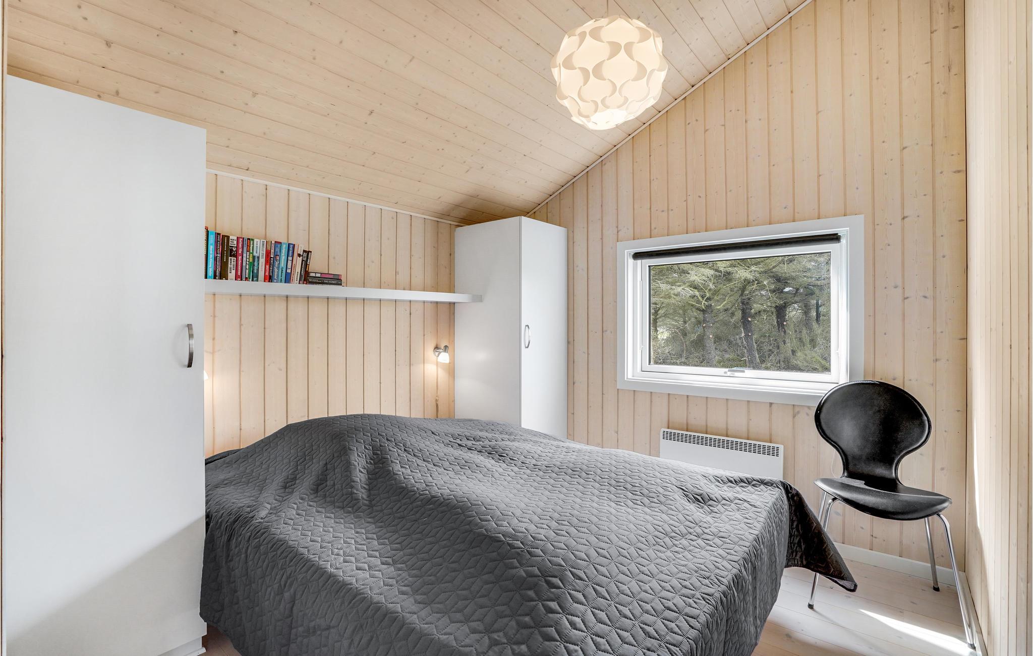 Genießen Sie in diesem Ferienhaus einen schönen Blick auf die Landschaft der Umgebung. Es gibt 2 Schlafzimmer mit Doppelbetten sowie ein Schlafzimmer mit 2 Einzelbetten, so dass hier bis zu 6 Personen bequem Platz finden. Das Wohnzimmer mit der offenen Küche ist hell und einladend und lädt mit dem Kaminofen zu vielen gemütlichen gemeinsamen Stunden ein.