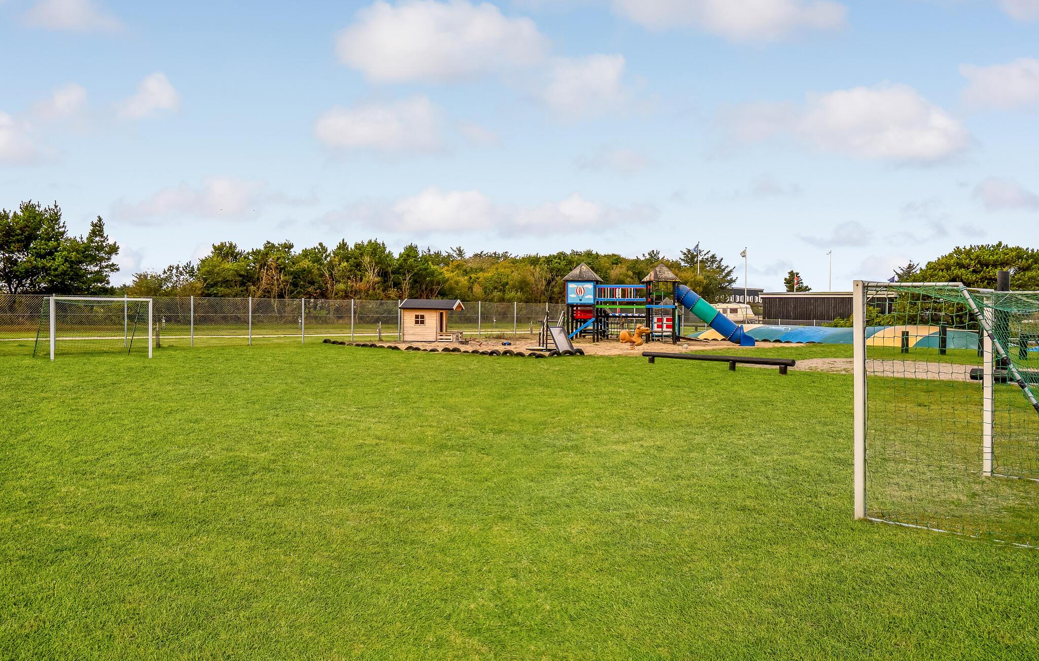 Das Ferienhaus befindet sich auf Krik Vig Camping. Somit haben Sie Zugang zu einem Aktivitätsraum mit Tischtennis und Kicker, einem Ballspielplatz, Kinderspielplatz und einer Hüpfburg.