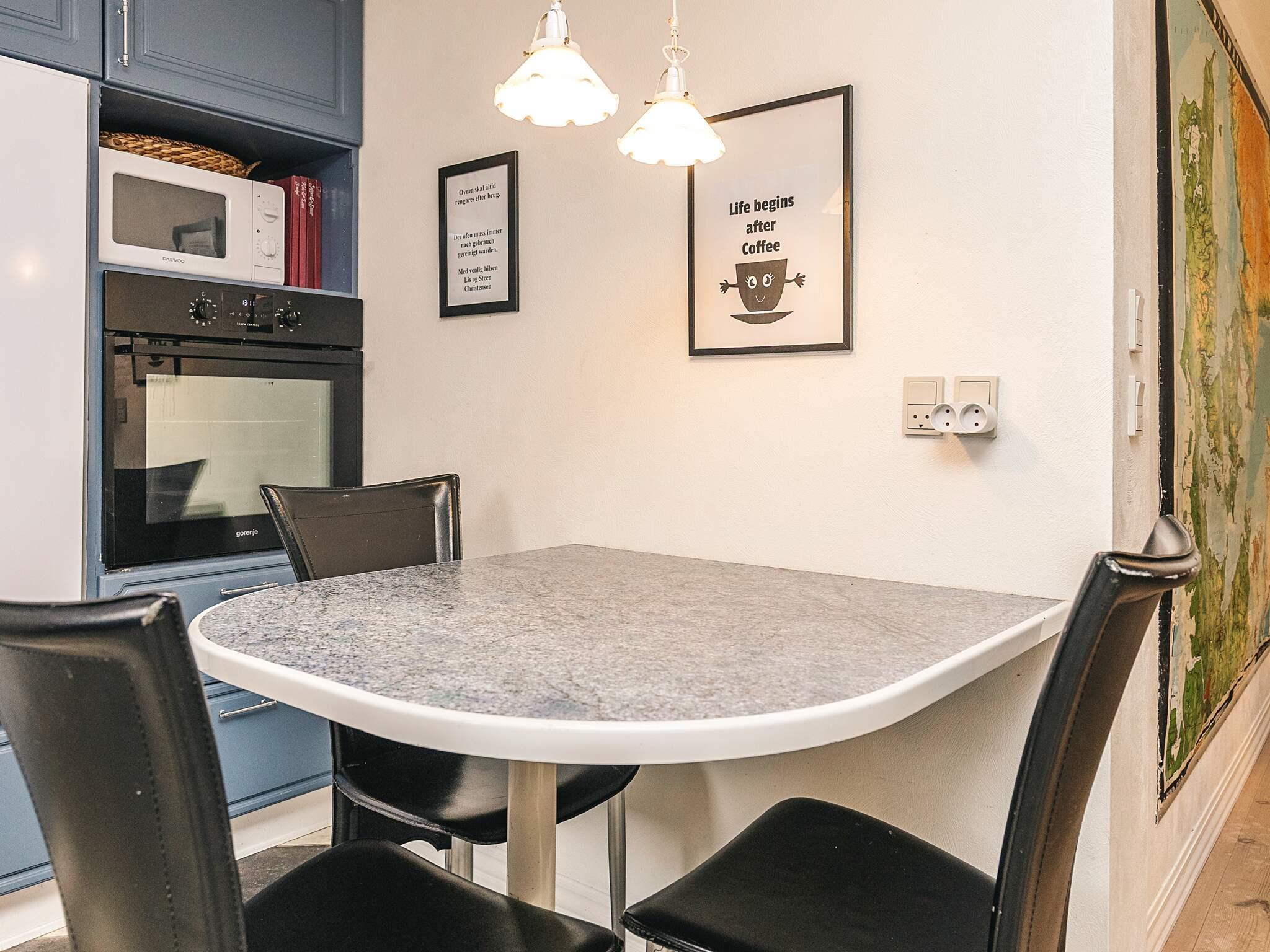 In der Küche befindet sich ein Essbereich, der durch zusätzlichen Küchenbereich im Hauswirtschaftsraum und der Speisekammer/Abstellraum erweitert wurde. Das Haus verfügt über alle notwendigen Annehmlichkeiten wie Kochplatten (Induktion und Standard), Dunstabzugshaube, Backofen, mehrere Kühlschränke, Gefrierschrank, Geschirrspüler, Kaffeemaschine und Mikrowelle.