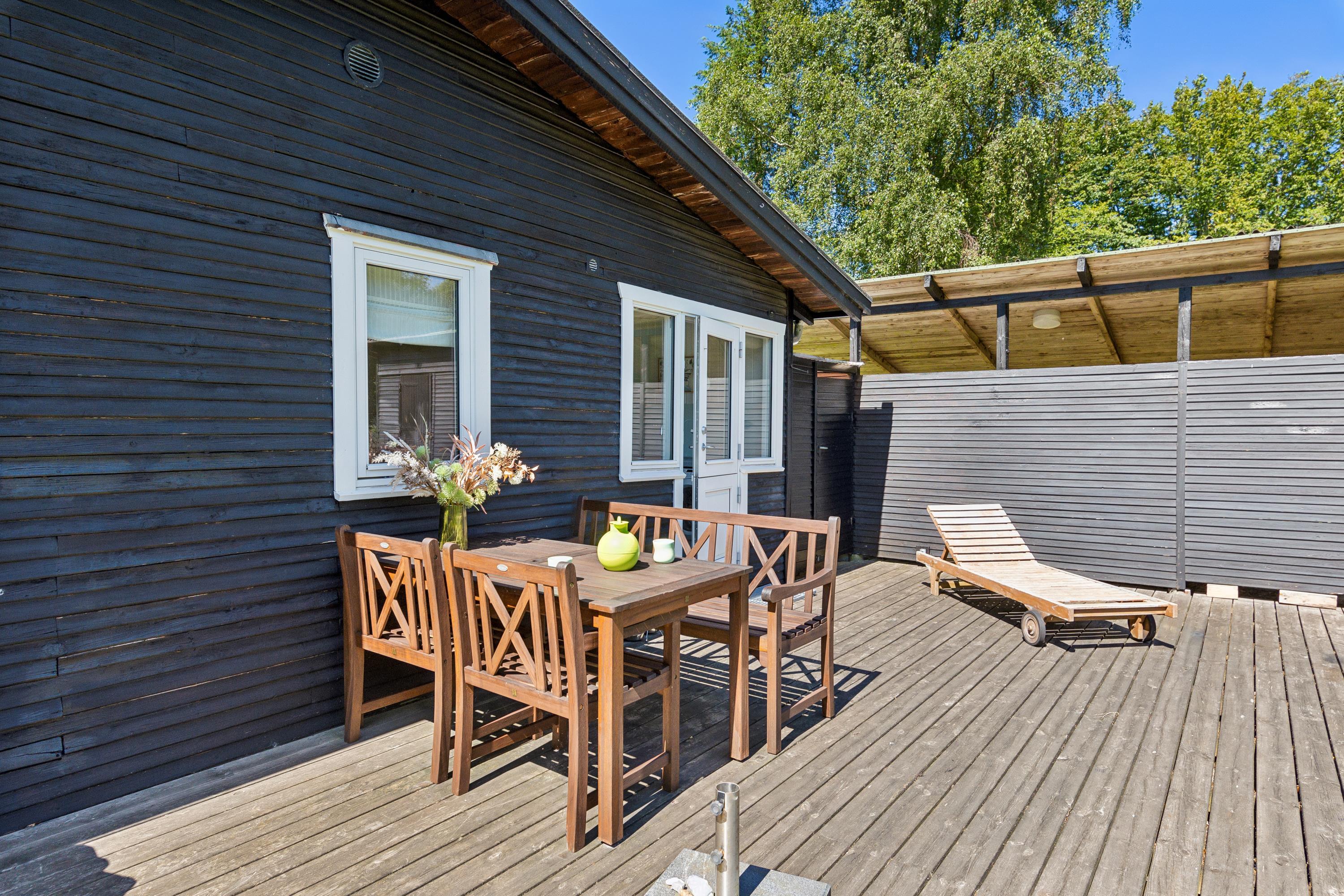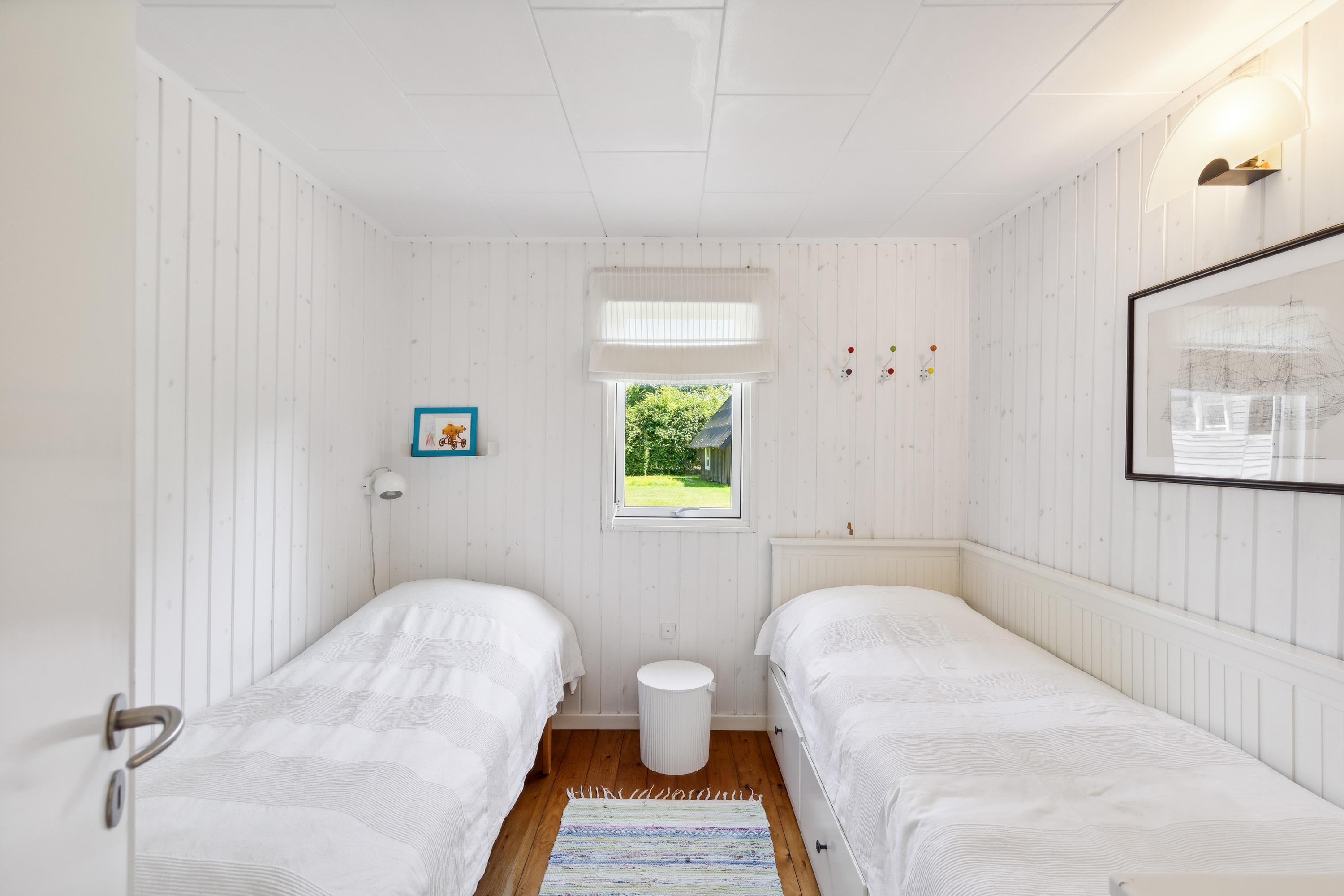 Nicht weit von einem schönen Strand entfernt finden Sie dieses „echte“ Sommerhaus, gelegen auf einem schönen Grundstück mit großer Rasenfläche. Hier finden Sie ein gemütlich eingerichtetes Wohnzimmer mit Holzofen und Wärmepumpe und von dem aus Sie Zugang zu einer überdachten Terrasse haben. In Verbindung mit dem Wohnzimmer finden Sie die kleinere, aber funktionale Küche mit unter anderem Waschmaschine und Geschirrspüler sowie Zugang zu einer weiteren Terrasse. Die Schlafgelegenheit des Ferienhauses besteht aus zwei Zimmern, einem Zimmer mit zwei Einzelbetten und einem Zimmer mit einem Doppelbett. Schönes Badezimmer mit Dusche. Das Ferienhaus liegt auf einem schönen Grundstück mit großer Rasenfläche, die sich zum Spielen, Ballspielen und für Freizeitaktivitäten im Freien eignet. Auf dem Grundstück befindet sich ein Anbau, dieser ist nicht im Mietpreis enthalten. Wenn Sie mit mehreren Familien reisen, die zusammen sein möchten, vermieten wir auch Egernstien 15-18-20 und 22. Das Ferienhaus liegt 5 Gehminuten vom Strand entfernt