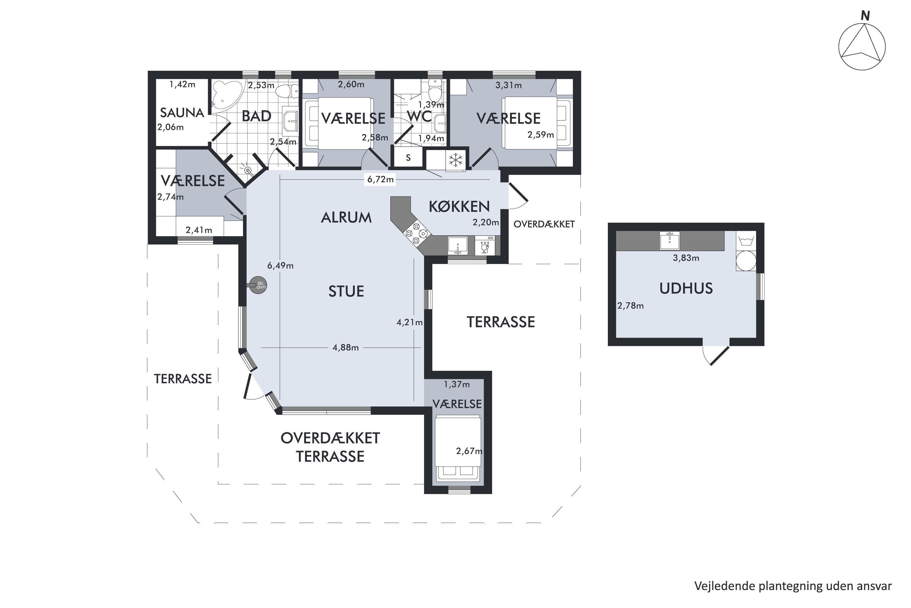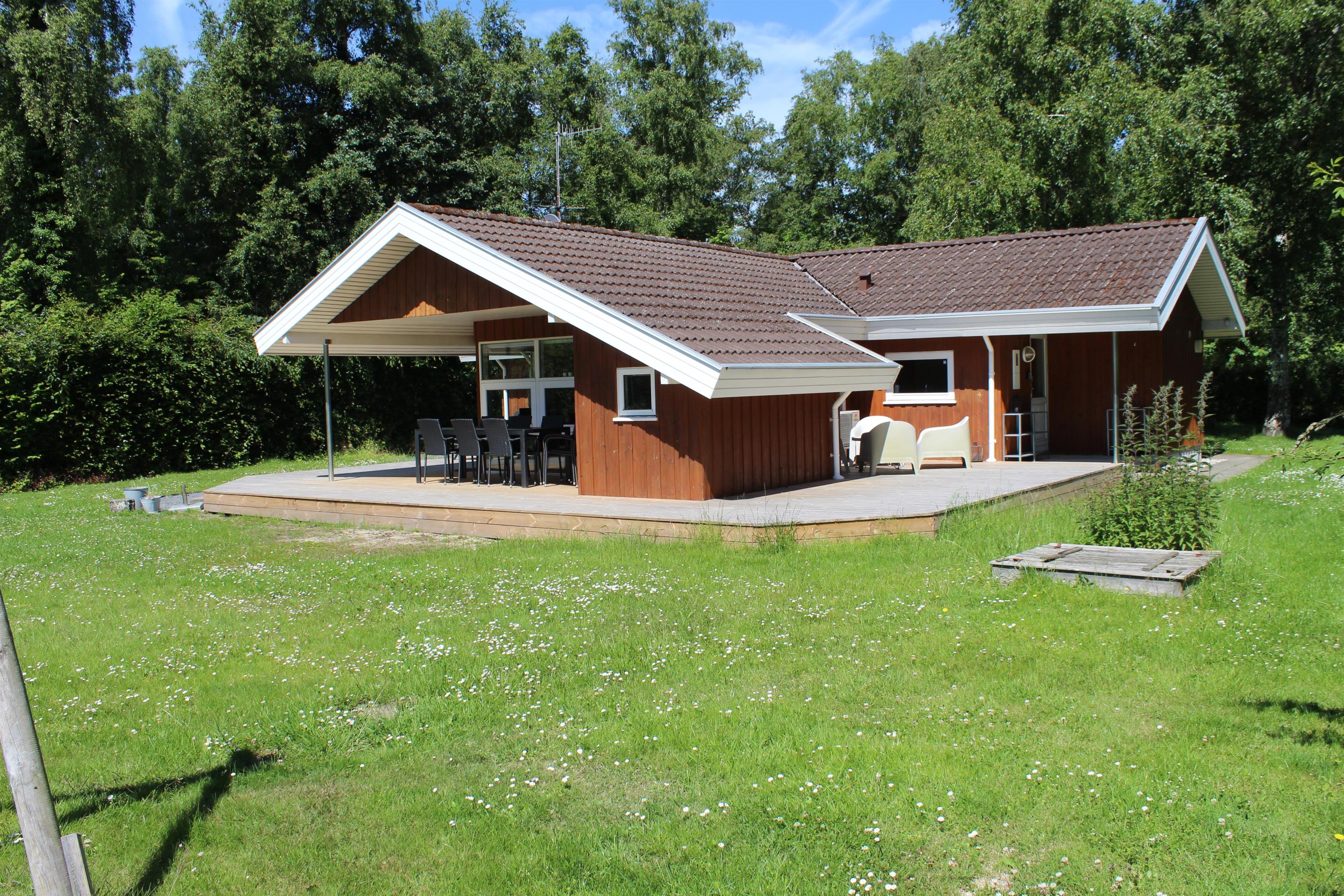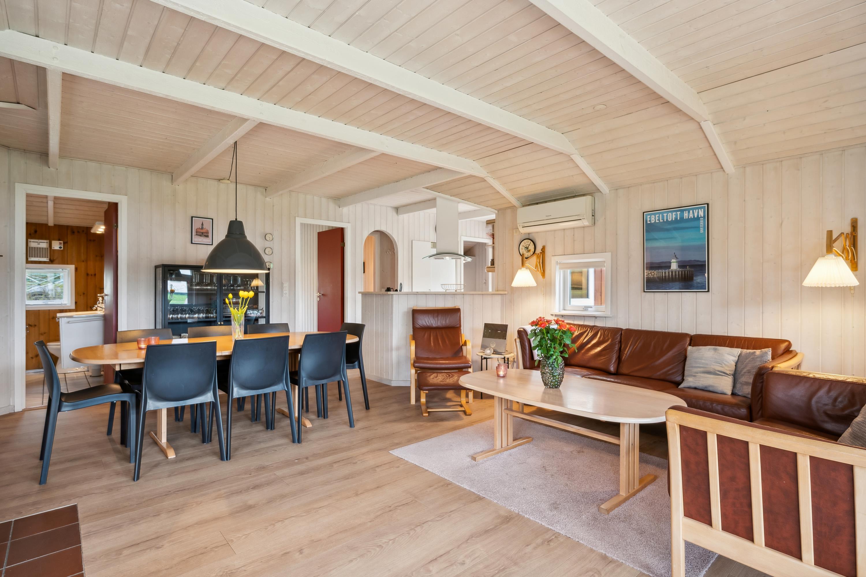 Nicht weit von der Stadt Ebeltoft und in der Nähe eines guten Badestrandes finden Sie dieses gepflegte Ferienhaus. Das Haus verfügt über ein gemütliches, helles und gut eingerichtetes Wohnzimmer mit Holzofen und Wärmepumpe sowie Zugang zu einer schönen überdachten Terrasse. In Verbindung mit dem Wohnzimmer befindet sich die gut ausgestattete Küche mit unter anderem Spülmaschine und eine gute Essecke. Das Haus verfügt über 4 gute Schlafzimmer, darunter drei Zimmer mit Doppelbetten und ein Zimmer mit zwei Einzelbetten. Schönes Badezimmer mit Whirlpool und Zugang zur Sauna des Hauses sowie ein Gäste-WC mit Waschbecken. Für die kleinen Feriengäste gibt es einen Hochstuhl und ein Kinderbett. Im Wirtschaftsschuppen am Ferienhaus stehen sowohl eine Waschmaschine als auch ein Wäschetrockner zur Verfügung. Das Haus ist von einer schönen großen Terrasse umgeben, von der ein Teil überdacht ist. Im Außenbereich wurde auch an die kleinen Feriengäste mit Schaukeln, einem Sandkasten und einer Rutsche gedacht. Es gibt eine schöne große Rasenfläche, die zum Spielen und Ballspielen sowie zum Vergnügen im Freien geeignet ist. Das Ferienhaus liegt in einer sehr kinderfreundlichen Gegend und 5 Gehminuten von einem schönen Strand entfernt.