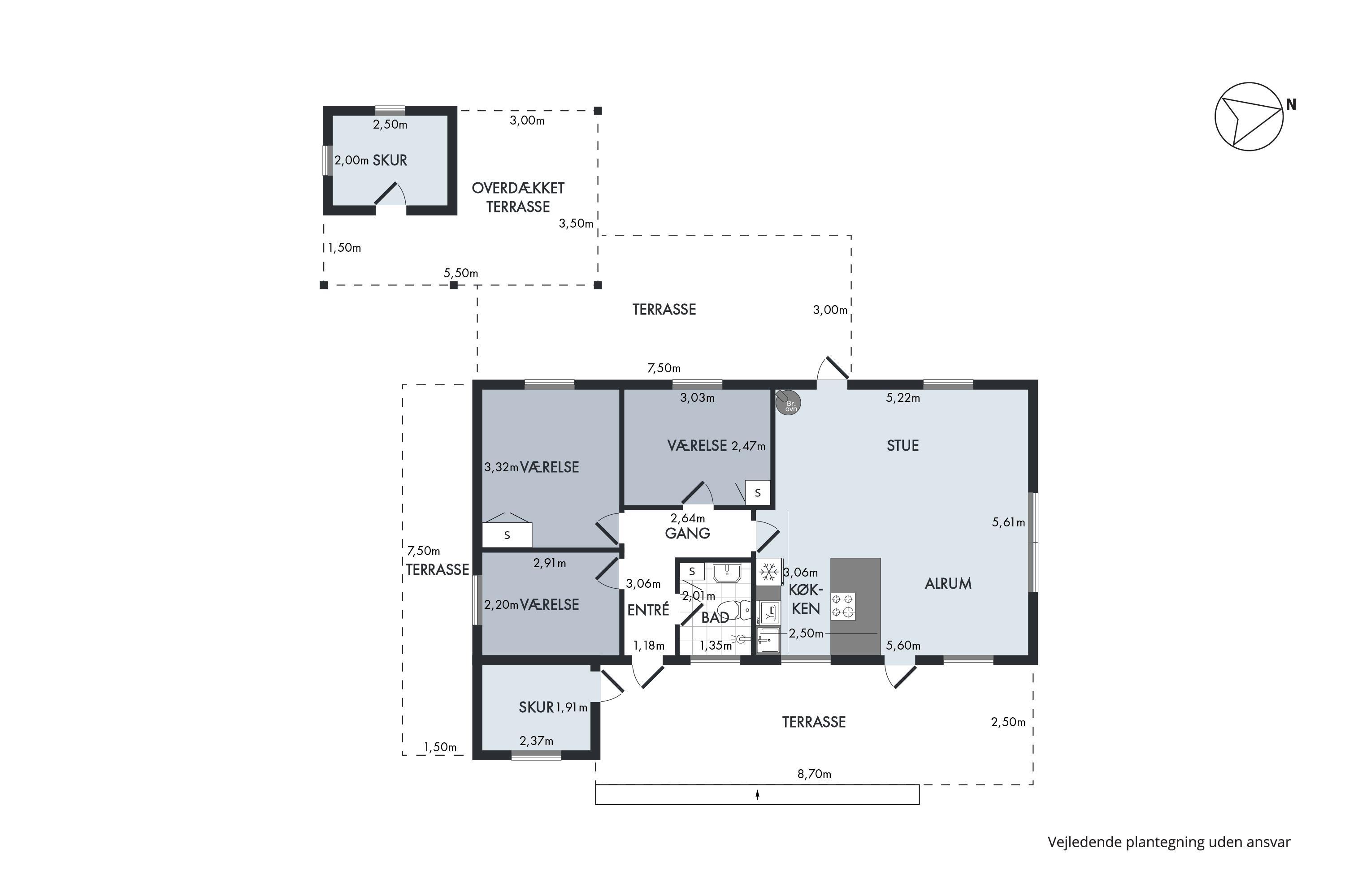 Das geräumige Wohnzimmer mit Ausgang auf die Terrasse liegt in offener Verbindung zur Küche und ist mit Kaminofen, Essplatz für sechs Personen, Sitzgarnitur und Flachbildschirm-TV mit Chromecast ausgestattet. Beachten Sie bitte, dass alle Inhalte über PC, Tablet oder Smartphone auf den Fernseher gestreamt werden müssen. Neuere Küche mit viel Arbeitsfläche, Glaskeramikherd, Kühl-/Gefrierkombination, Geschirrspüler und Mikrowelle. Die sechs Schlafplätze verteilen sich auf drei gut eingerichtete Schlafzimmer – ein großes Zimmer mit Doppelbett und zwei etwas kleinere Zimmer mit jeweils zwei Einzelbetten. Für die kleinsten Gäste ist ein Kinderbett vorhanden. Kleines, aber funktionelles Badezimmer mit Dusche. Internetzugang.
