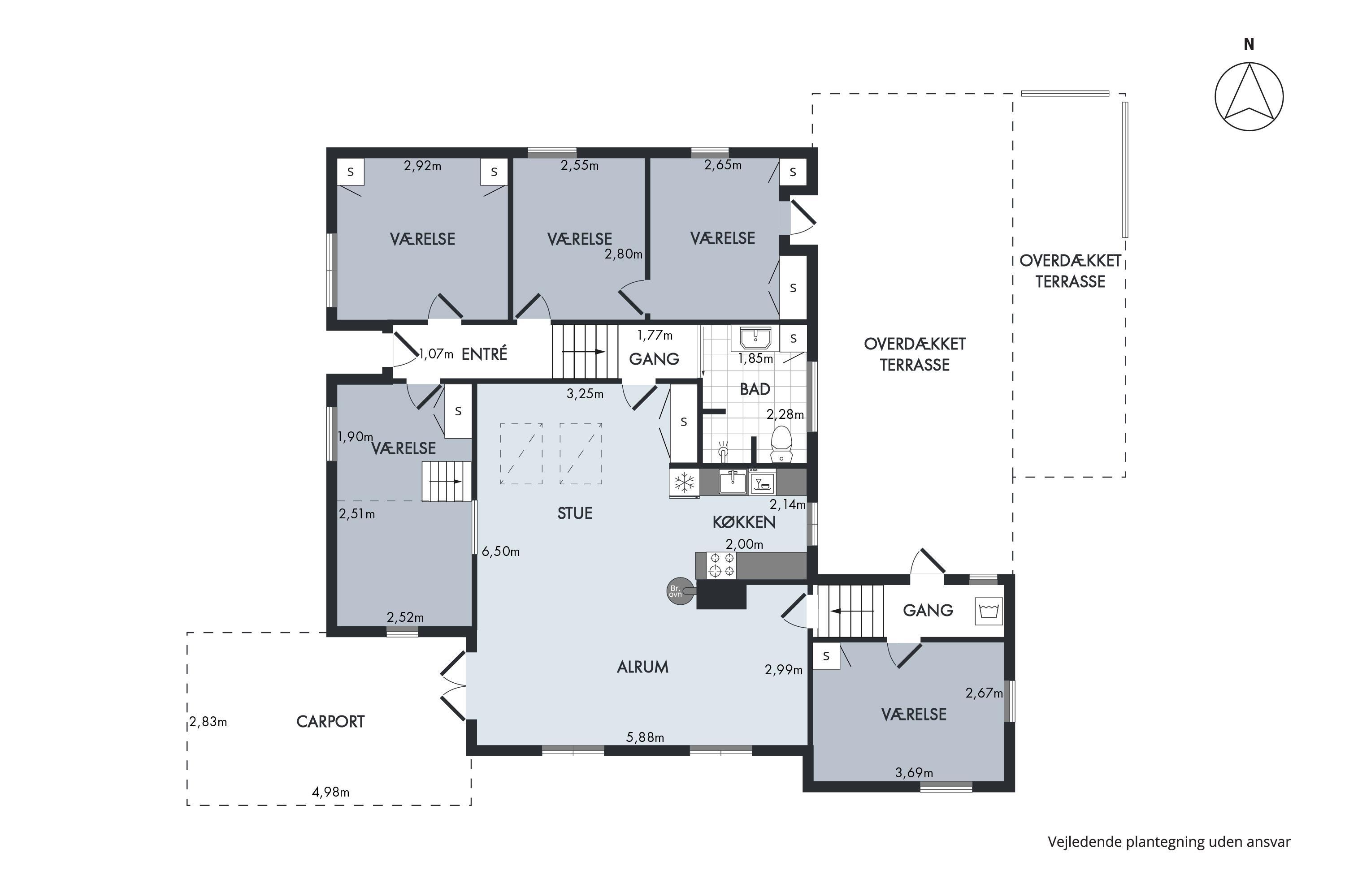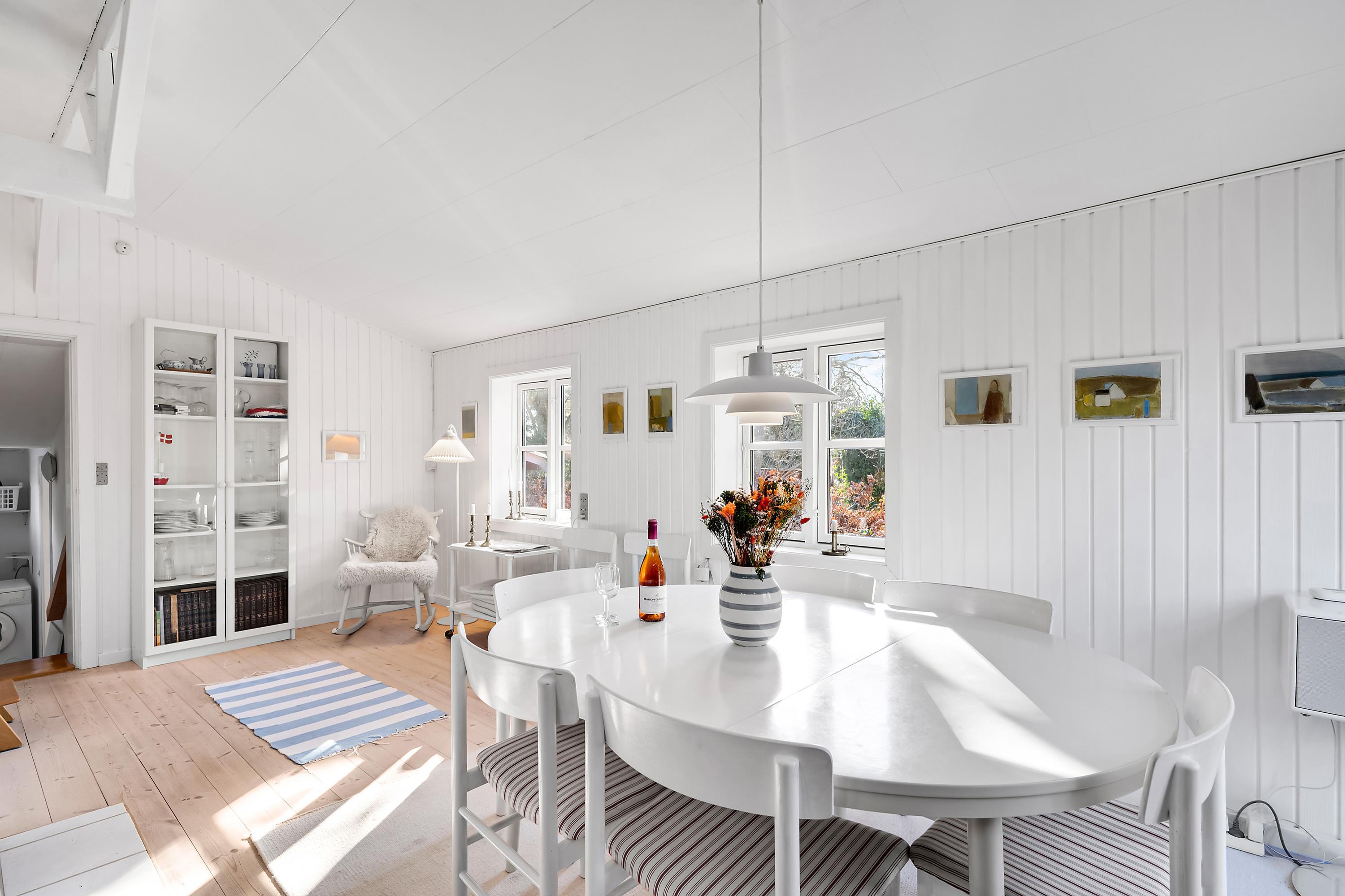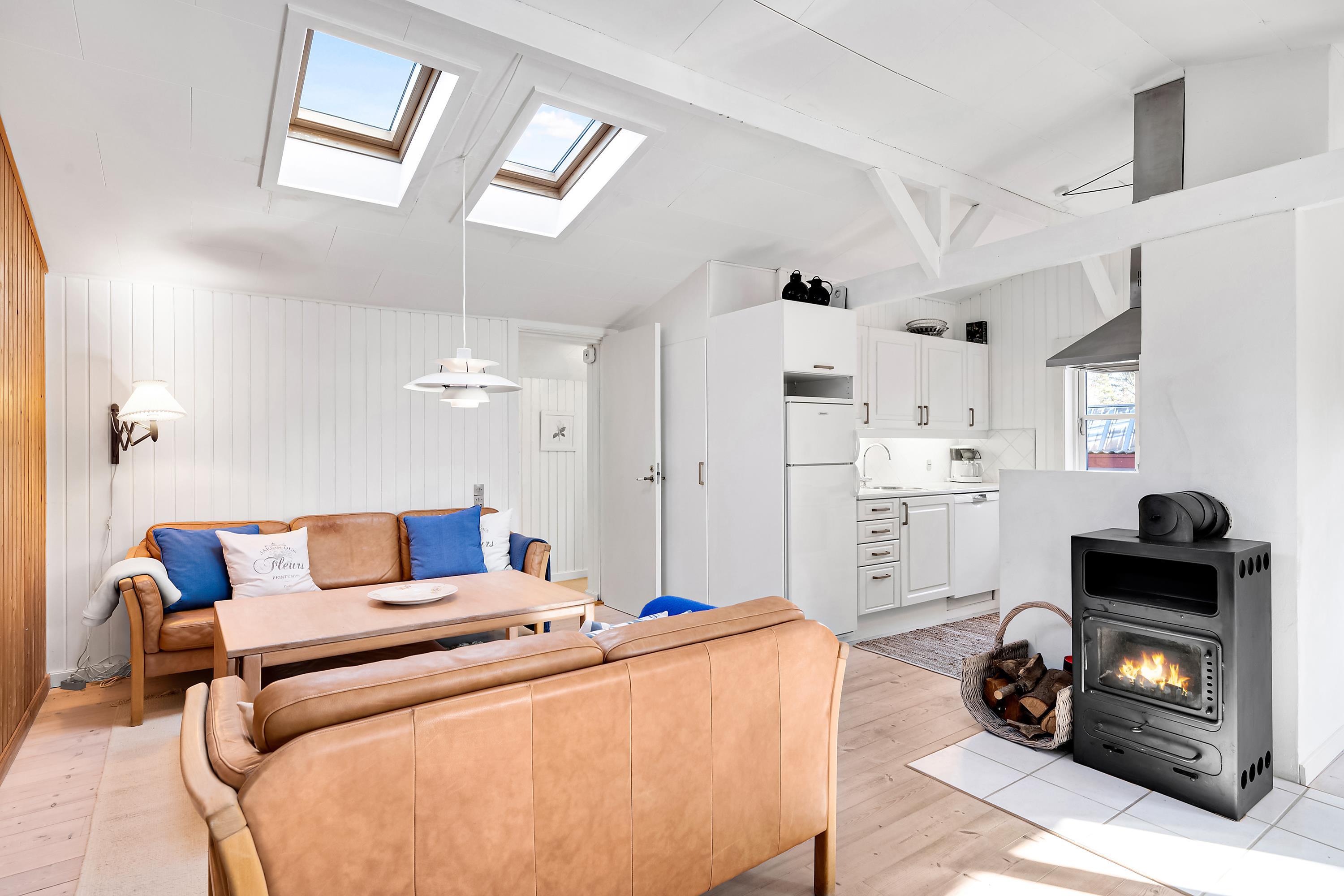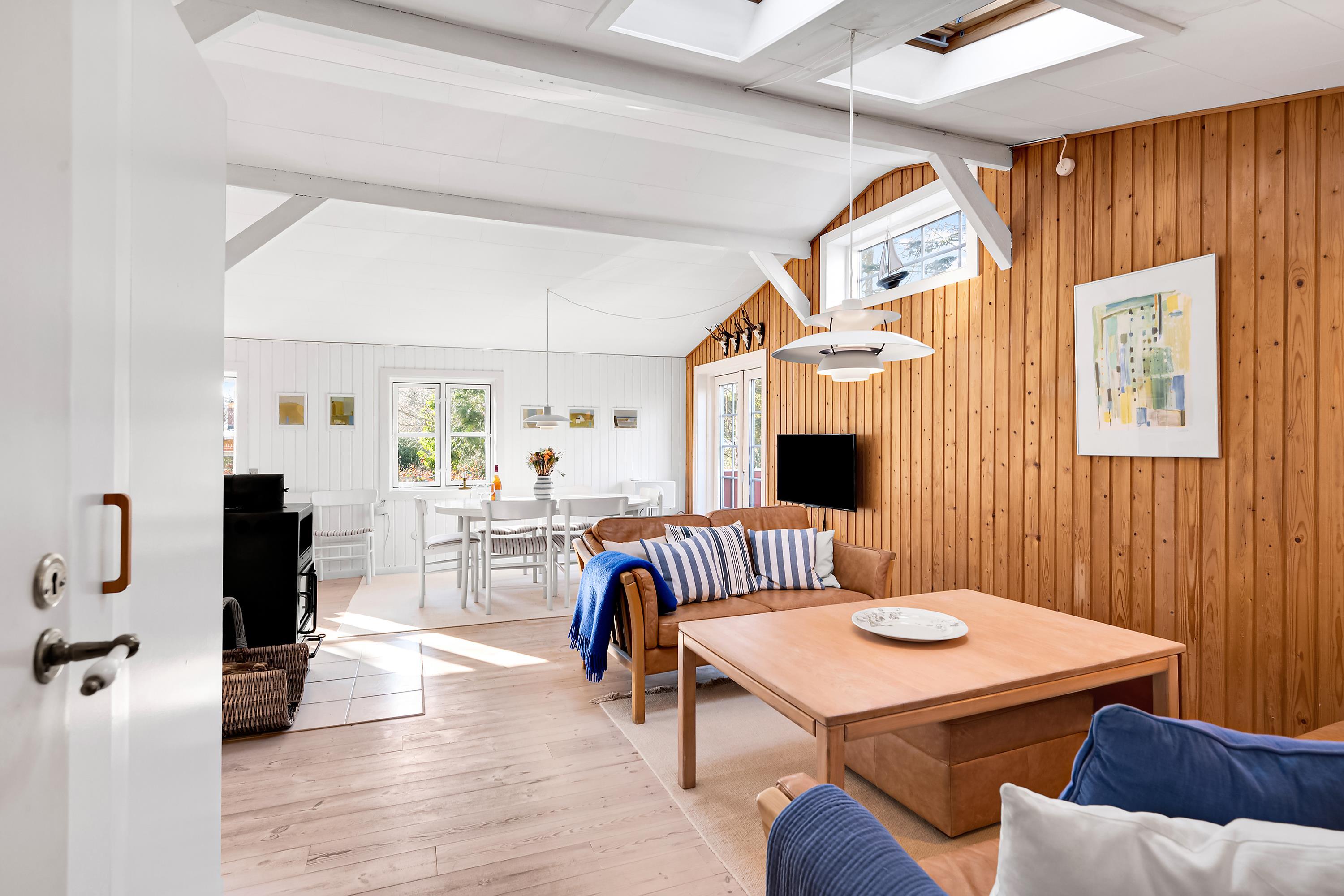 Das helle, geräumige und zum Dachfirst hin offene Wohnzimmer mit Oberlichtern liegt in offener Verbindung zur Küche und ist mit Kaminofen, Essplatz für 6 Personen, TV mit dänischen Programmen, DVD- und CD-Spieler sowie Radio ausgestattet. Neuere, gut ausgestattete Küche mit Glaskeramikherd mit Backofen, Kühl-/Gefrierkombination und Geschirrspüler. Die sechs Schlafplätze verteilen sich auf zwei gute Schlafzimmer mit Doppelbett, ein Zimmer mit französischem Bett und ein Zimmer mit Einzelbett. Darüber hinaus gibt es einen Hängeboden mit zwei Federkernmatratzen. Schönes und helles Badezimmer mit Dusche und Fußbodenheizung. Ein gepflegtes und geschmackvoll eingerichtetes Haus mit gemütlicher Atmosphäre. Internetzugang.