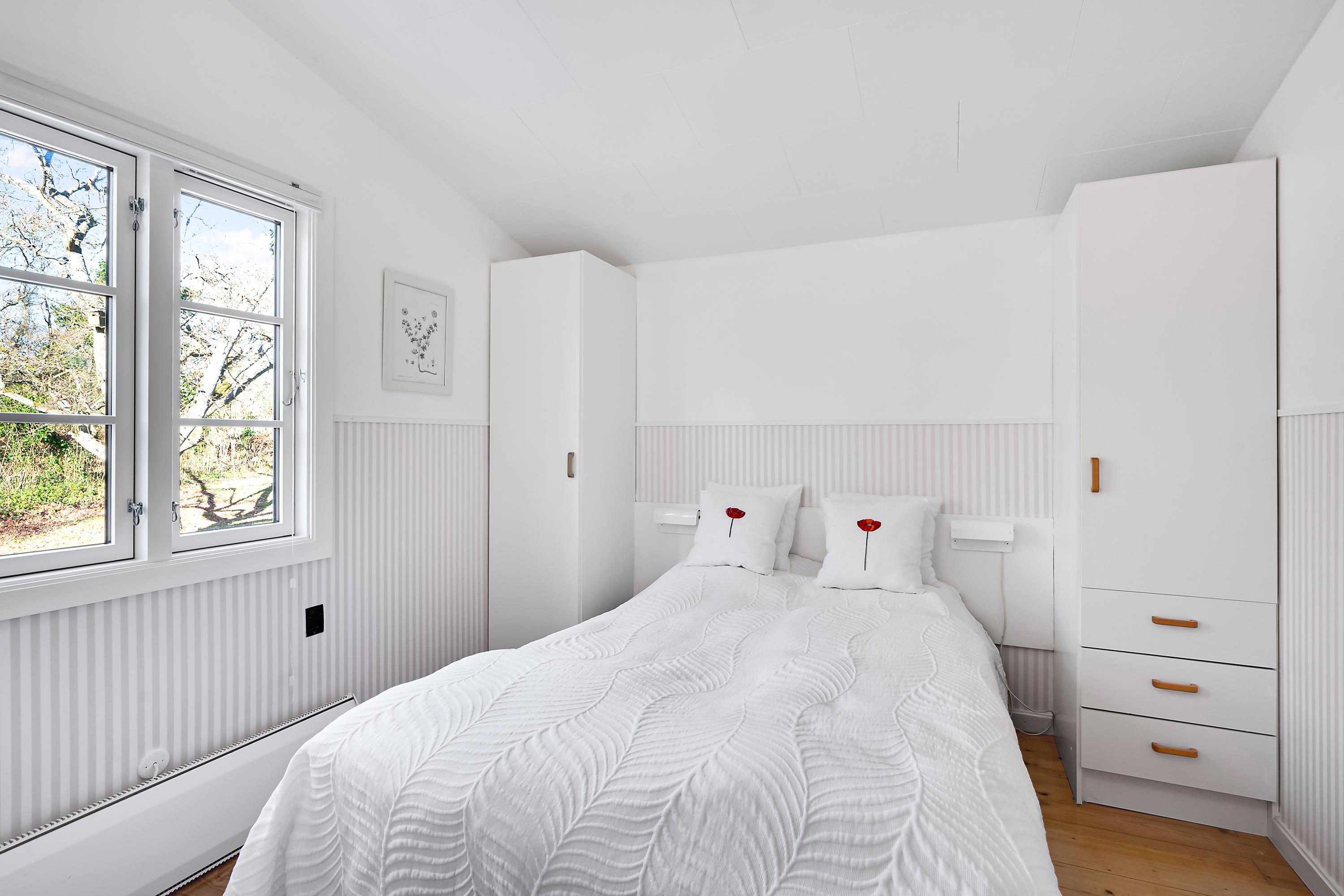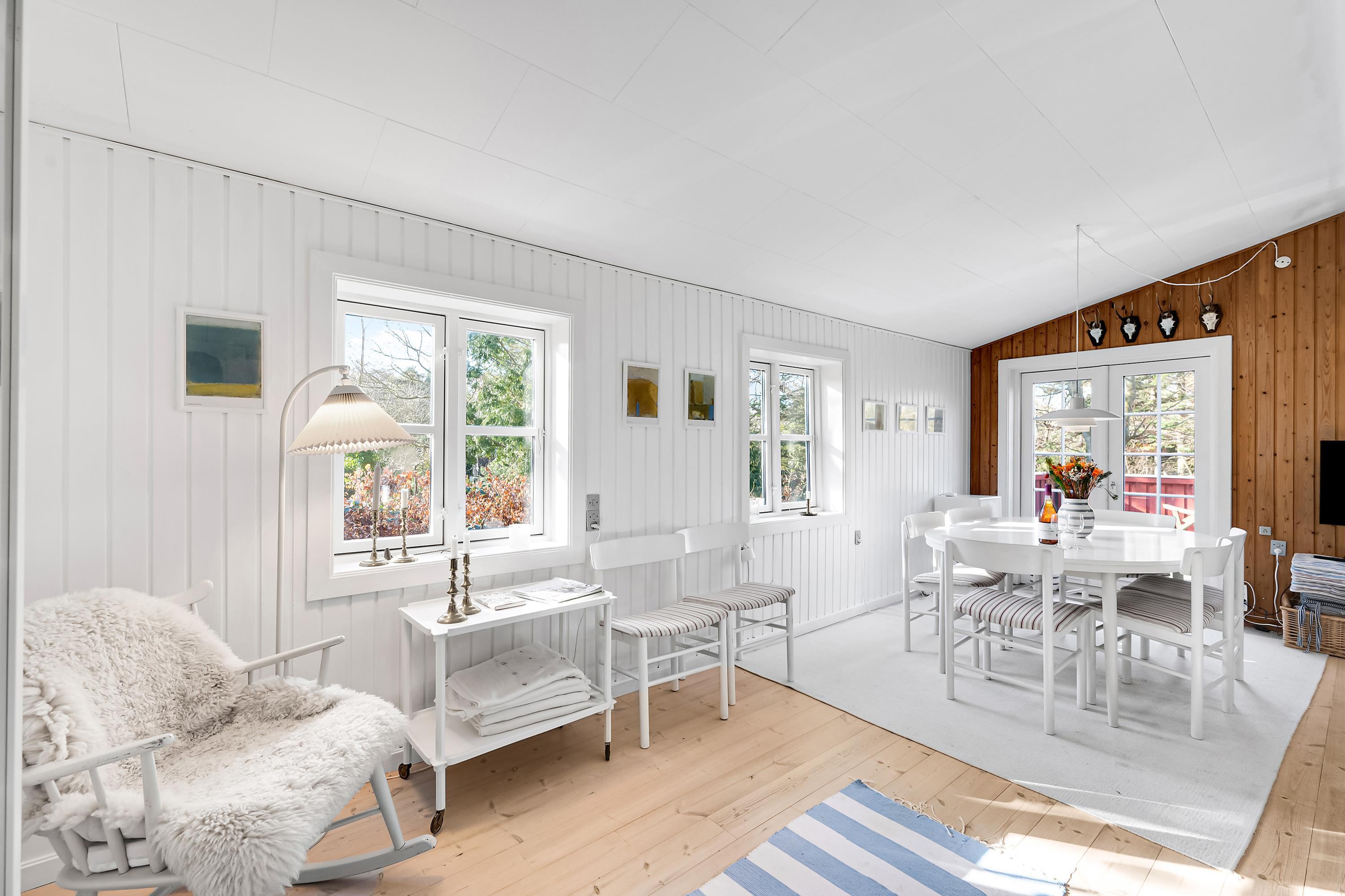 Gemütliches, älteres Ferienhaus in traditionellem Stil auf einem großen, mit Bäumen bewachsenen Grundstück, nur 500 m von einem kinderfreundlichen Sandstrand entfernt. Das Haus wurde laufend modernisiert und präsentiert sich hell und behaglich mit einem Hauch von Romantik und Nostalgie. Abgeschirmte Terrasse mit Grill, Kamin, Gartenmöbeln, Liegestühlen und Sonnenschirm.