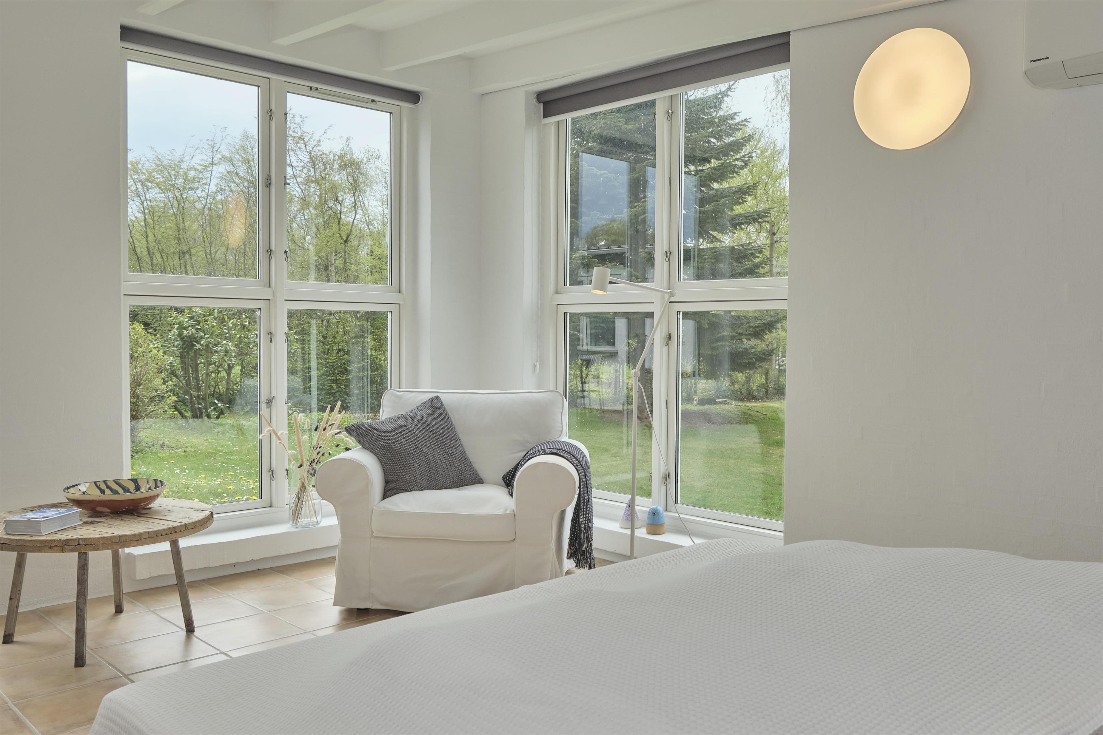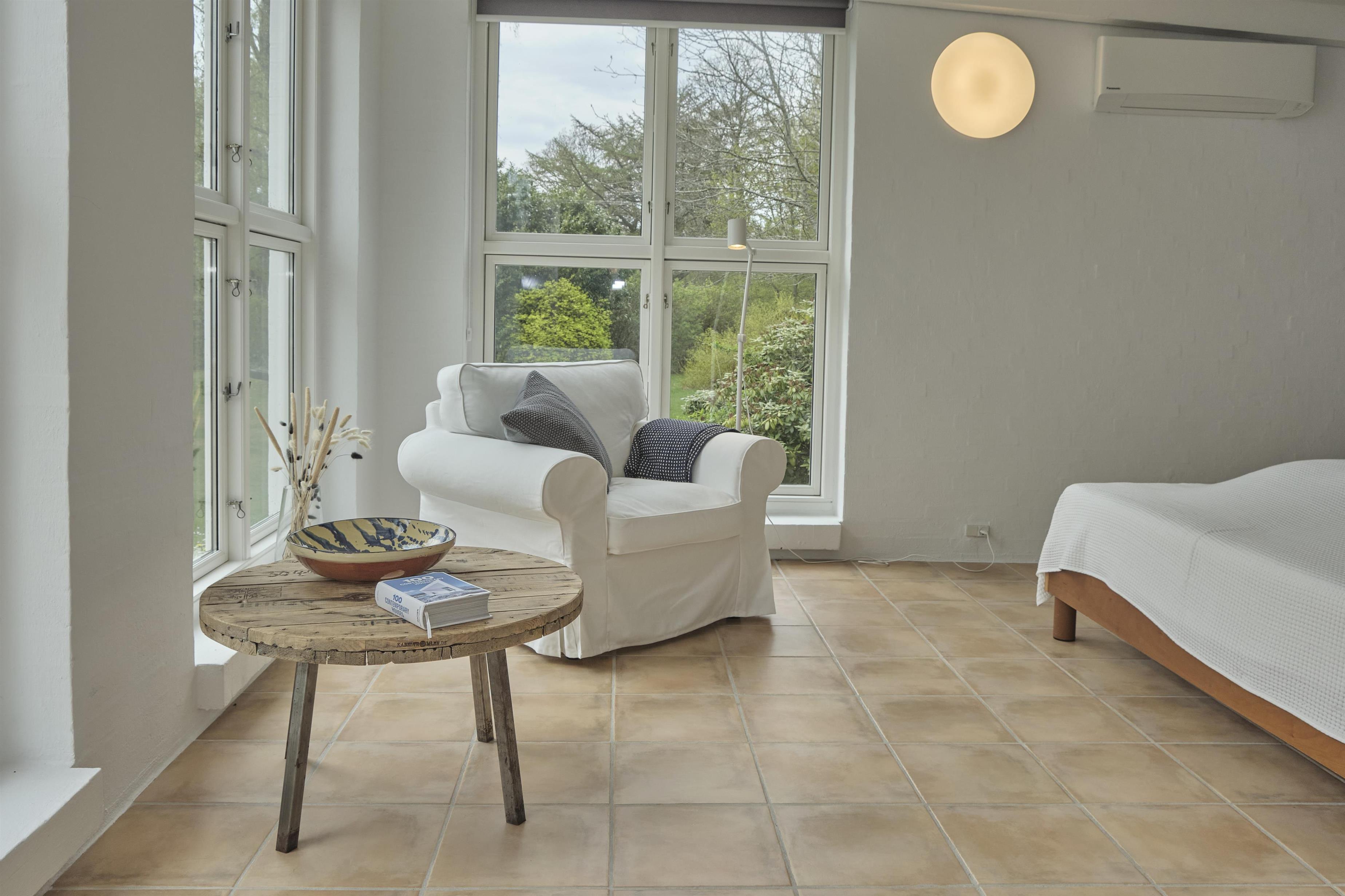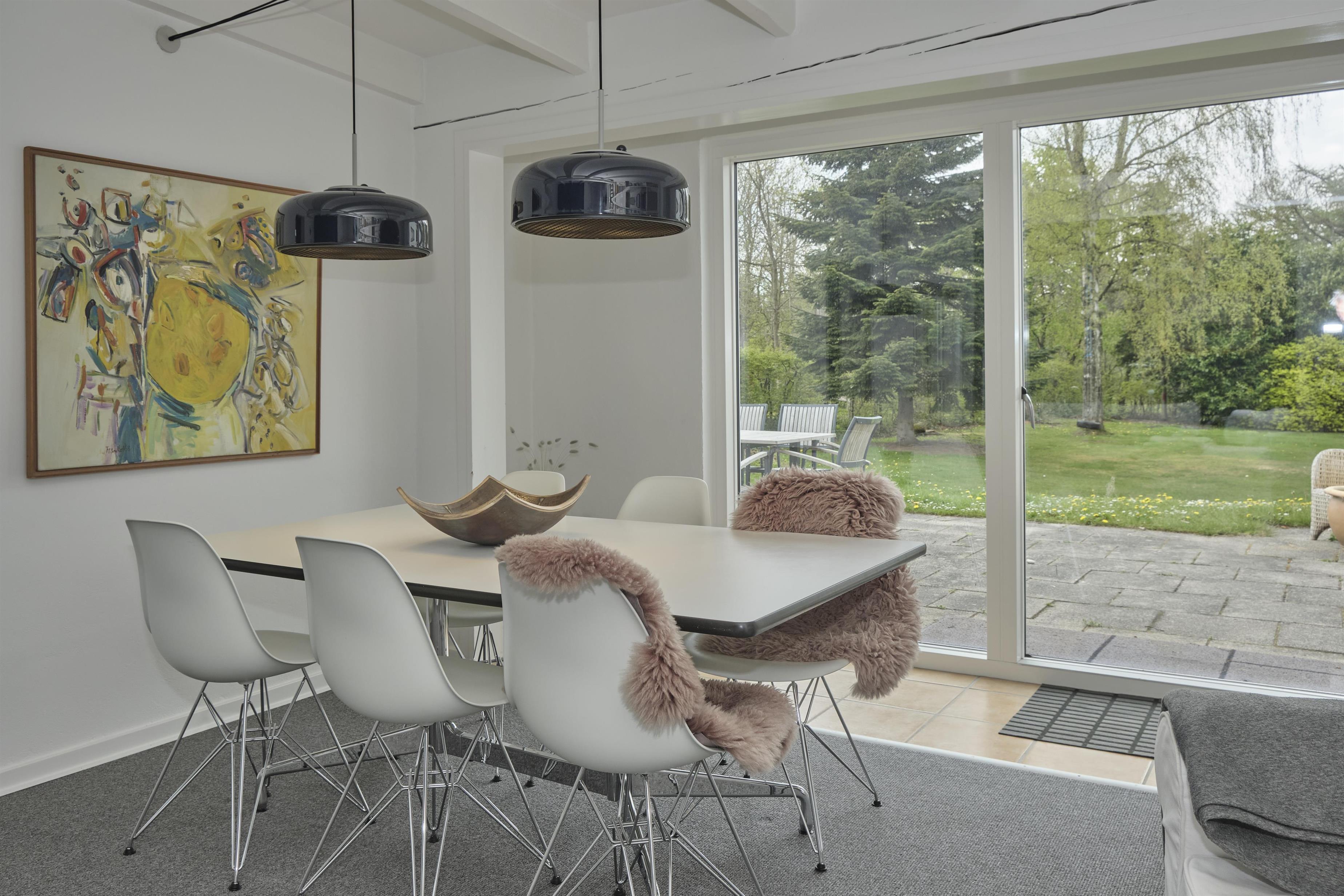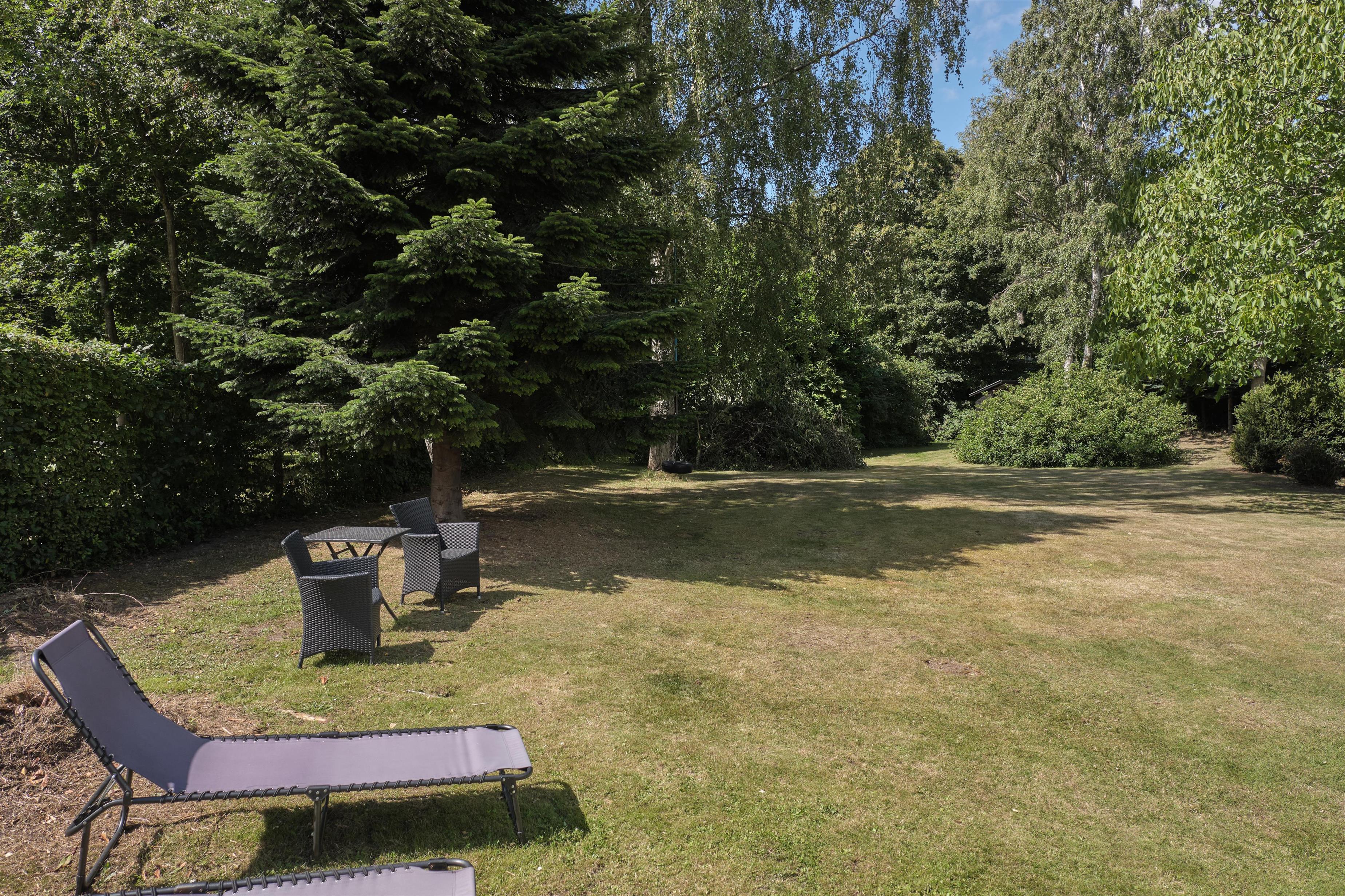 Älteres, aber gepflegtes und äußerst charmantes Ferienhaus auf einem großen, gepflegten Naturgrundstück, nur 250 m von einem kinderfreundlichen Sandstrand entfernt. Das Haus wurde laufend modernisiert und präsentiert sich hell und behaglich mit einem Hauch von Modernismus und Nostalgie. Schöne, abgeschirmte, nach Westen gewandte Fliesenterrasse mit Grill, Kamin, Gartenmöbeln, Liegestühlen und Sonnenschirm. Auf der kleineren Ostterrasse kann man die Morgensonne genießen.