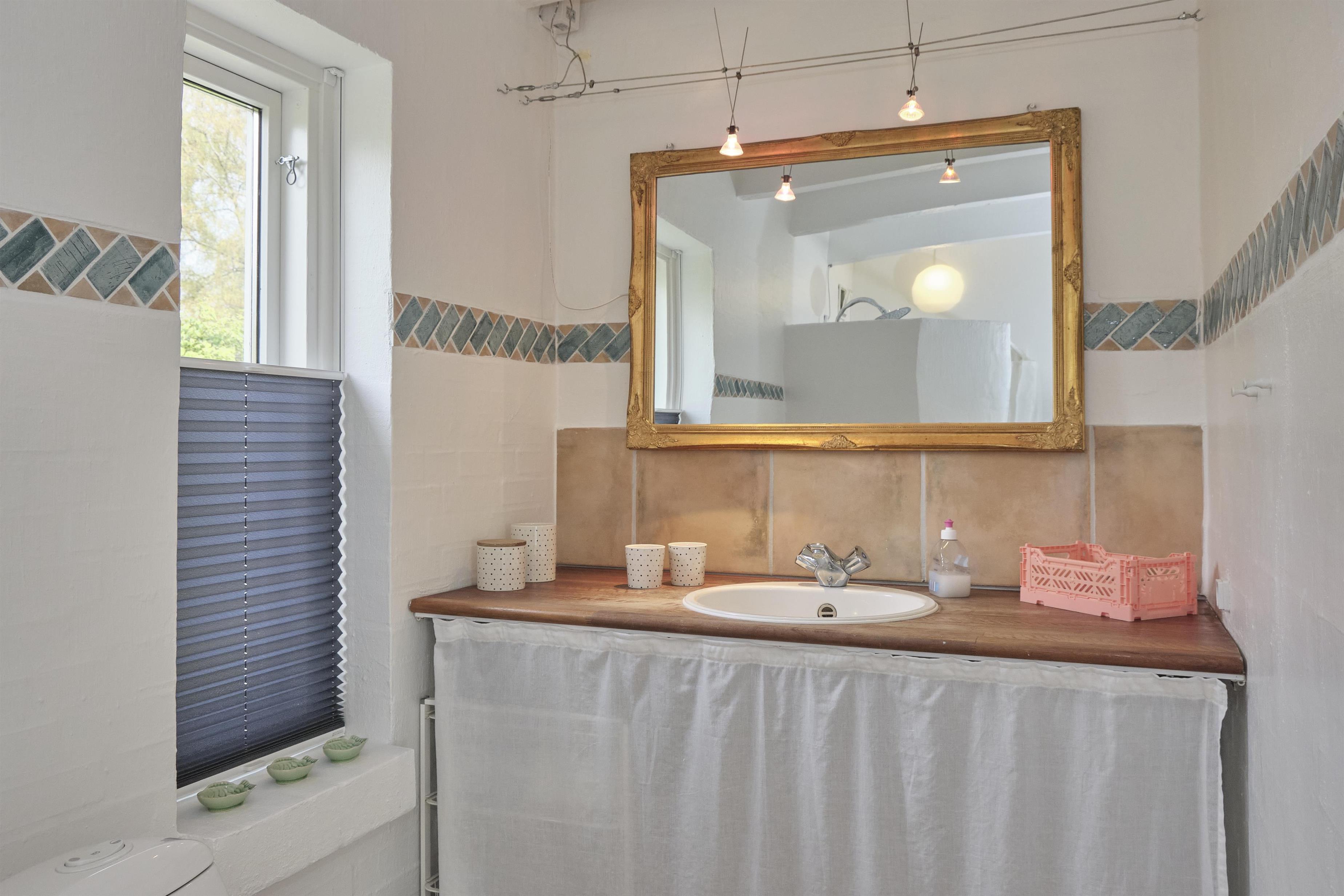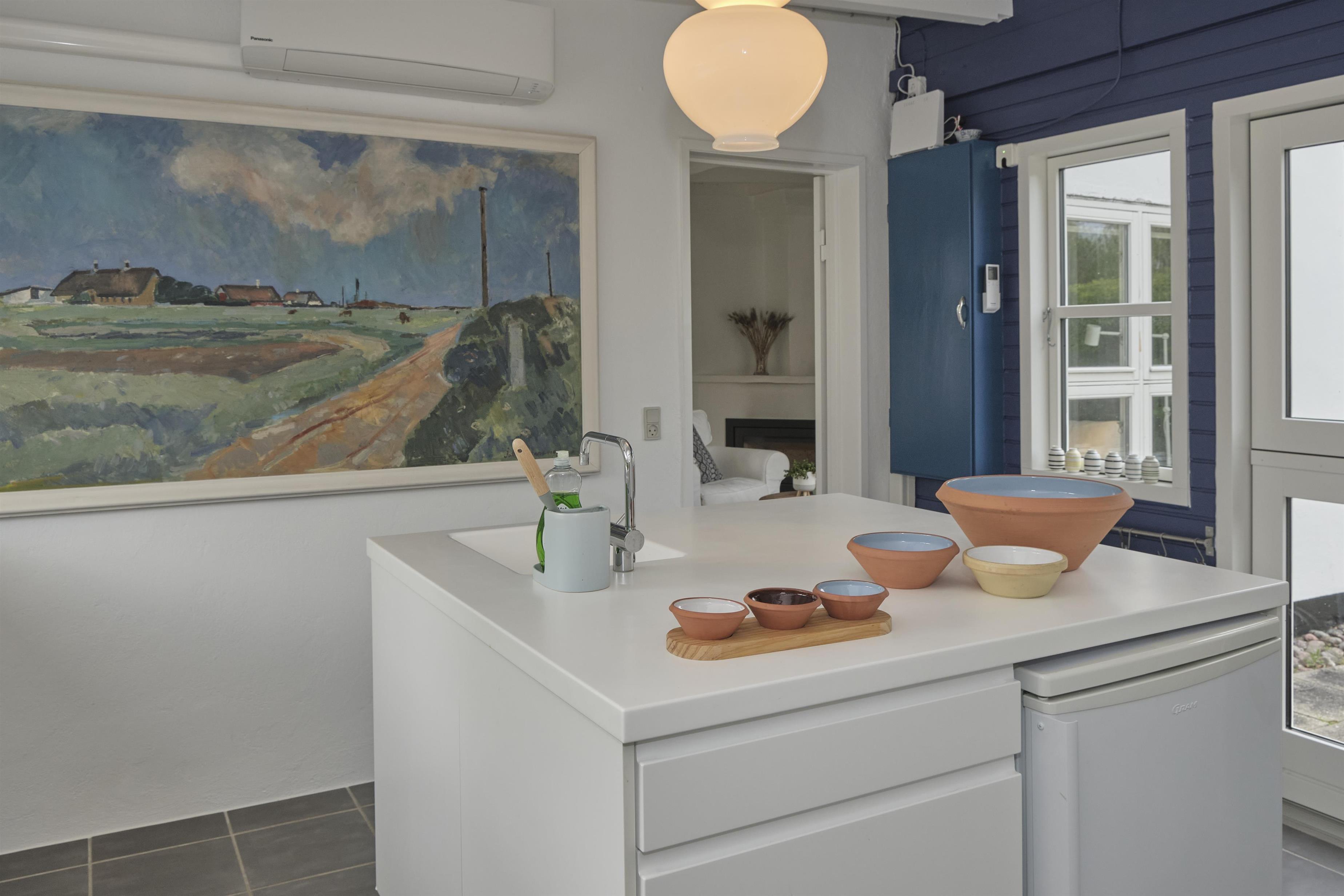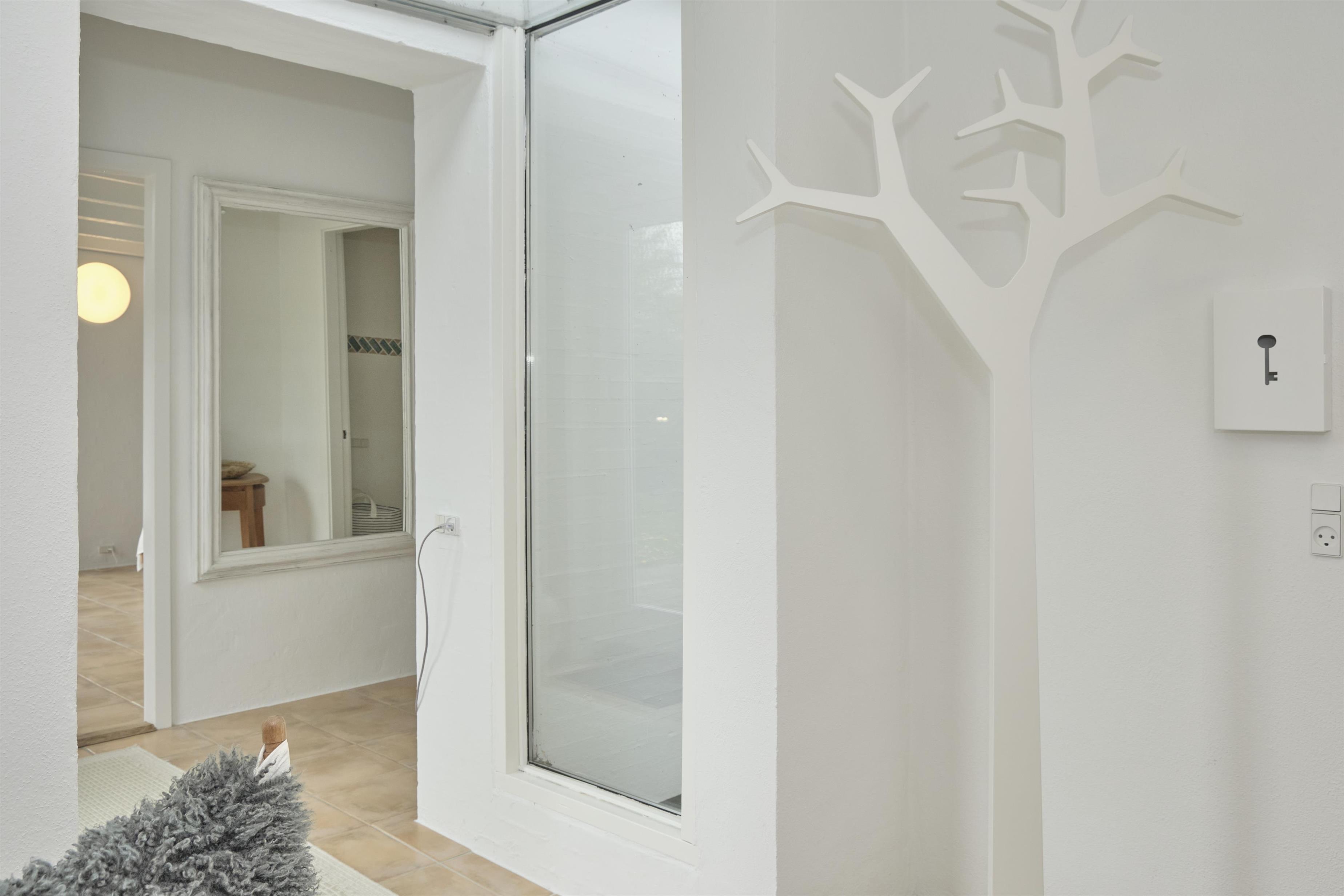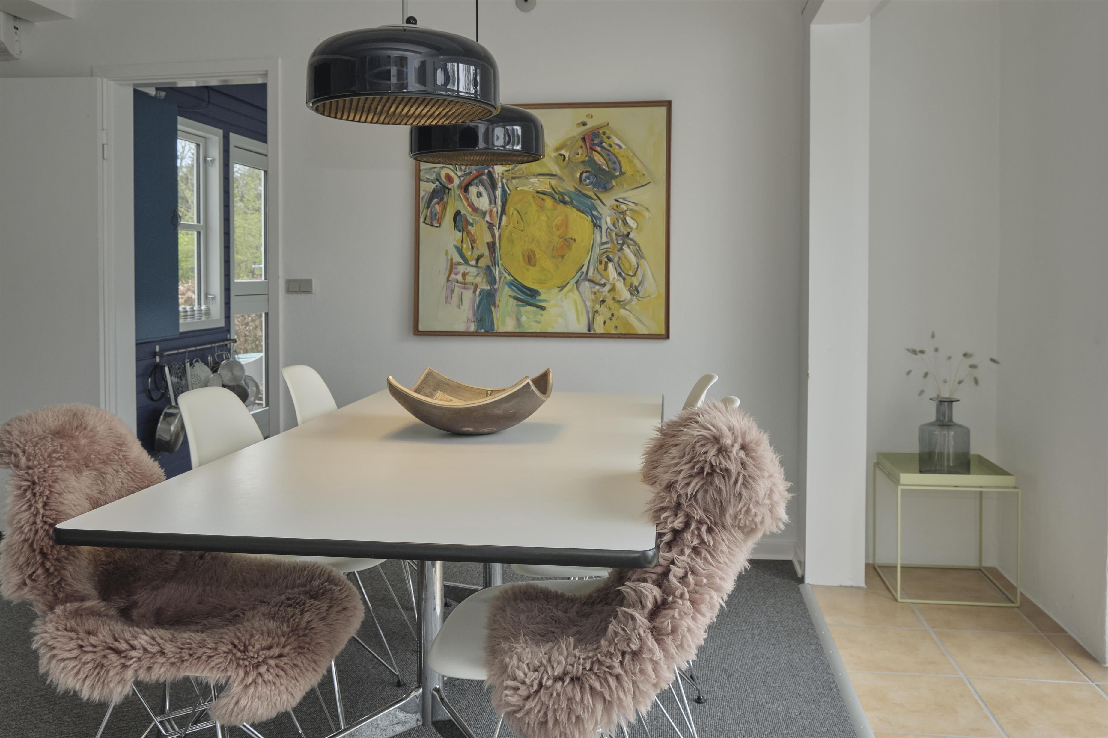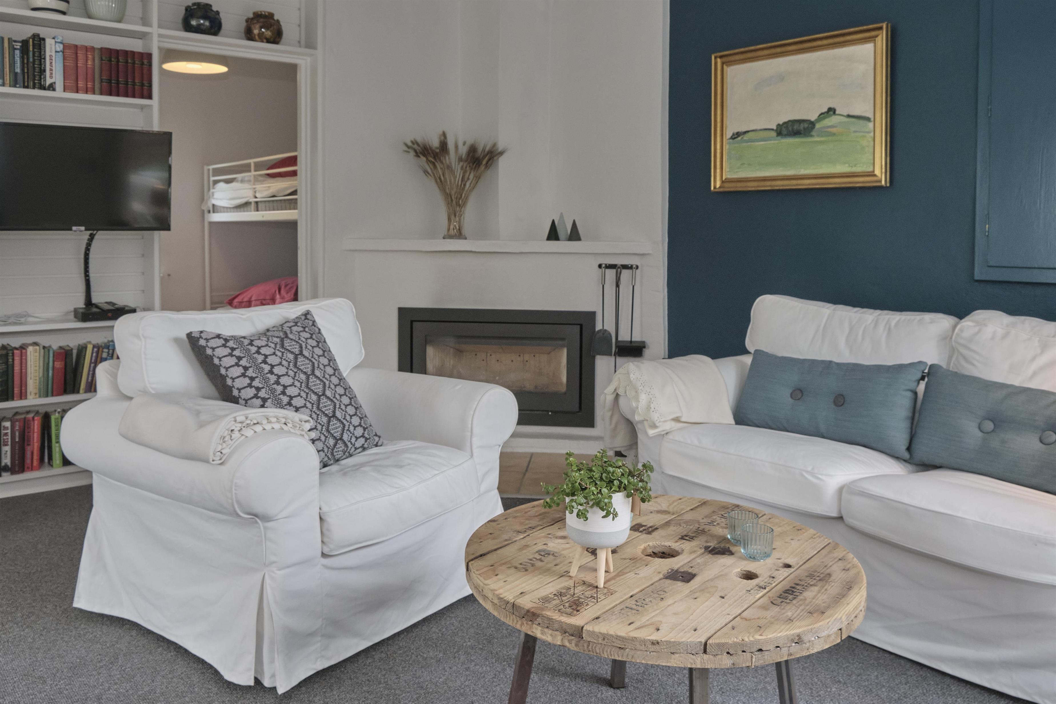 Das geräumige, helle und gut möblierte Wohnzimmer hat einen gemauerten Eckkamin, einen Essbereich für sechs Personen sowie TV mit dänischen (inkl. TV2) und deutschen Programmen. Die schöne, rustikale Holzbalkendecke findet sich im gesamten Haus wieder. Vom Wohnzimmer erreicht man die schicke, helle Küche mit Glaskeramik-Kochfeld, Backofen, Kühl-/Gefrierkombination und Geschirrspüler. Die sechs Schlafplätze verteilen sich auf drei schöne Schlafzimmer – ein großes mit Doppelbett, eines mit zwei Einzelbetten und eines mit Etagenbett. Helles, geräumiges Badezimmer mit Dusche sowie neueres gefliestes Badezimmer mit Dusche und Waschmaschine. Ein gepflegtes und geschmackvoll eingerichtetes Haus mit gemütlicher Atmosphäre. Internetzugang.