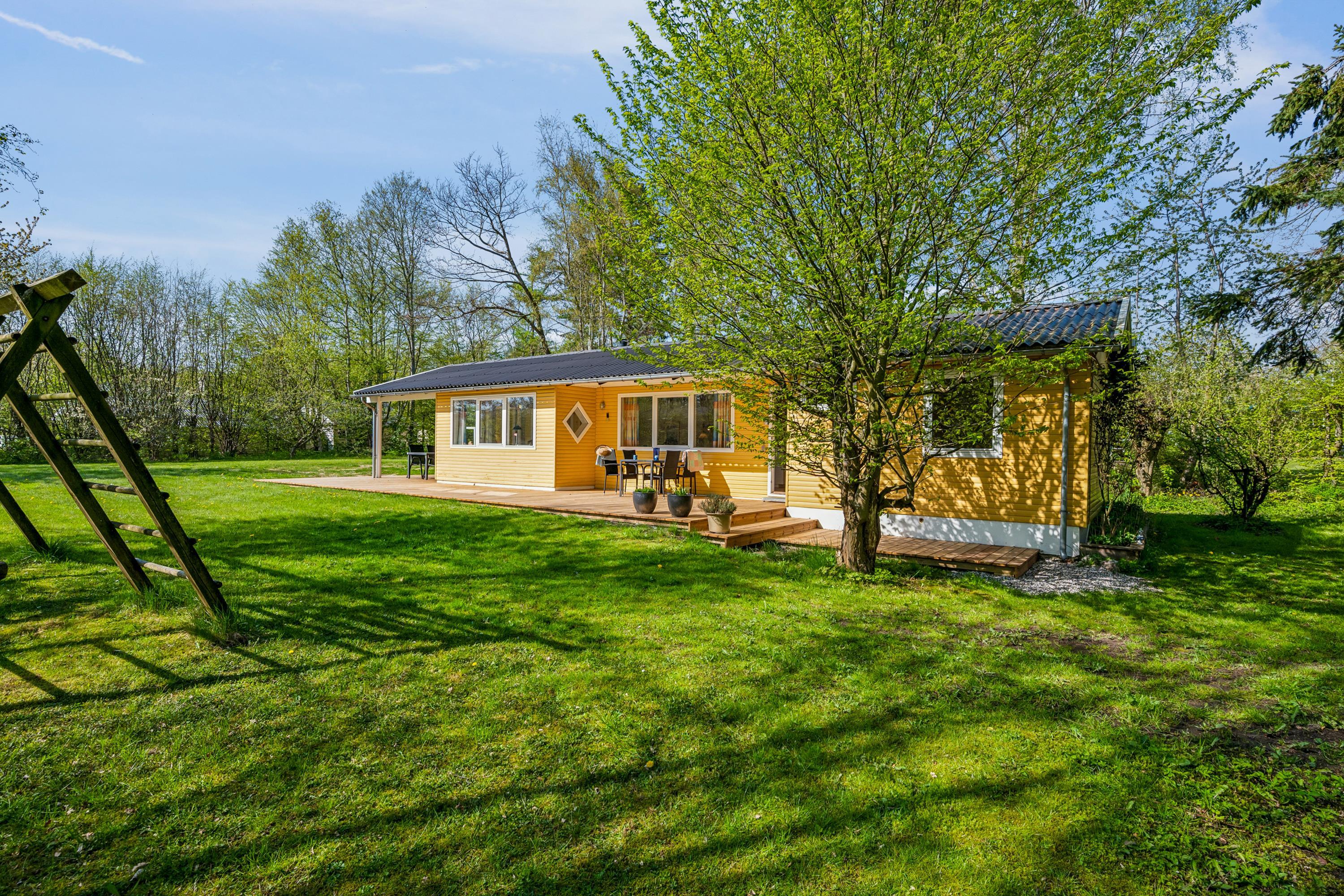 Gemütliches Ferienhaus nahe Ebeltoft mit Strand, Terrasse und Spielplatz für einen entspannten Familienurlaub.