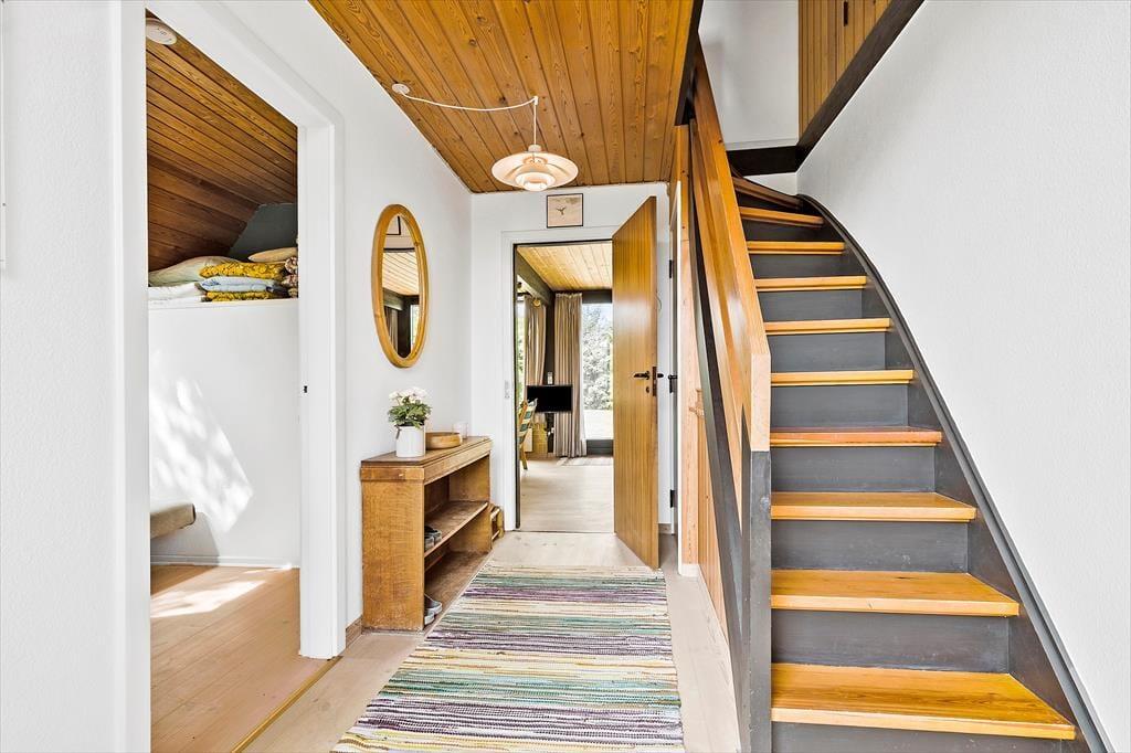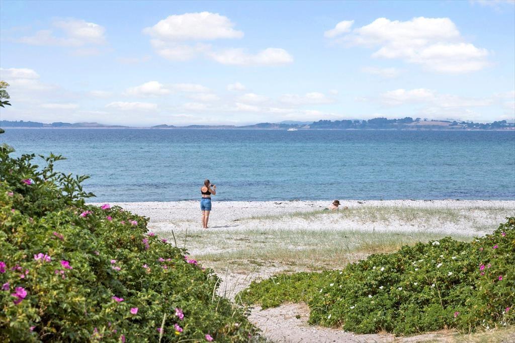 Den prachtvollen Sonnenuntergängen am Ahl Strand - mit Mols Bjerge im Hintergrund - wird nachgesagt, dass sie die Schönsten in ganz Ostjütland sind. Der Strand ist kinderfreundlich und zugleich ein wahres Kitesurf-Paradies. Der Strand wird von einem Laubwald gesäumt, der guten Windschutz spendet. Zu jeder Zeit wirst du mit deiner Familie ein abgeschiedenes Plätzchen für einen langen Strandtag finden. Vier und fünf Sternen auf Google Review, zeugen von der guten Qualität des Strandes. Rund zehn Minuten Fahrzeit per Pkw trennen dein Ferienhaus von der bezaubernden alten Stadt Ebeltoft, in der ihr durch malerische Kopfsteinpflastergassen schlendern, durch kleine Geschäfte bummeln, euch in einem der gemütlichen Cafés niederlassen und eines der guten Restaurants im Hafen besuchen könnt. Zu den Sehenswürdigkeiten der Stadt zählen unter anderem das Glasmuseum und das berühmte alte Rathaus, Det Gamle Rådhus. Für einen aufregenden Urlaubstag, der Groß und Klein ein breites Lachen auf das Gesicht zaubert, bietet sich ein Ausflug in den größten Vergnügungspark des Nordens, das Djurs Sommerland, an. Falls ihr lieber in der Natur aktiv seid, erwartet euch im nahegelegen Waldgebiet Sdr. Plantage unter anderem ein 13 Kilometer langer MTB-Track.