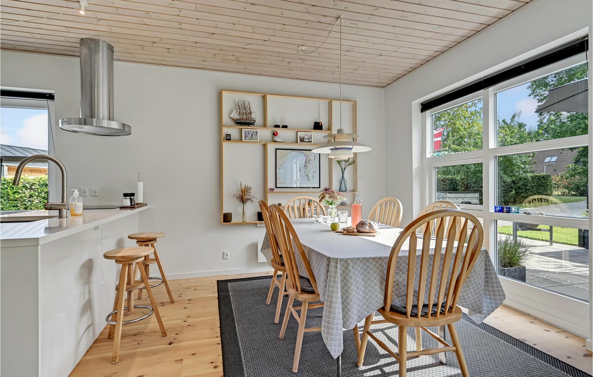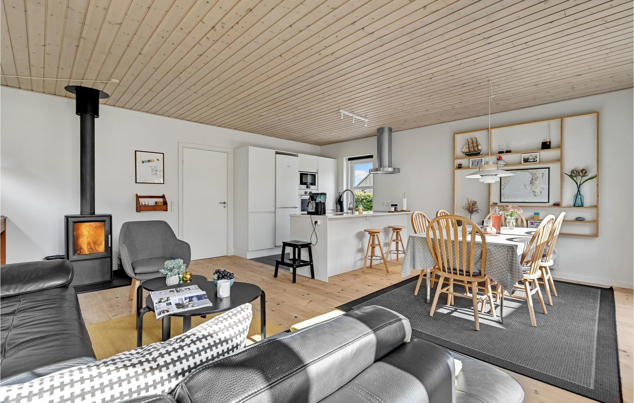 Interessantes, modernes Ferienhaus in sehr attraktiver Lage. Im Gehabstand liegen Wald und Strand. Ein System von Fußwegen bringt Sie auch schnell nach Ebeltoft. Der Strand ist schön und sandig. Sie können hier auch gut Kitesurfen. Auf dem Grundstück gibt es mehrere Terrassen und einen Rasen. Im Garten stehen auch Schaukeln zur Verfügung. Im Haus ist ein beliebter Schlafboden zum Spielen und die Aussicht genießen, es sind drei Schlafzimmer und ein gepflegtes Badezimmer vorhanden, hinzu kommt noch eine gut ausgestattete Küche.