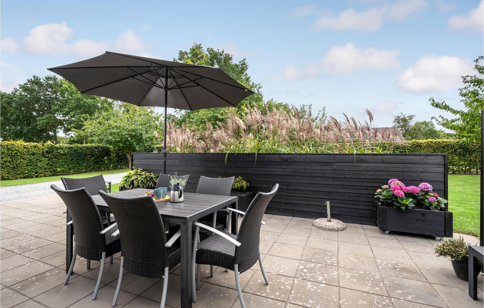 Modernes Ferienhaus nahe Wald und Strand mit Terrassen, Spielboden und Kitesurf-Gelegenheit in Ebeltoft, Dänemark.