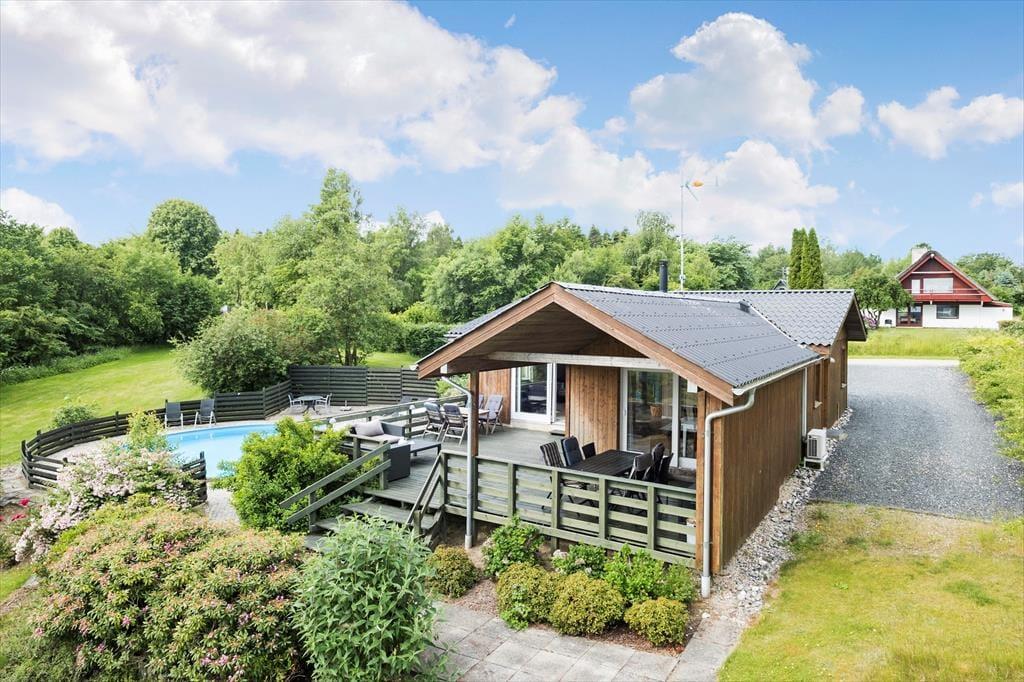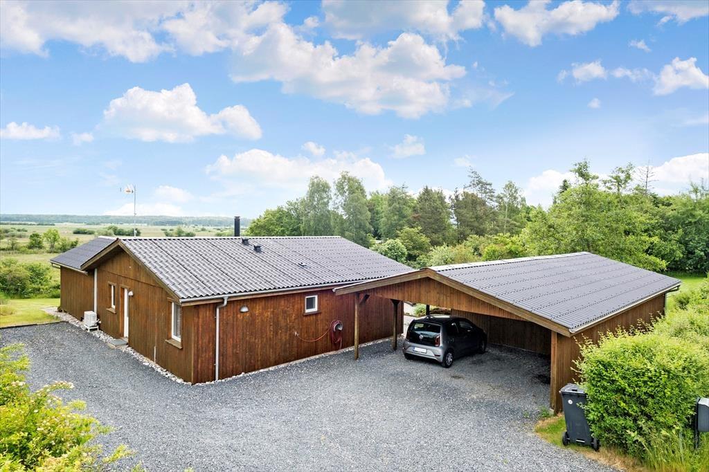 Dieses schöne Ferienhaus liegt an erhöhter Stelle in der Landschaft im kleinen Stichweg Fjordglimt, zu deutsch "Fjordschimmer". Diesen Namen trägt der Weg bestimmt nicht aus Zufall, denn während Sie es sich im Wohnzimmer vor dem Kaminofen gemütlich machen oder sich auf der Terrasse nahe dem Außenpool sonnen, können Sie über den Mariager Fjord blicken – und dieser Ausblick ist wirklich nicht ganz alltäglich.