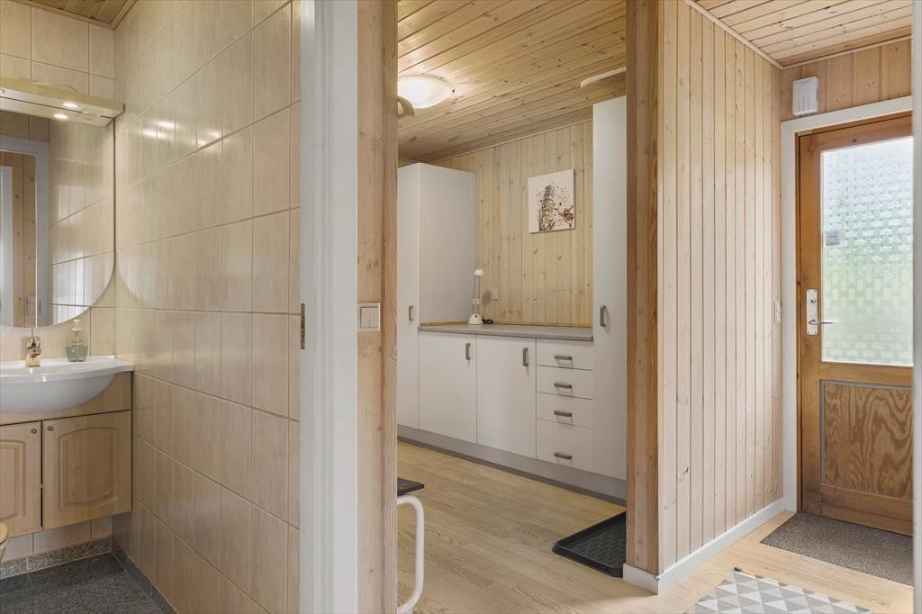 Der schönen Sie umgebenden Natur werden Sie dank der großen, nach Osten gewandten Fensterpartien auch vom Wohnbereich aus gewahr. Selbst wenn Sie den Tag drinnen verbringen, profitieren Sie davon, so dicht an der schönen Fjordlandschaft zu wohnen, denn ein schöneres Hintergrundbild für Brettspiele, zum Lesen und für andere Ferienaktivitäten ist schwer zu finden. Im Aufenthaltsraum liegen Wohnzimmer und Küche in offener Verbindung zueinander, sodass Sie auch dann die Aussicht genießen können, wenn Sie im Topf rühren und Salat schneiden. Wird es draußen frisch, werden Sie sich über den Kaminofen freuen, der mit seiner Marmoroberfläche nicht nur schön, sondern auch besonders effizient ist. Darüber hinaus gibt es auch eine Wärmepumpe, eine Elektro- und eine Fußbodenheizung. Neben dem Aufenthaltsraum gibt es im Haus auch ein Gäste-WC und ein komplettes Badezimmer mit Waschmaschine und Wäschetrockner. Das eine der beiden Schlafzimmer des Hauses ist mit einem 140 cm breiten Doppelbett, das andere mit zwei 90 cm breiten Einzelbetten eingerichtet, wobei letztere zu einem Doppelbett zusammengeschoben werden können. Darüber hinaus steht im Wohnzimmer ein doppeltes Schlafsofa, sodass bis zu sechs Personen in diesem Haus Urlaub machen können.