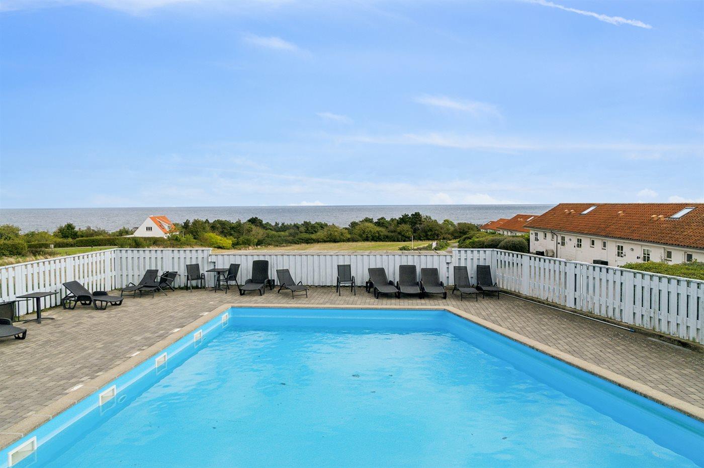 Moderne Ferienwohnung mit Meerblick, zwei Terrassen und beheiztem Gemeinschaftspool nahe Allinge.