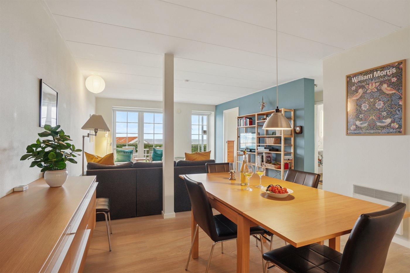 Diese Ferienwohnung in der Nähe vom großen Gemeinschaftspool, der im Zeitraum vom 15.06. bis zum 15.09. beheizt ist. In der Hauptgebäude von Boesvang sind die Wohnungen größer und geräumiger, sodass du hier ganze 66 m² Wohnfläche zur Verfügung hast. Die Wohnung wurde 2023 modernisiert und mit Möbeln von guter Qualität ausgestattet.