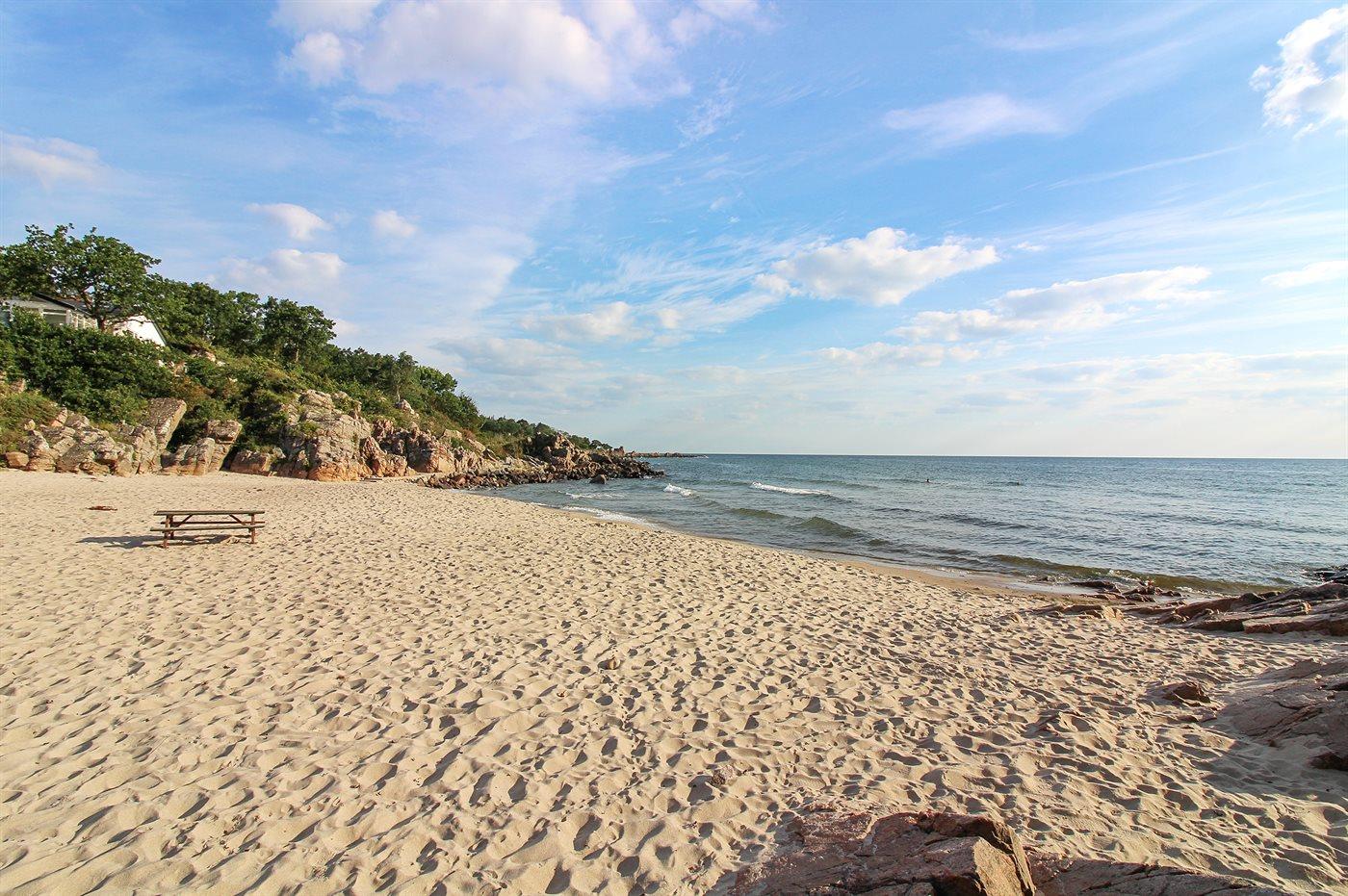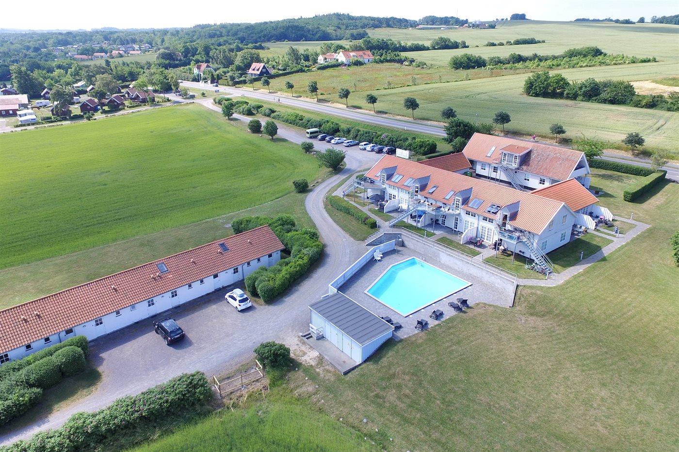 Nur 500 m von der Küste entfernt inmitten einer malerischen Landschaft liegt diese Ferienunterkunft mit ungestörtem Panorama-Meerblick. Sowohl von der Terrasse als auch vom Wohnzimmer dieser kleinen, hübsch renovierten Ferienunterkunft von 28 m² können Sie in der Ferne Gudhjem und Christians Ø erkennen. Hier können Sie Ihren Morgenkaffee und wunderschöne Sonnenaufgänge genießen, während die Segelboote auf der Ostsee vorbeigleiten. Die Ferienunterkunft wurde 1972 erbaut, 2020 renoviert und eignet sich für 2 Personen. Die Unterkunft ist gut konzipiert und verfügt über ein Wohnzimmer mit 4 Sitzplätzen am Esstisch, 2 gemütlichen Sesseln und viel Stauraum. Die funktionale Küche ist mit 4 elektrischen Kochplatten, einem Umluftbackofen, einem Kühlschrank mit Gefrierfach von 10 l und reichlich Tellern, Gläsern, Besteck etc. ausgestattet. Das Badezimmer verfügt über eine hübsche, moderne Duschnische, eine Toilette, Fußbodenheizung, Handtuchwärmer und viel Platz für Toilettenartikel im Waschbeckenunterschrank. Zur Ferienunterkunft gehört eine hübsche offene Südostterrasse von 10 m² mit einer Kaffeetischgarnitur. Parkmöglichkeiten befinden sich in unmittelbarer Nähe zur Eingangstür. Von der Ferienunterkunft sind es 300 m bis zum nächsten Kiosk, 1,6 km bis zu Netto und Super Brugsen, 1,5 km zur traditionellen Bornholmer Räucherei und 10 km bis zum Golfplatz. Es steht ein 32-Zoll-Fernseher mit mindestens 4 dänischen Sendern zur Verfügung. Radio. CD-Player. Das hauseigene WLAN kann kostenlos genutzt werden. Den Gästen der Unterkunft steht im Zeitraum vom 15. Juni bis zu 15. September kostenlos ein gemeinschaftlich nutzbarer, beheizter Pool zur Verfügung.