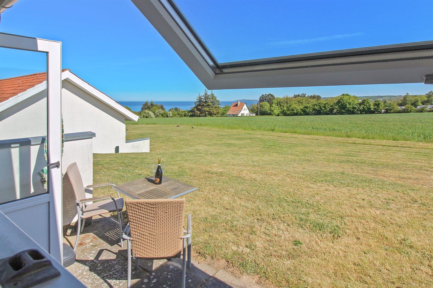 Gemütliche Ferienunterkunft mit herrlichem Meerblick und Terrasse, nur 500 m von der Küste in Allinge, Dänemark.