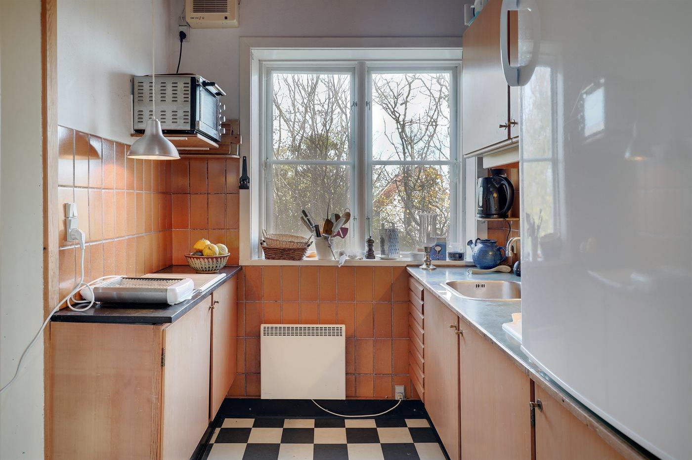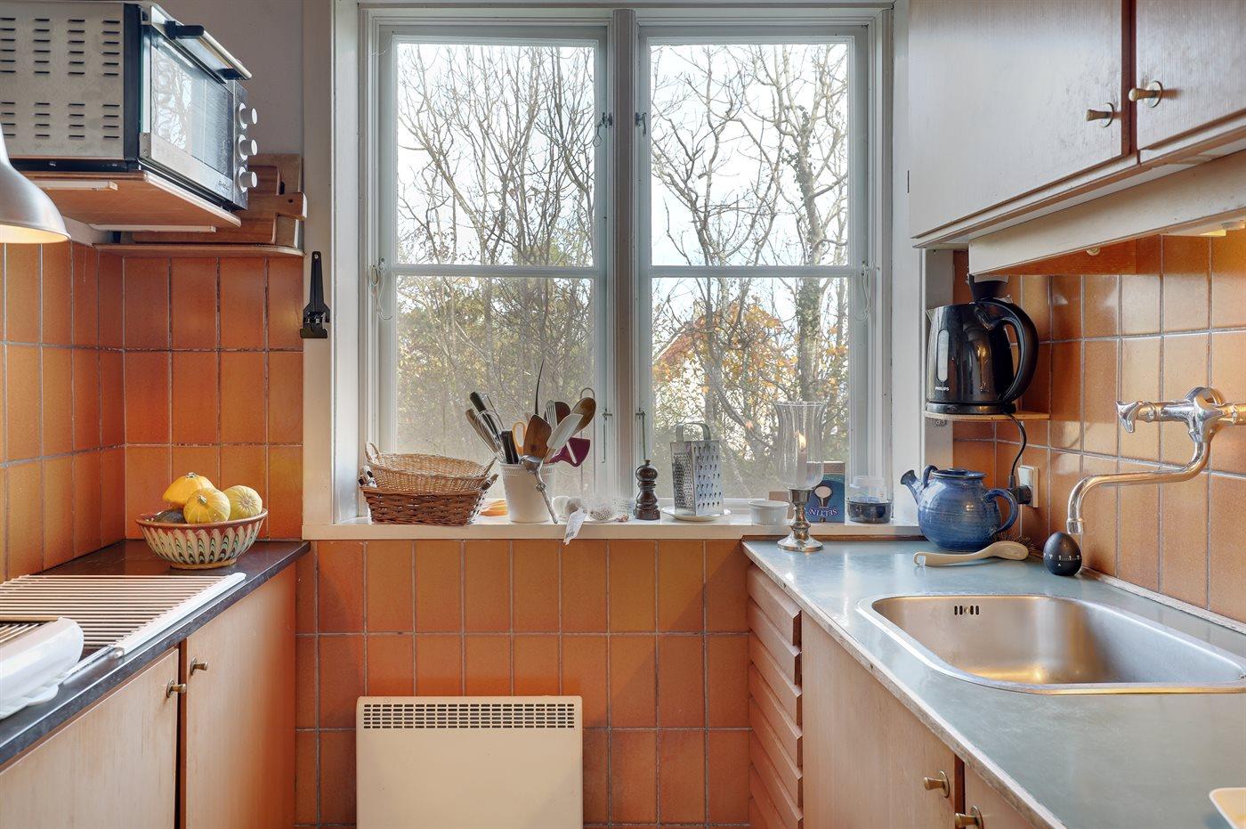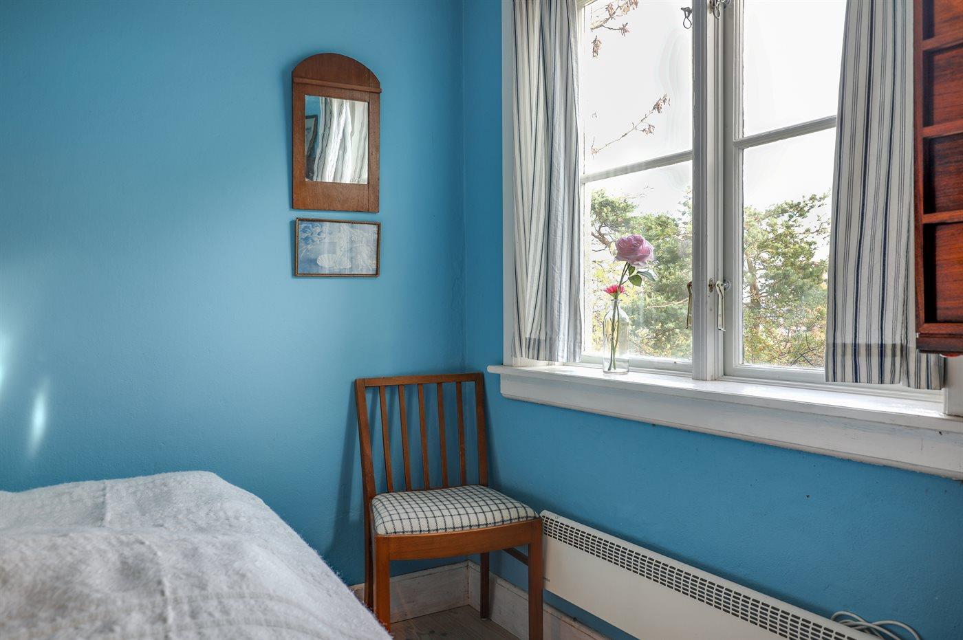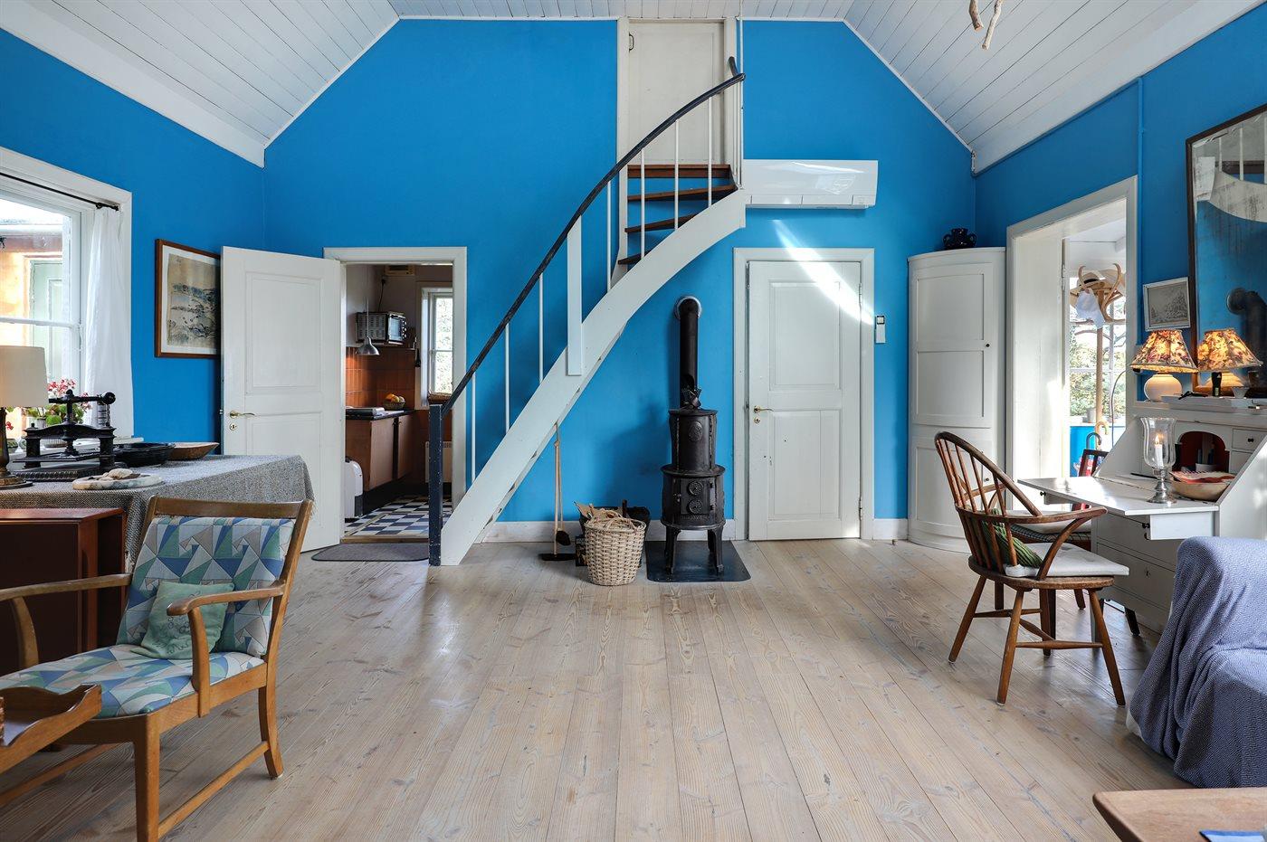 Erhöht gelegenes, älteres Ferienhaus auf einem fantastischen Naturgrundstück mit Felsvorsprung und natürlichen windgeschützten Ecken. Zum Haus gehört zudem eine erhöhte Holzterrasse, die in den Felsvorsprung eingearbeitet wurde. Ursprünglich wurde das Haus für einen Kunstmaler erbaut, dem der Allinges Geschäfte und Restaurants sind leicht zu erreichen. wunderschöne, kräftige Lichteinfall im großen Wohnzimmer zu verdanken ist. Badestrand, Räucherei sowie